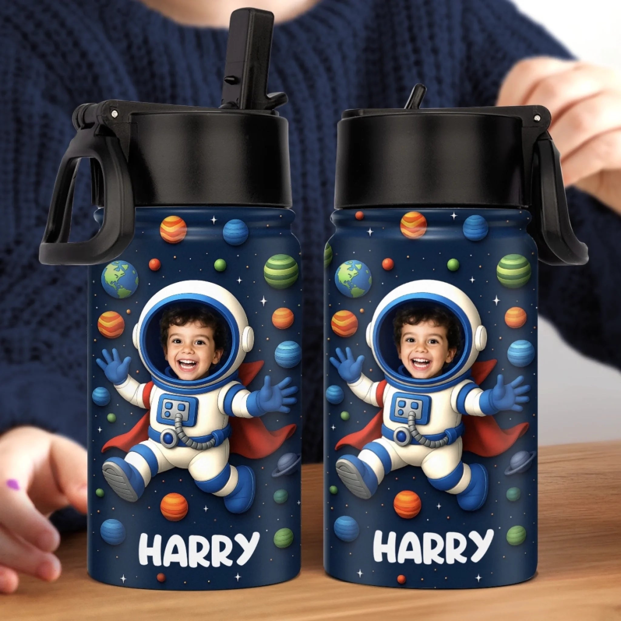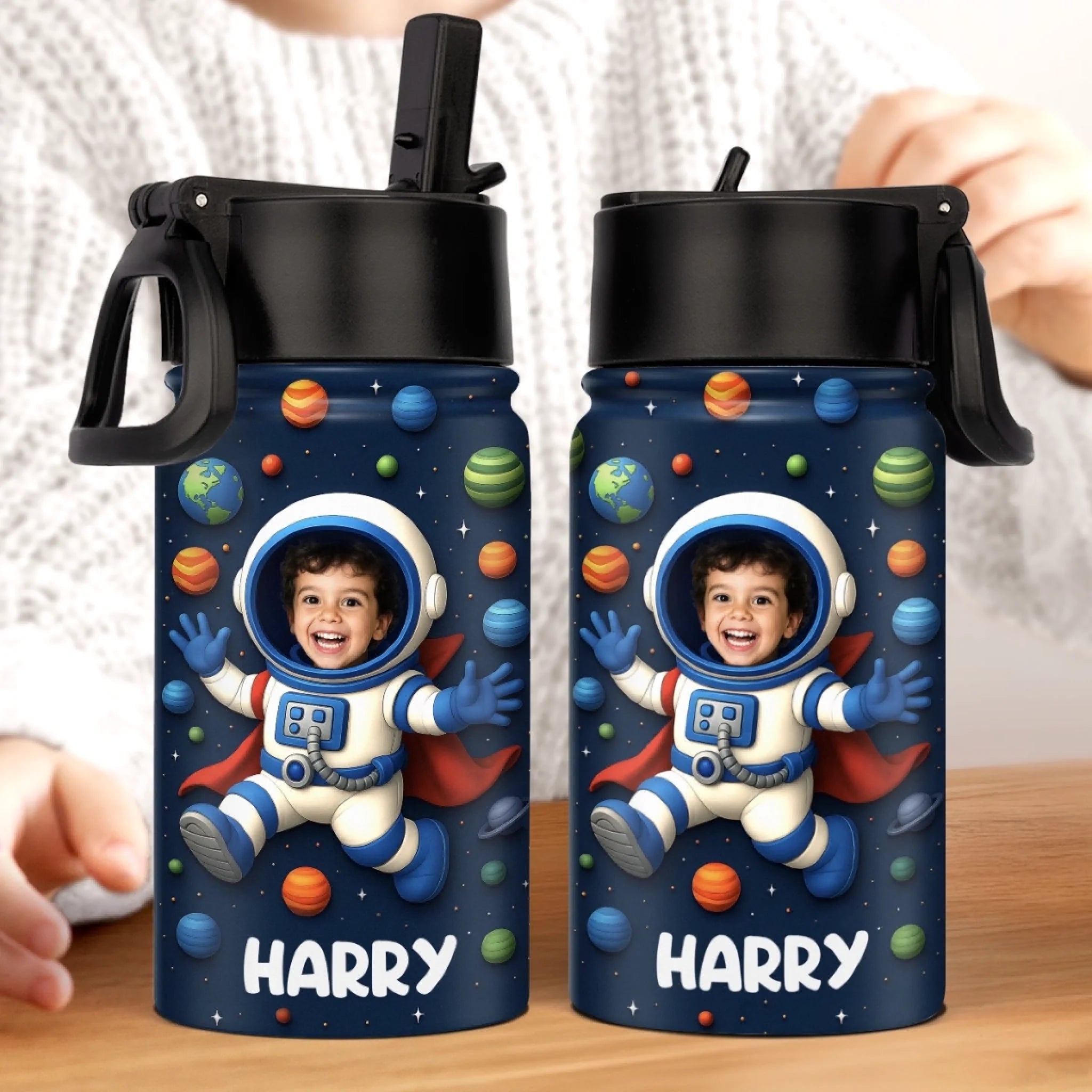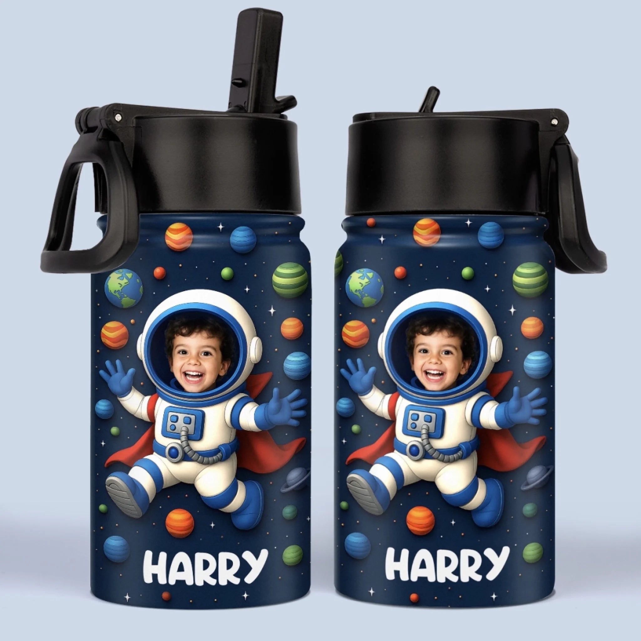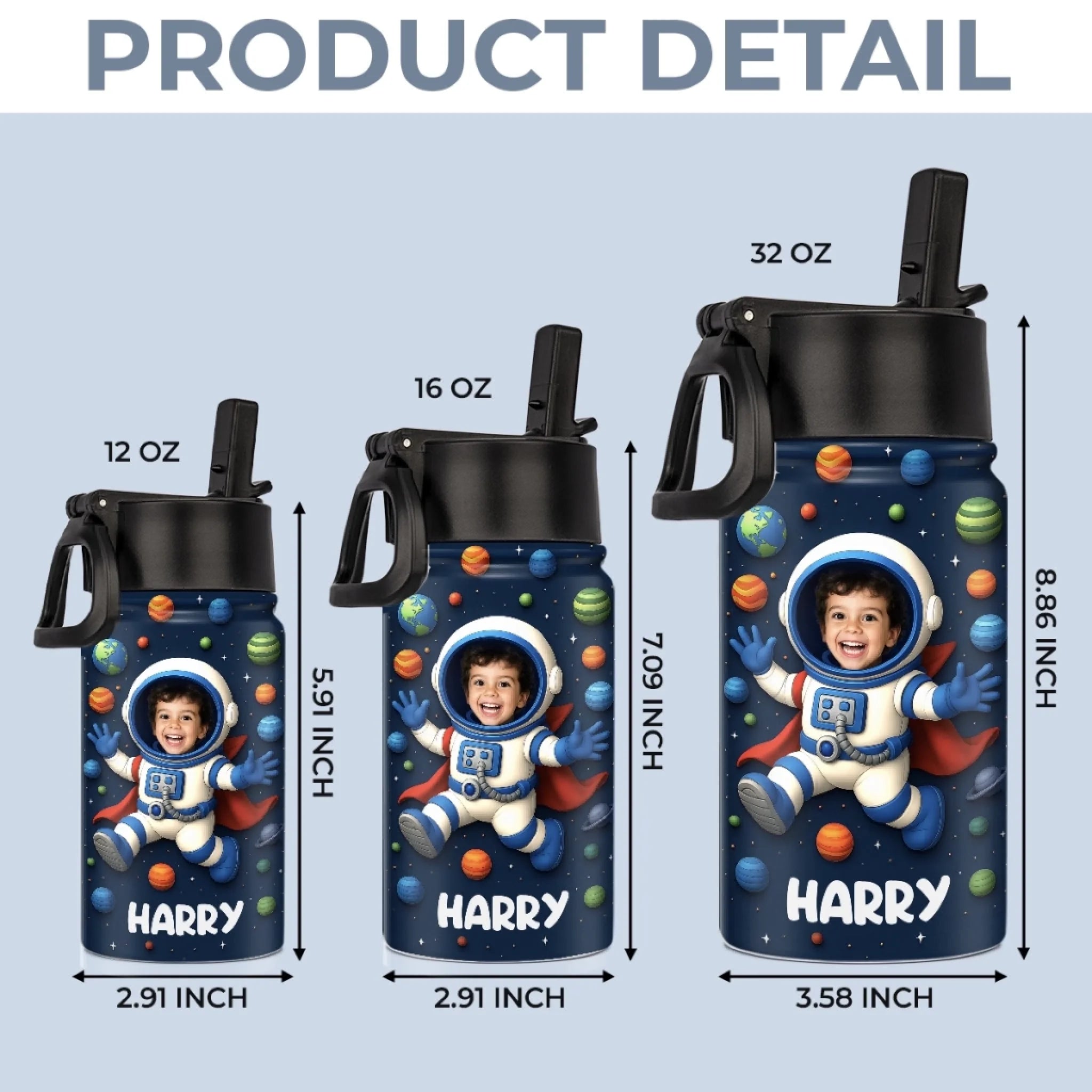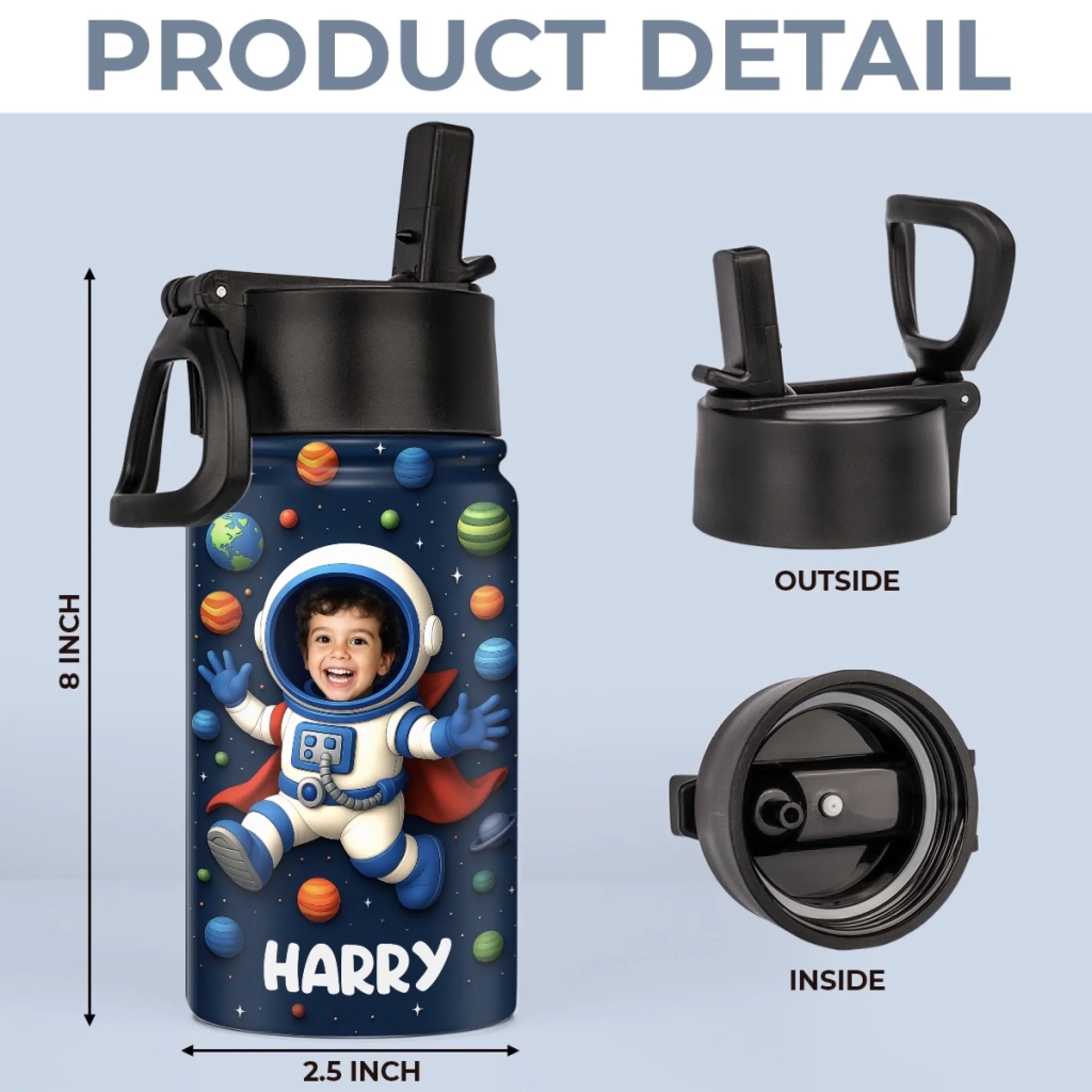 Custom Photo 3D Inflated Effect Printed Kids Water Bottle - Personalized Back To School Gifts For Kids - Dreams Launch Beyond The Stars