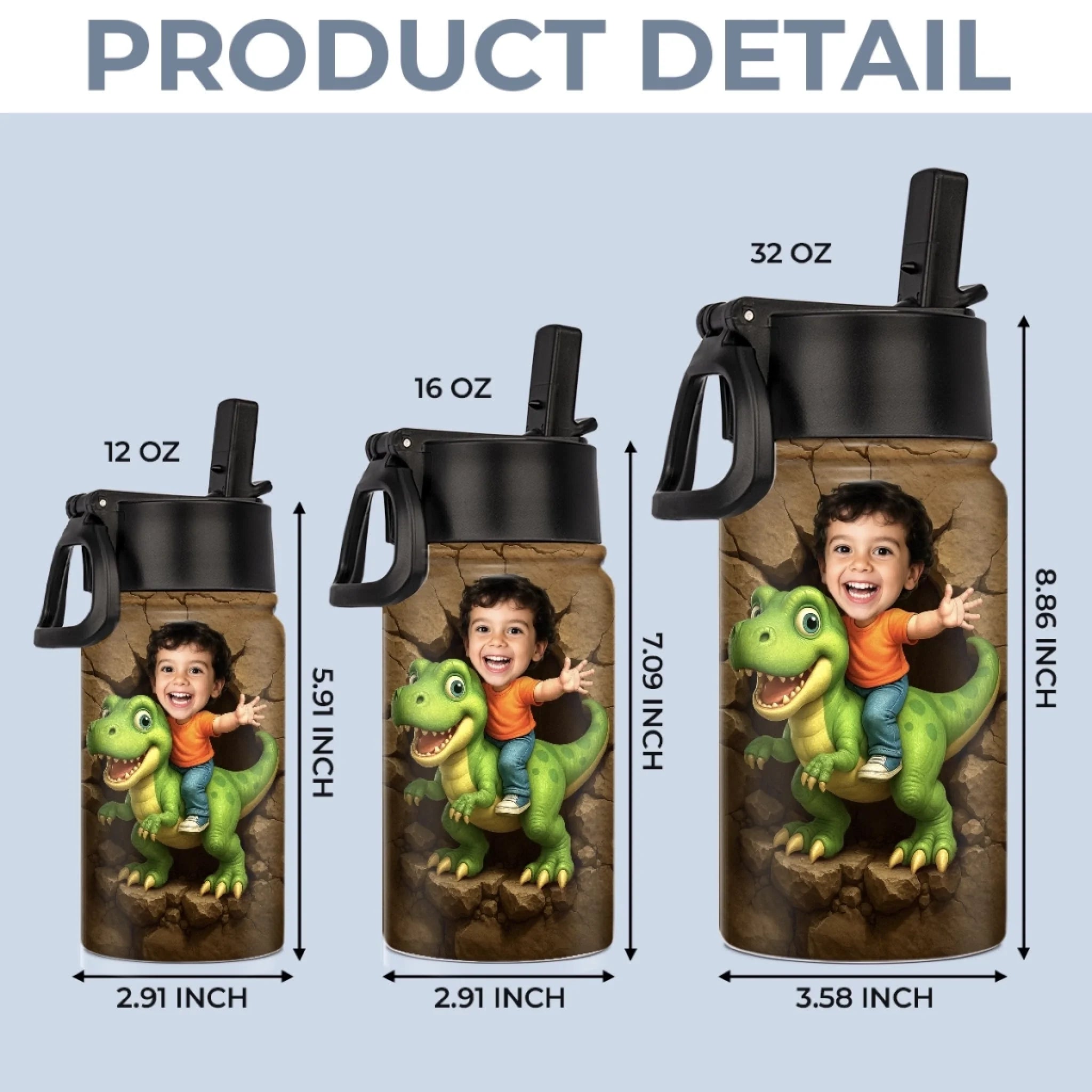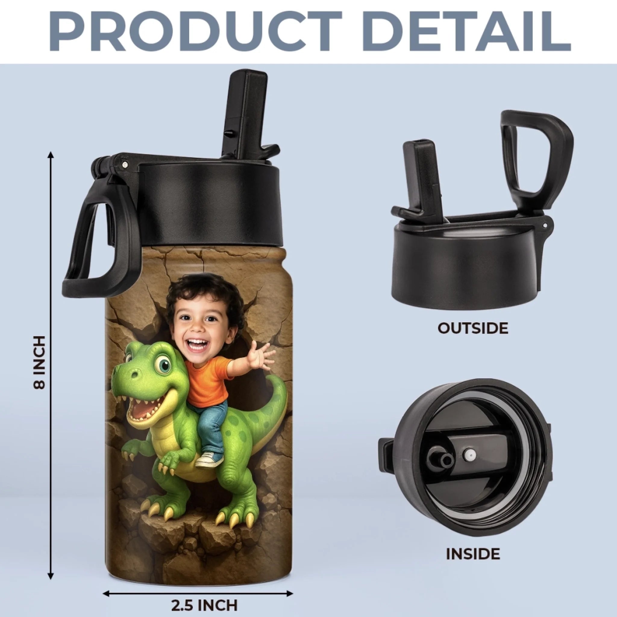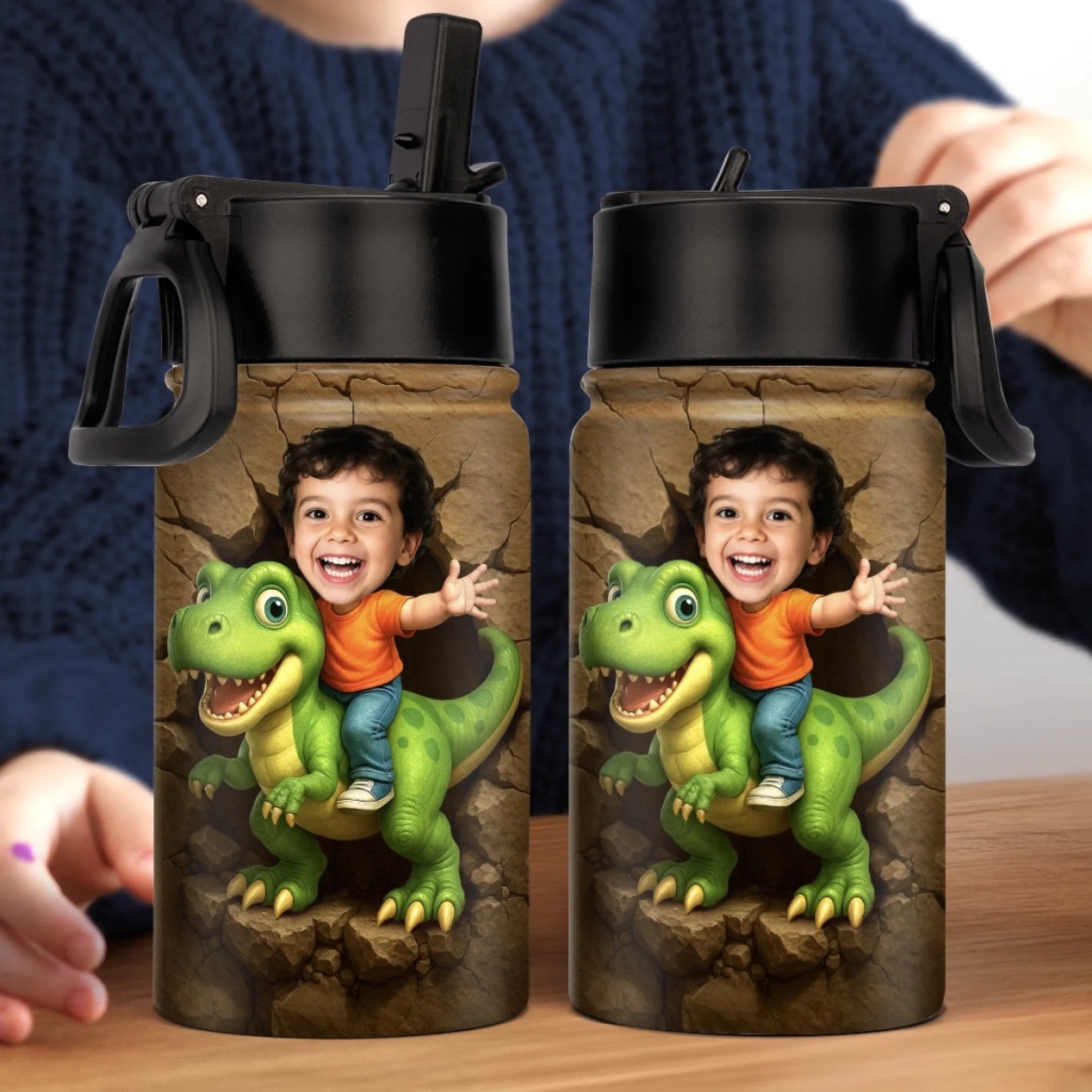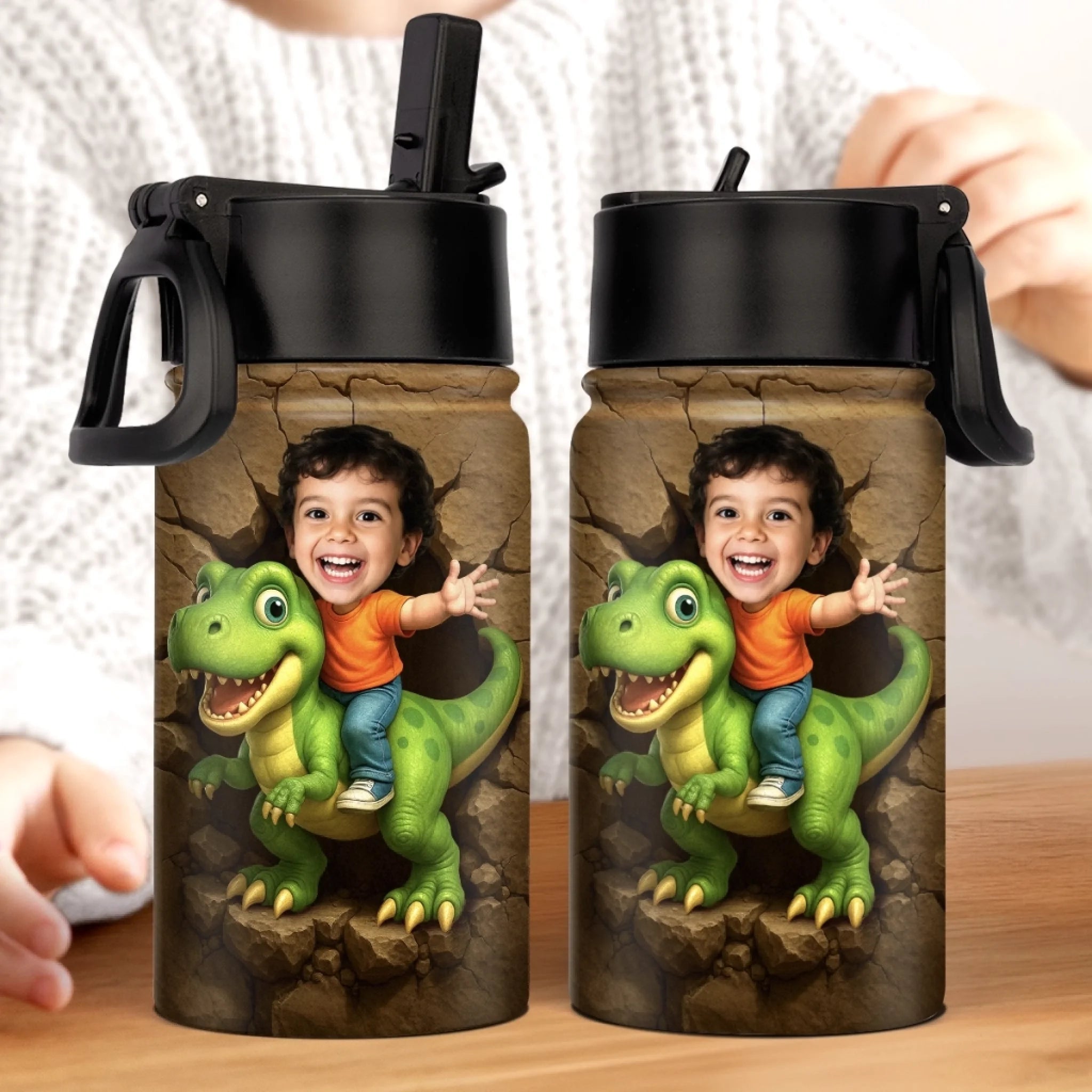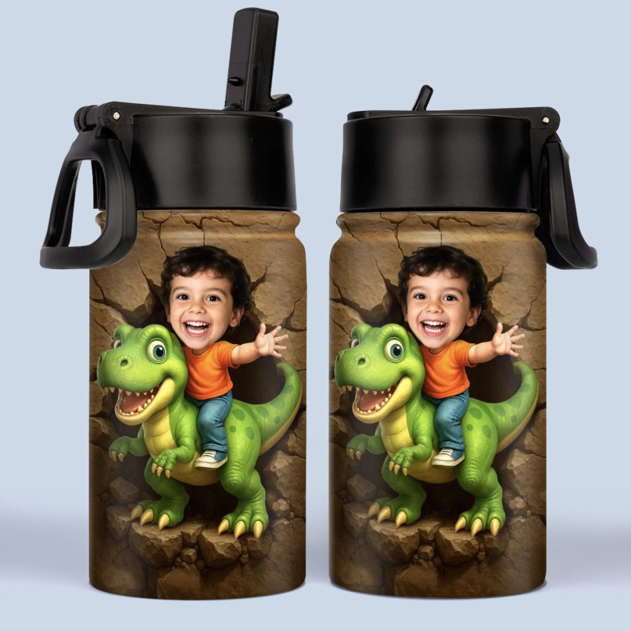 Custom Photo 3D Inflated Effect Printed Kids Water Bottle - Personalized Back To School Gifts For Kids - Roar Into Every Adventure