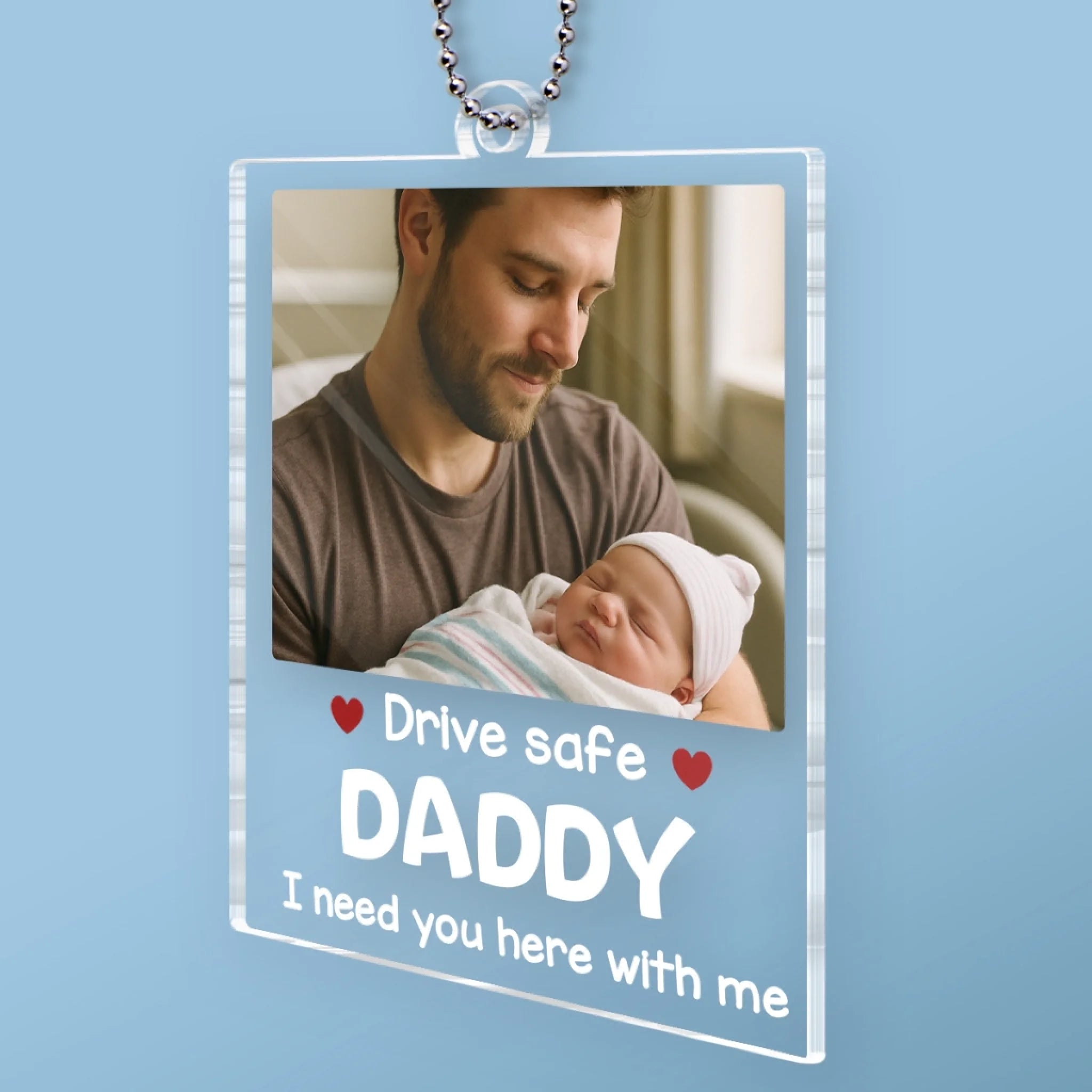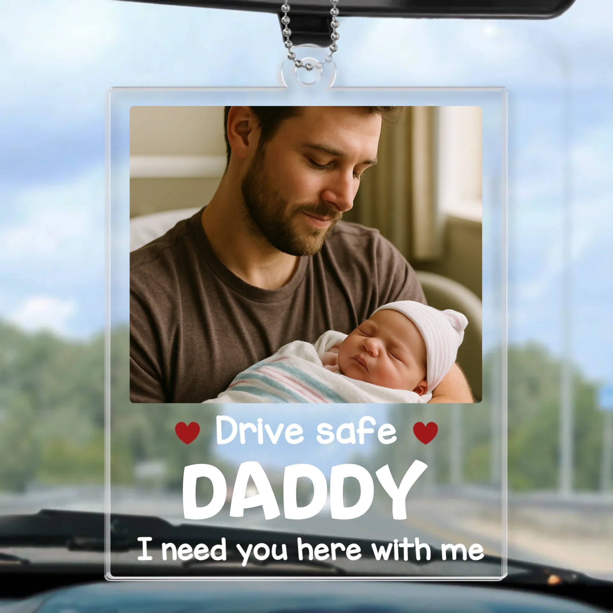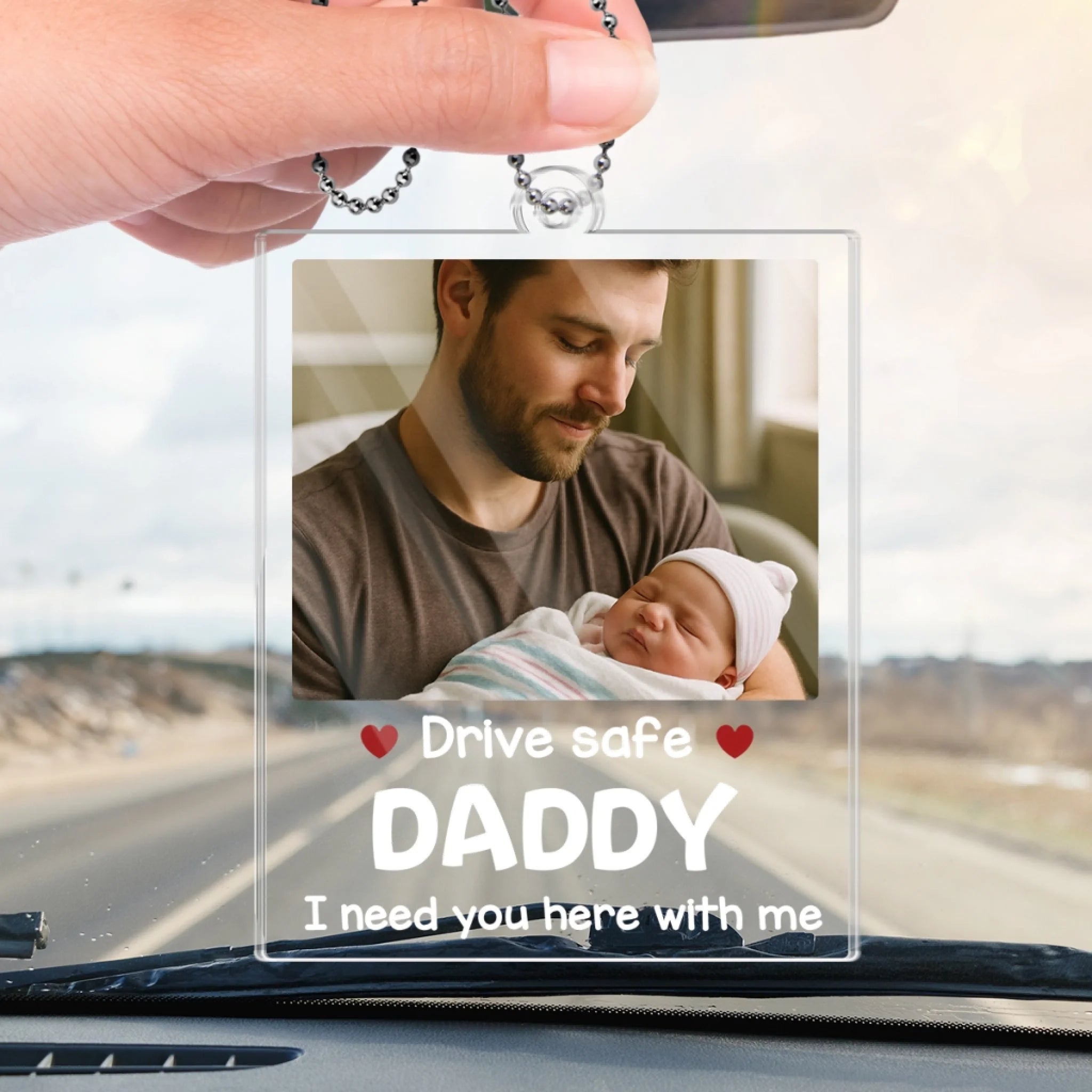 Custom Photo A Baby Needs You Home - Family Personalized Custom Car Ornament - Acrylic Custom Shaped - Father's Day, Gift For Dad