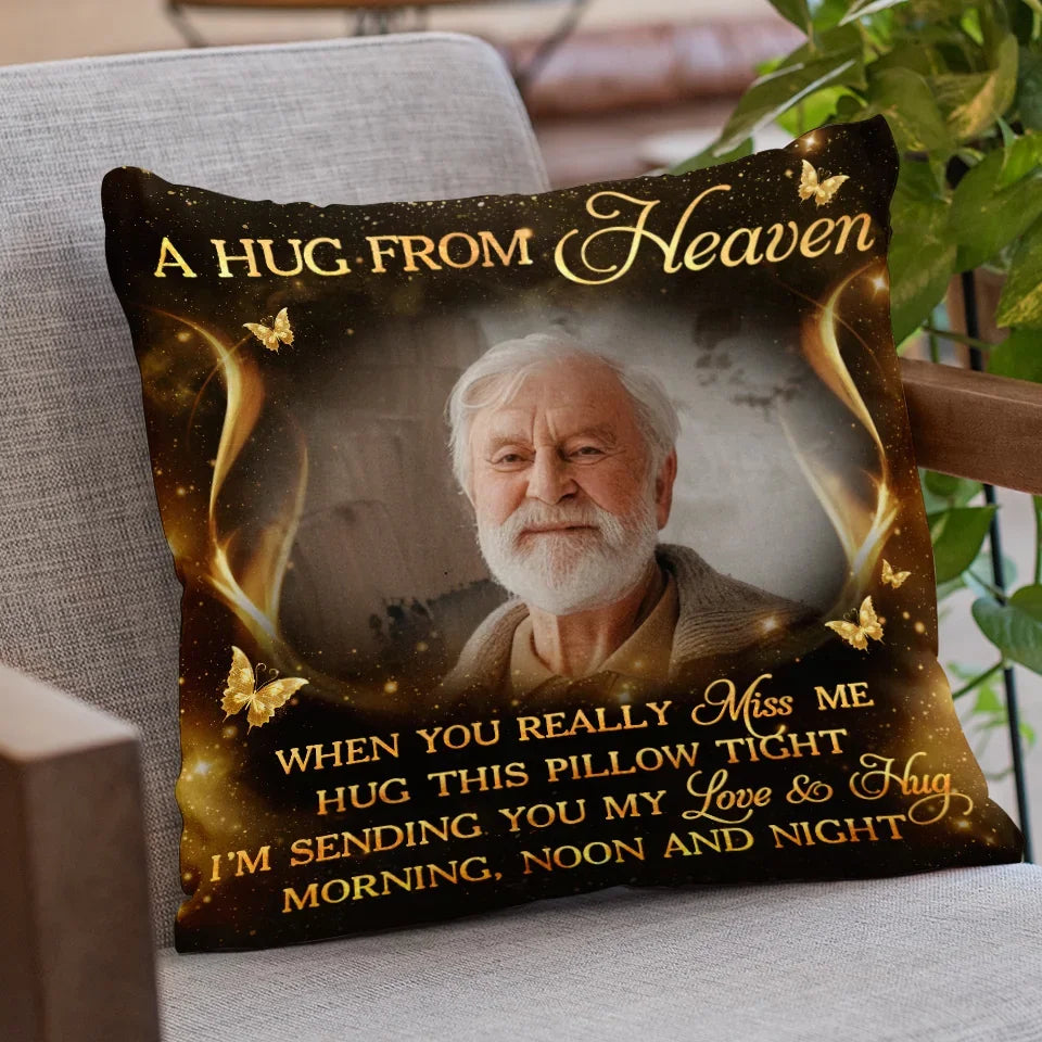 Custom Photo A Hug From Heaven - Memorial Personalized Custom Pillow - Sympathy Gift, Christmas Gift For Family Members