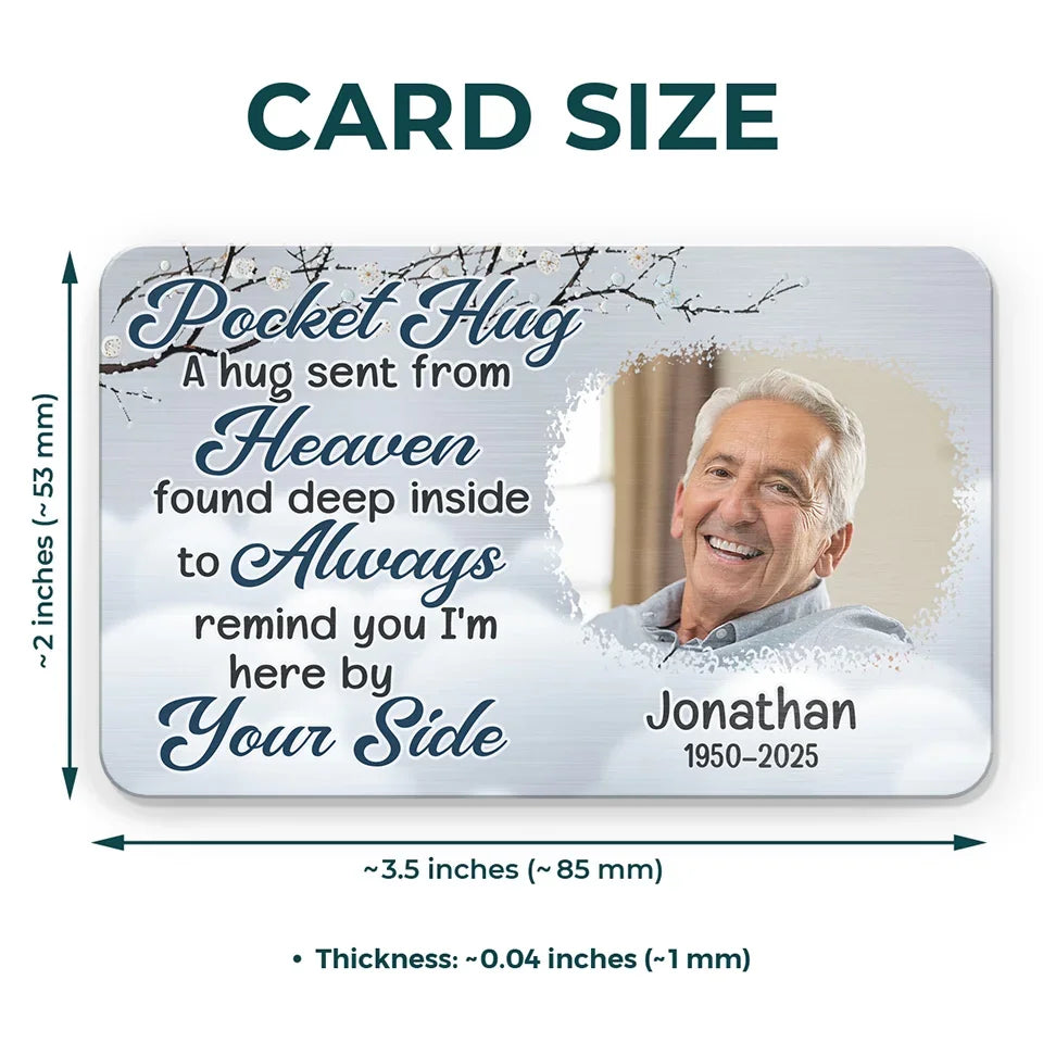 Custom Photo A Hug Sent From Heaven - Memorial Personalized Custom Aluminum Wallet Card - Sympathy Gift For Family Members