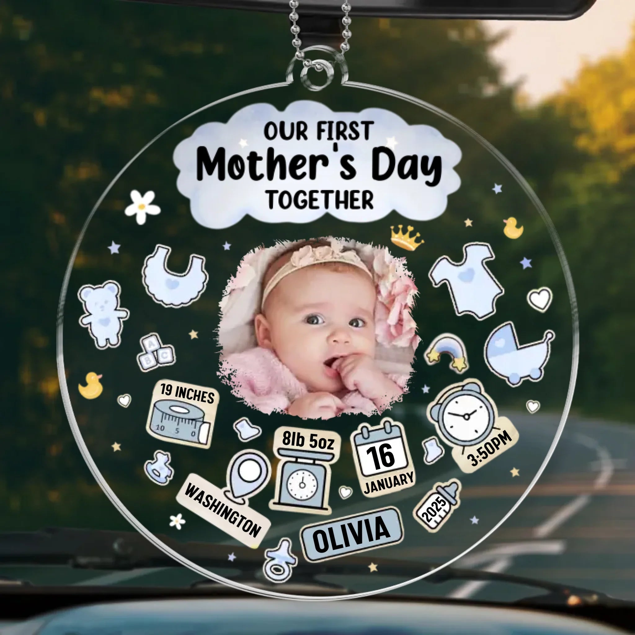 Custom Photo A Special Bond, A Special Day - Family Personalized Custom Car Ornament - Acrylic Custom Shaped - Mother's Day, Baby Shower Gift, Gift For First Mom