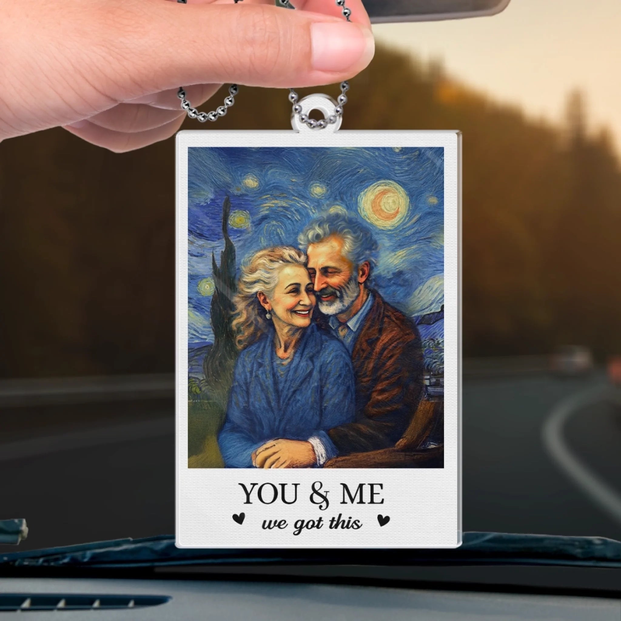 Custom Photo Acrylic Car Ornament - Personalized Anniversary Wedding Gifts For Husband And Wife, Him And Her - Forever Playful Forever In Love