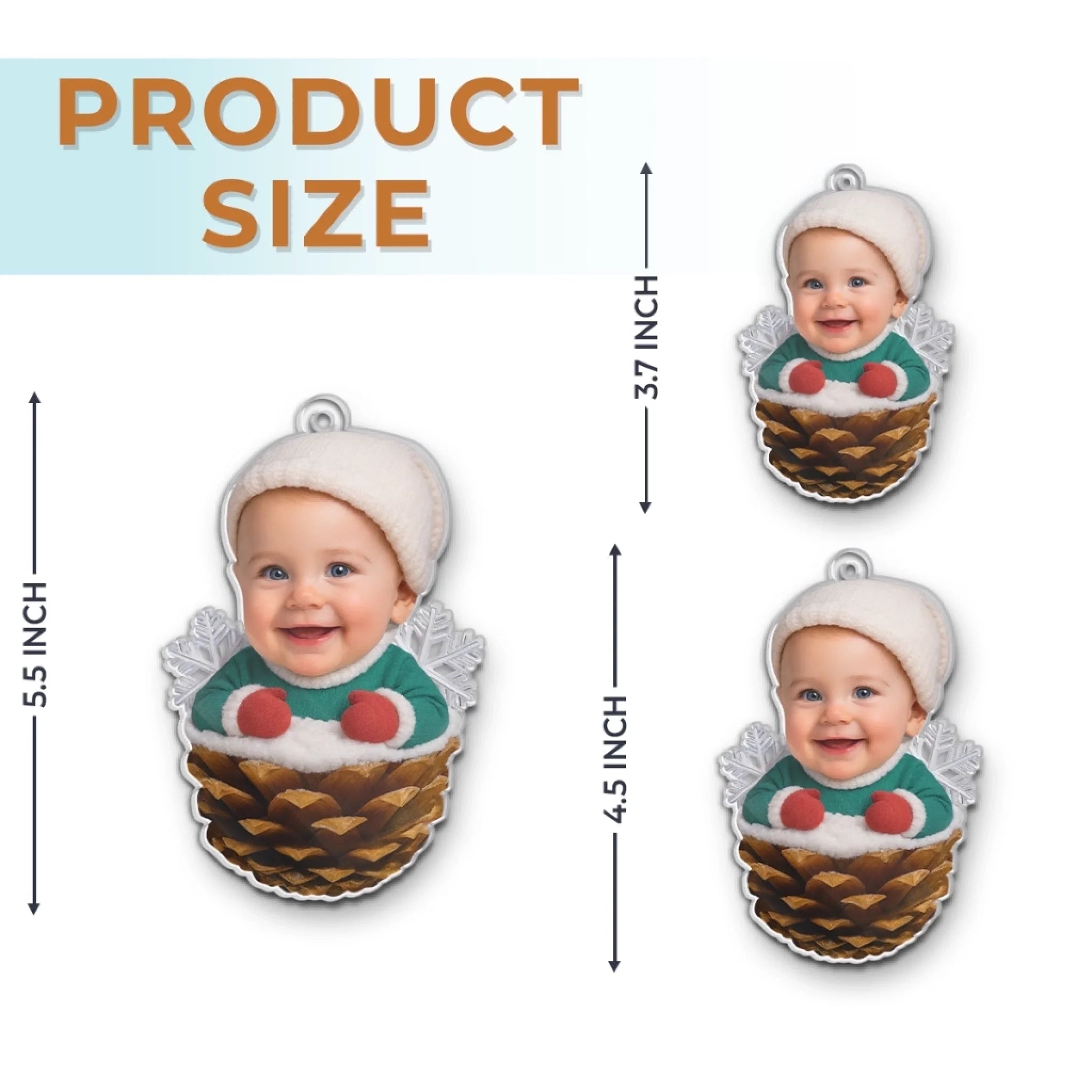 Custom Photo Acrylic Ornament - Personalized Christmas Baby Shower, Gender Reveal Gifts For New Moms, New Dads, New Parents - Cutest Pinecone On The Tree