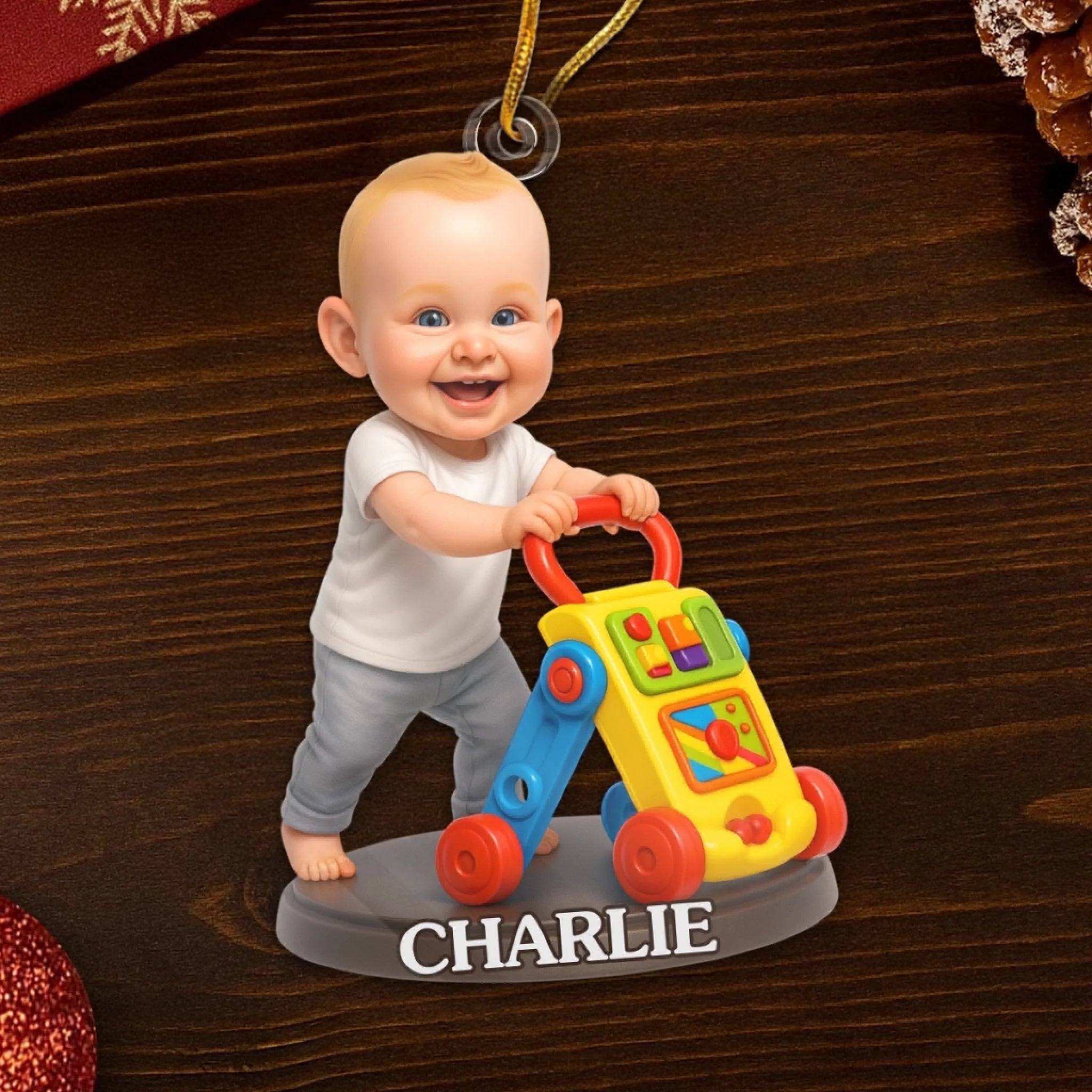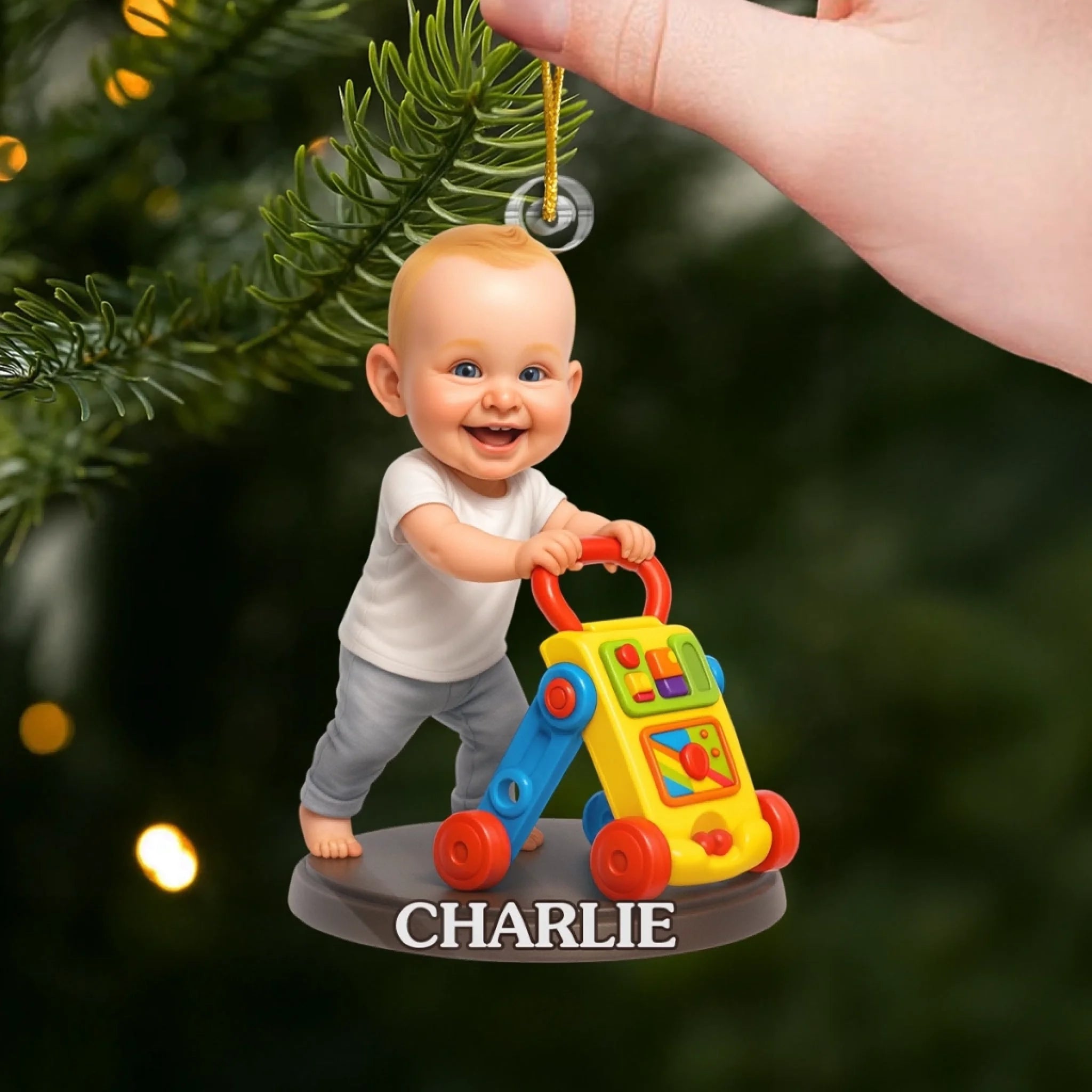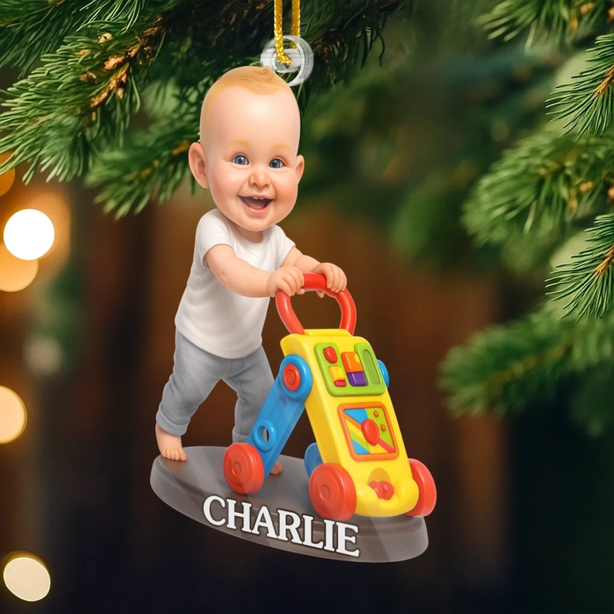 Custom Photo Acrylic Ornament - Personalized Christmas Baby Shower, Gender Reveal Gifts For New Moms, New Dads, New Parents - Tiny Steps Big Love Ahead