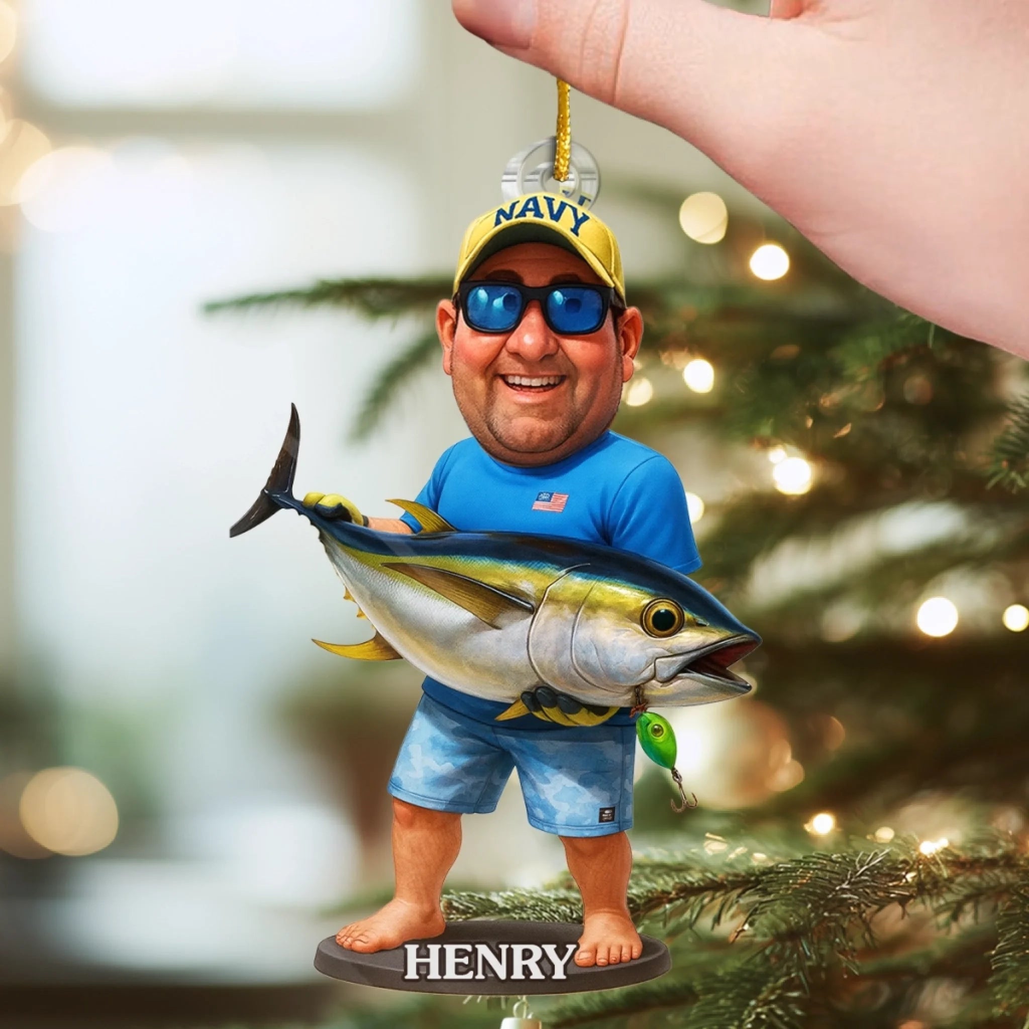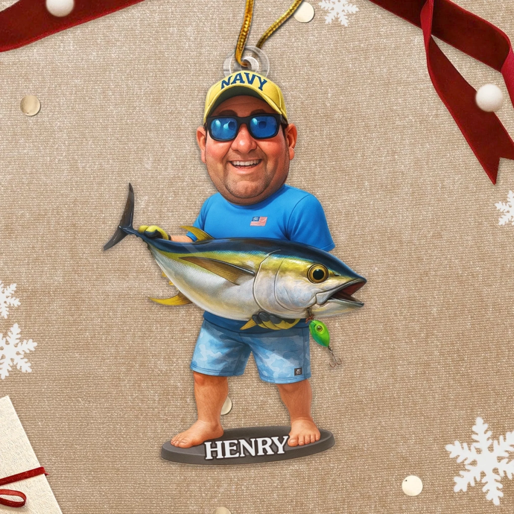 Custom Photo Acrylic Ornament - Personalized Christmas Birthday Fishing Gifts For Fisherman - Fishing Is My Cardio