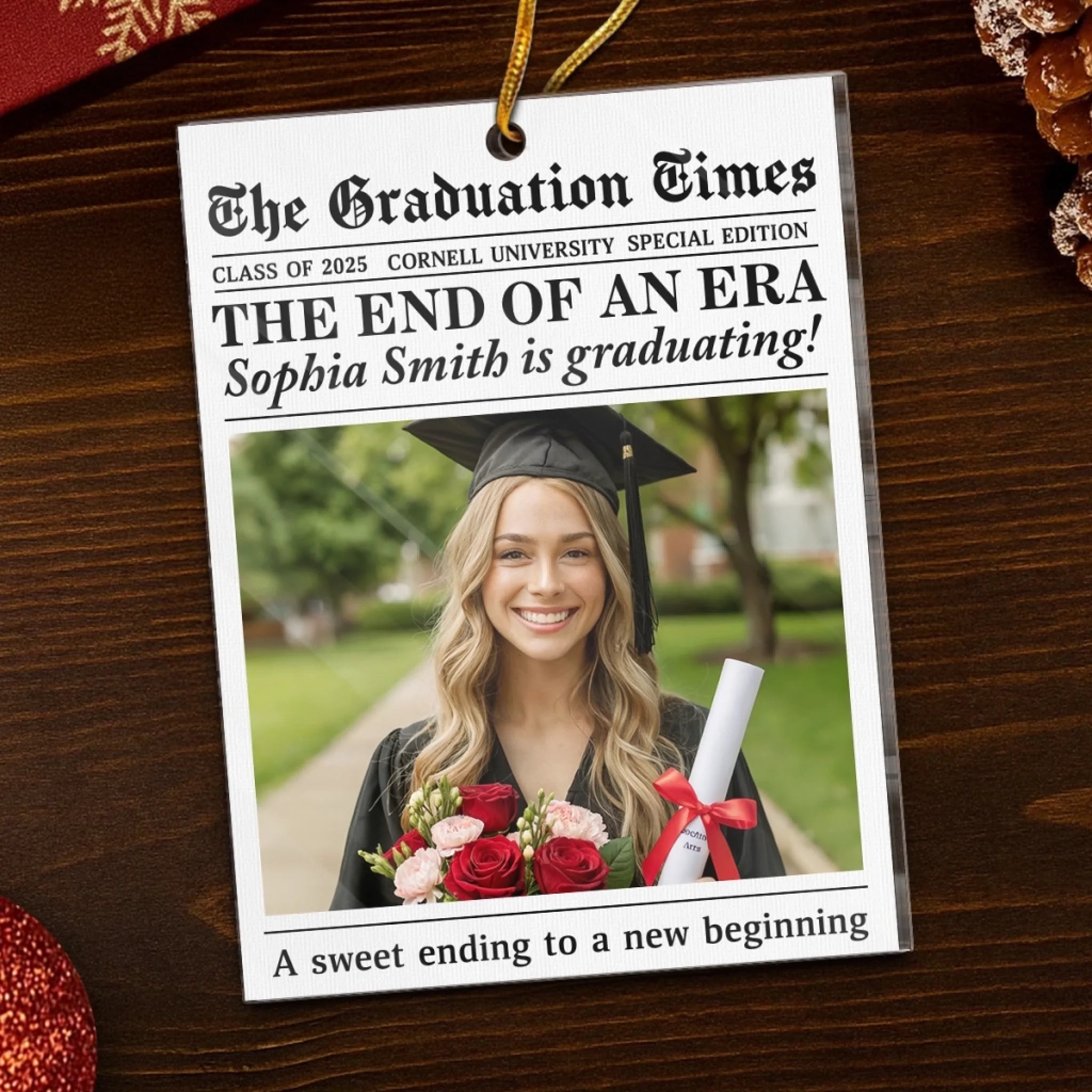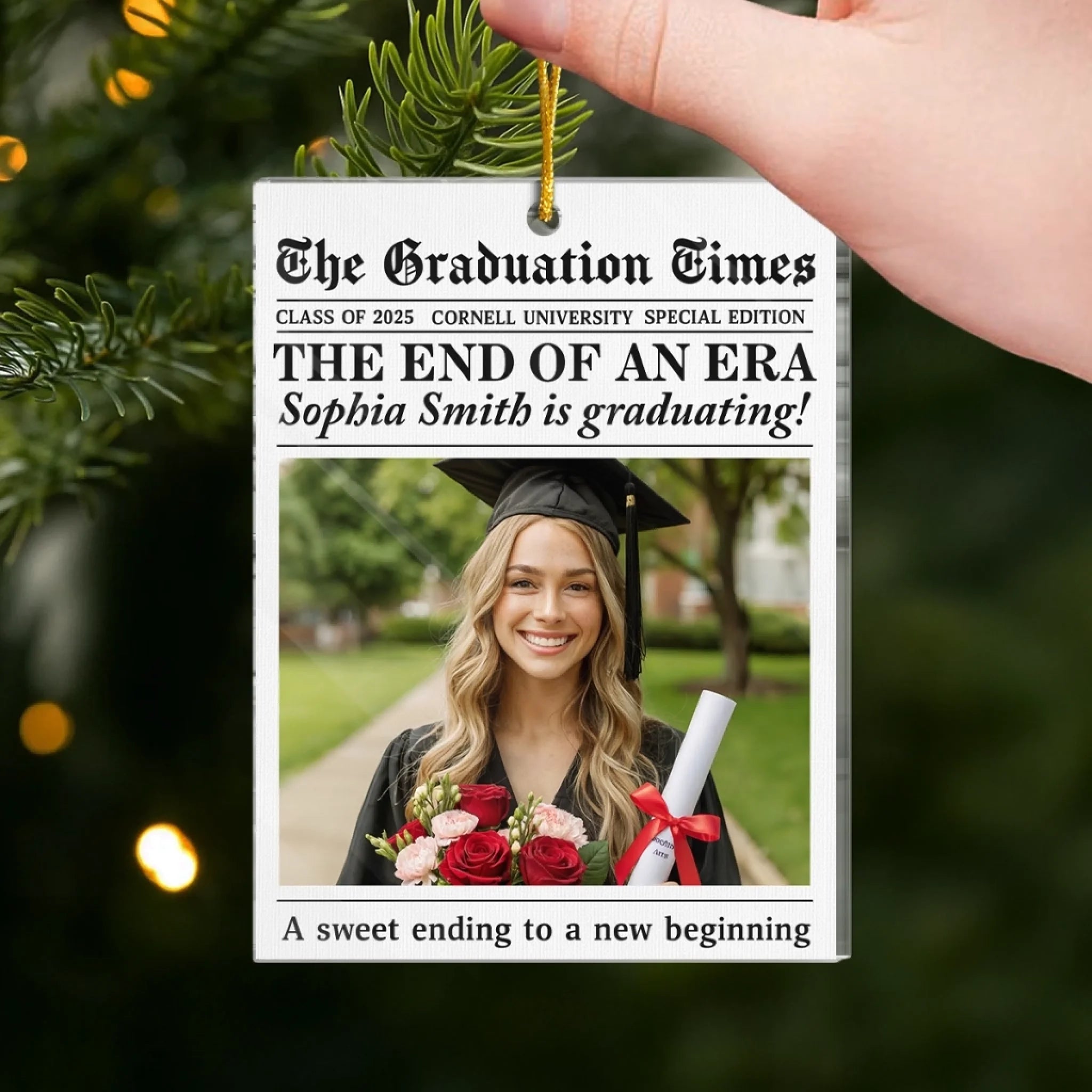 Custom Photo Acrylic Ornament - Personalized Christmas Graduation Gifts For Him, Her - New Beginnings Bright With Hope
