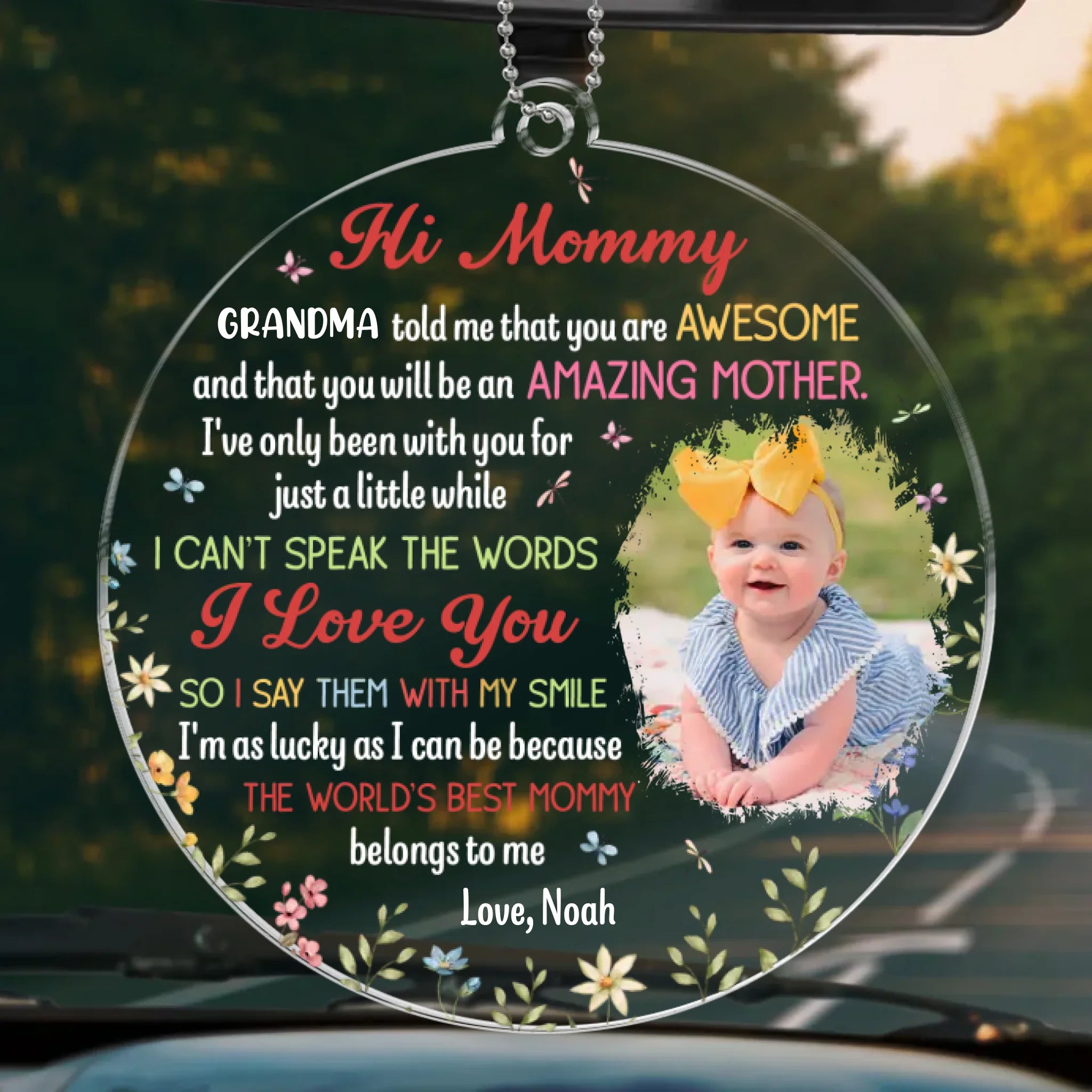 If you want to find a car decoration that can show something unique, this car ornament is the best choice. It can be hung on the rearview mirror and serve as a mini gallery of memories that travels with the owner on every drive. This item is suitable for all occasions, so surprise your beloved ones with such cute miniature and let it make them smile every day.