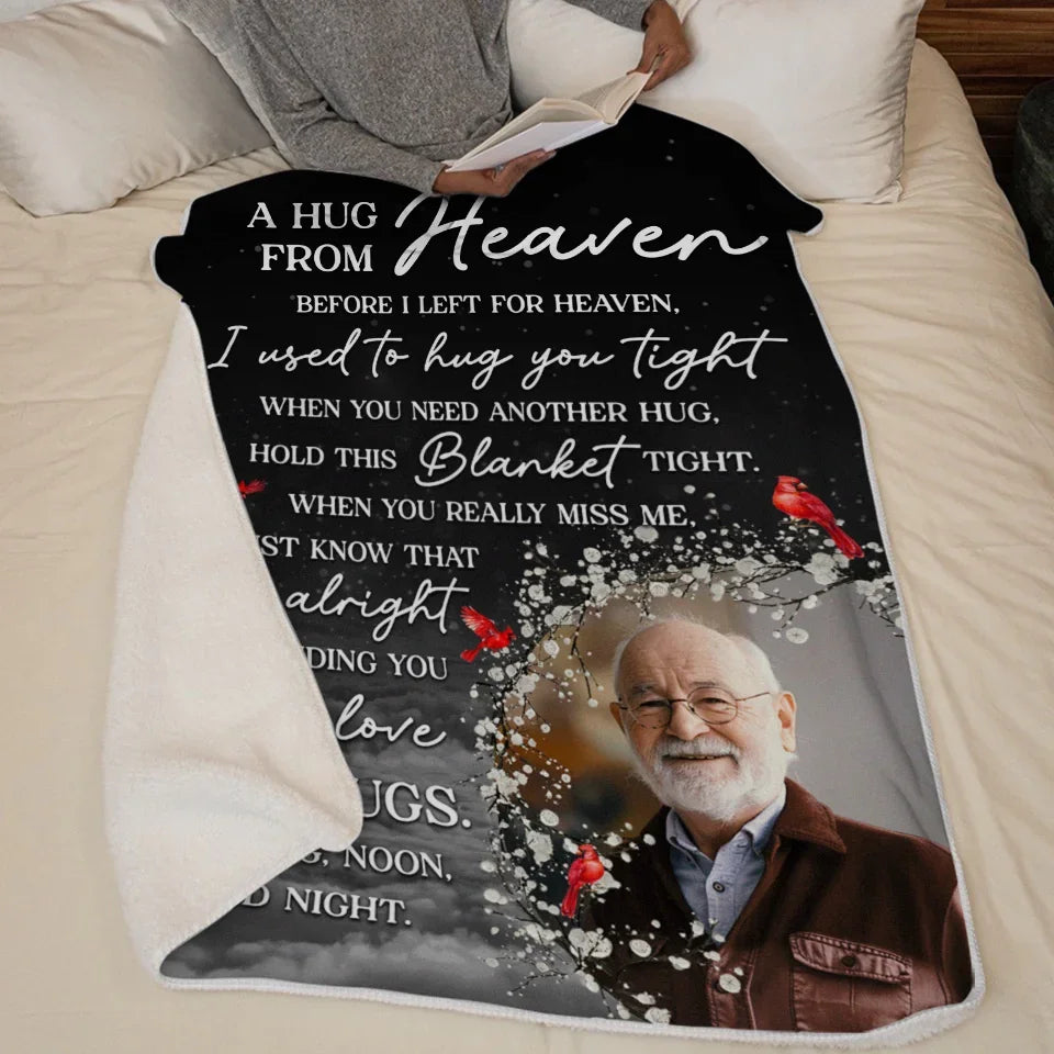 Custom Photo Before I Left For Heaven, I Used To Hug You Tight - Memorial Personalized Custom Blanket - Sympathy Gift, Christmas Gift For Family Members
