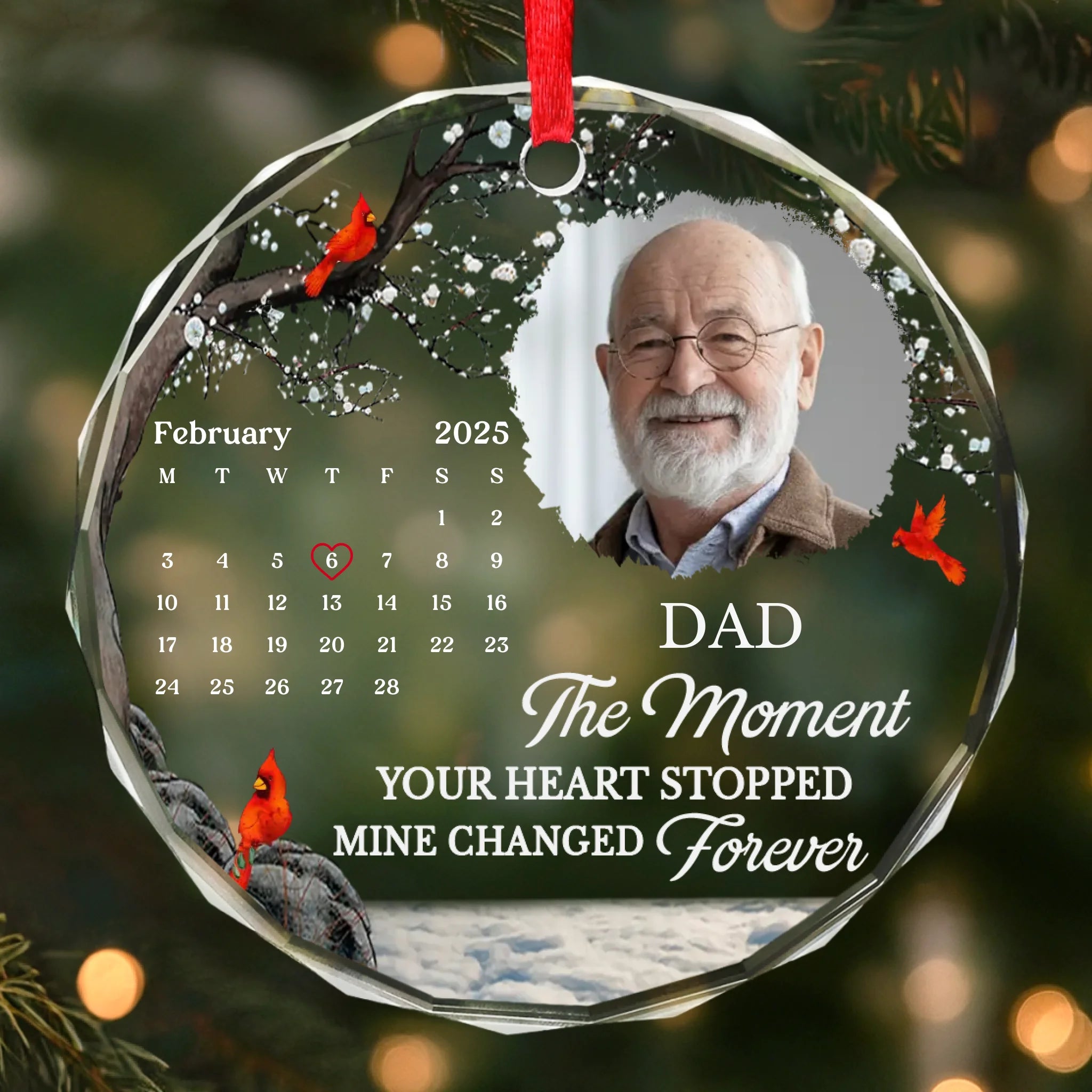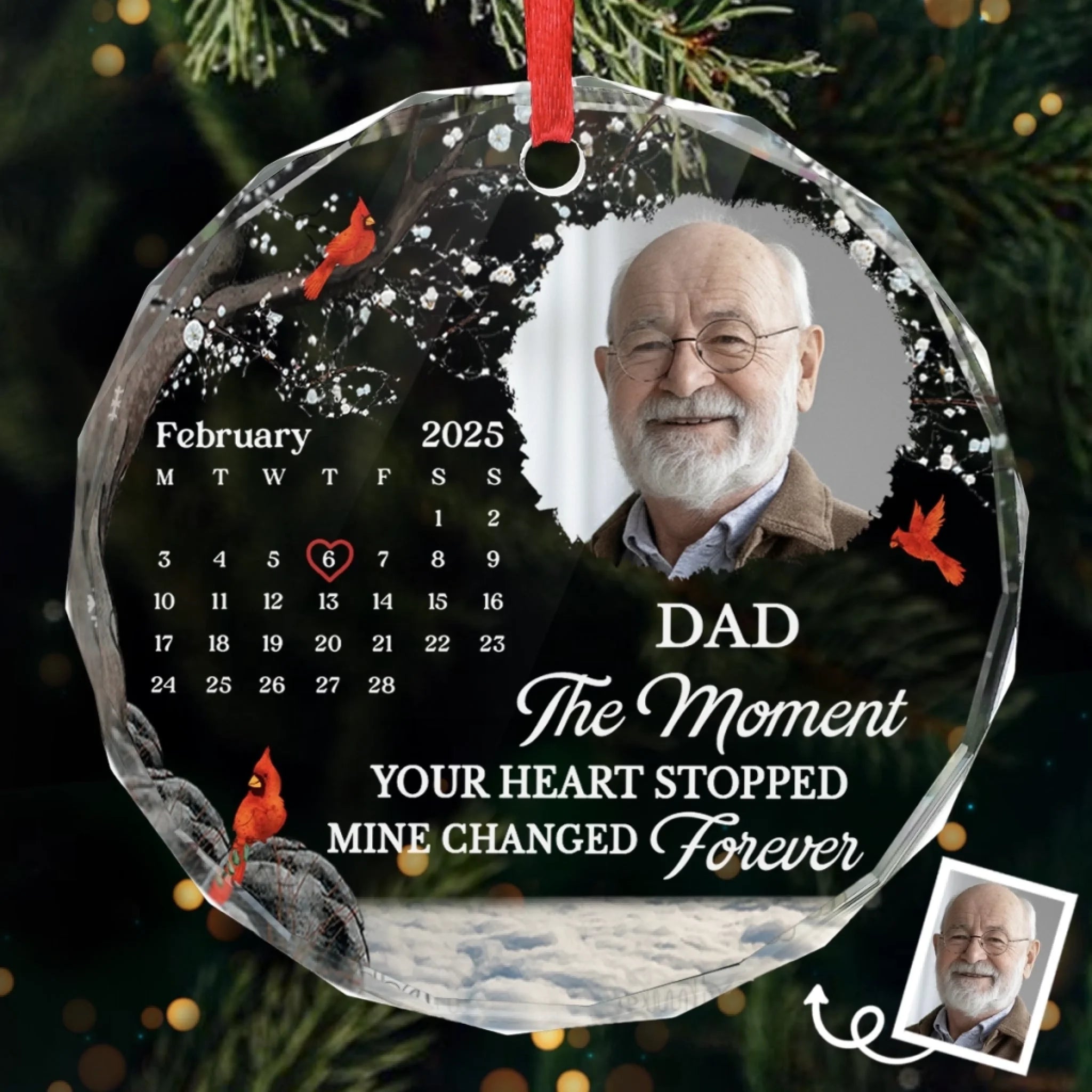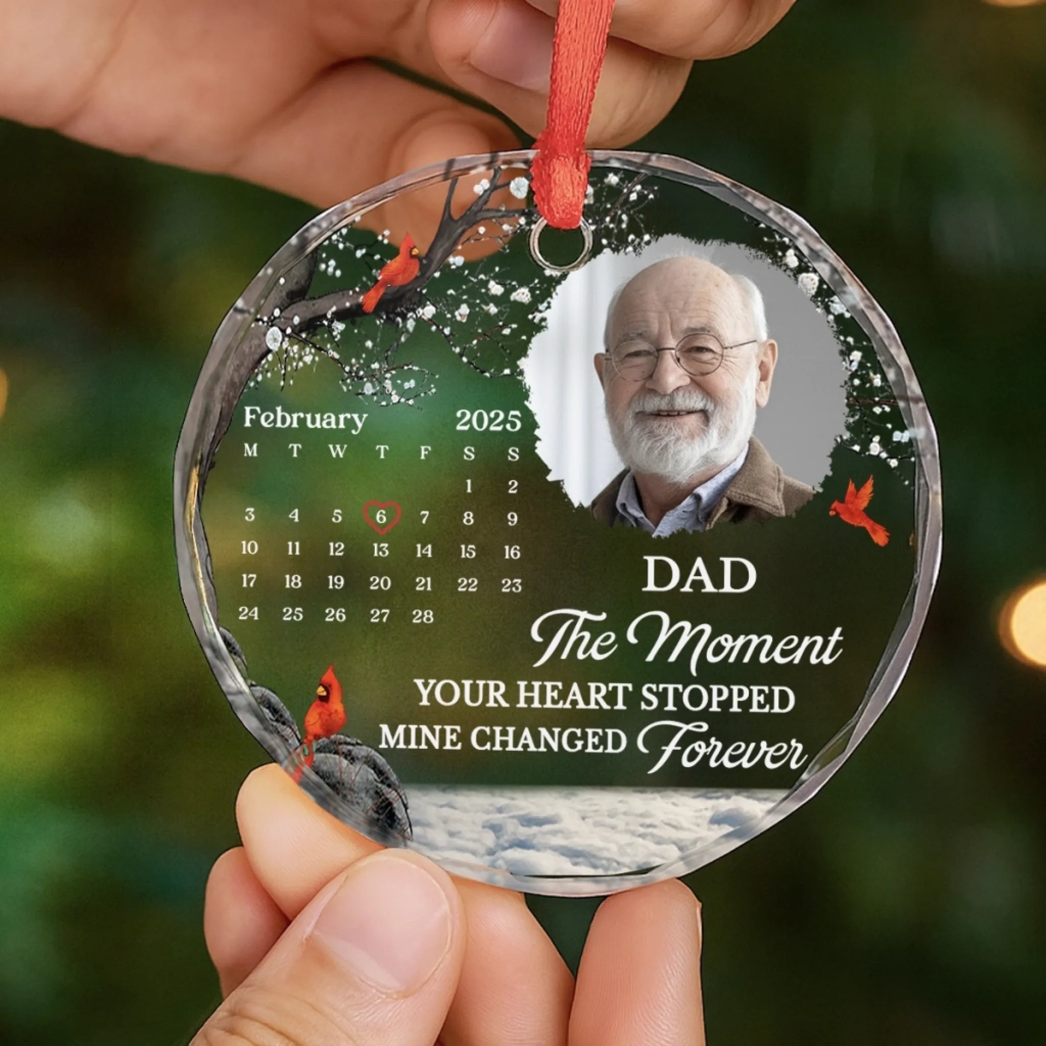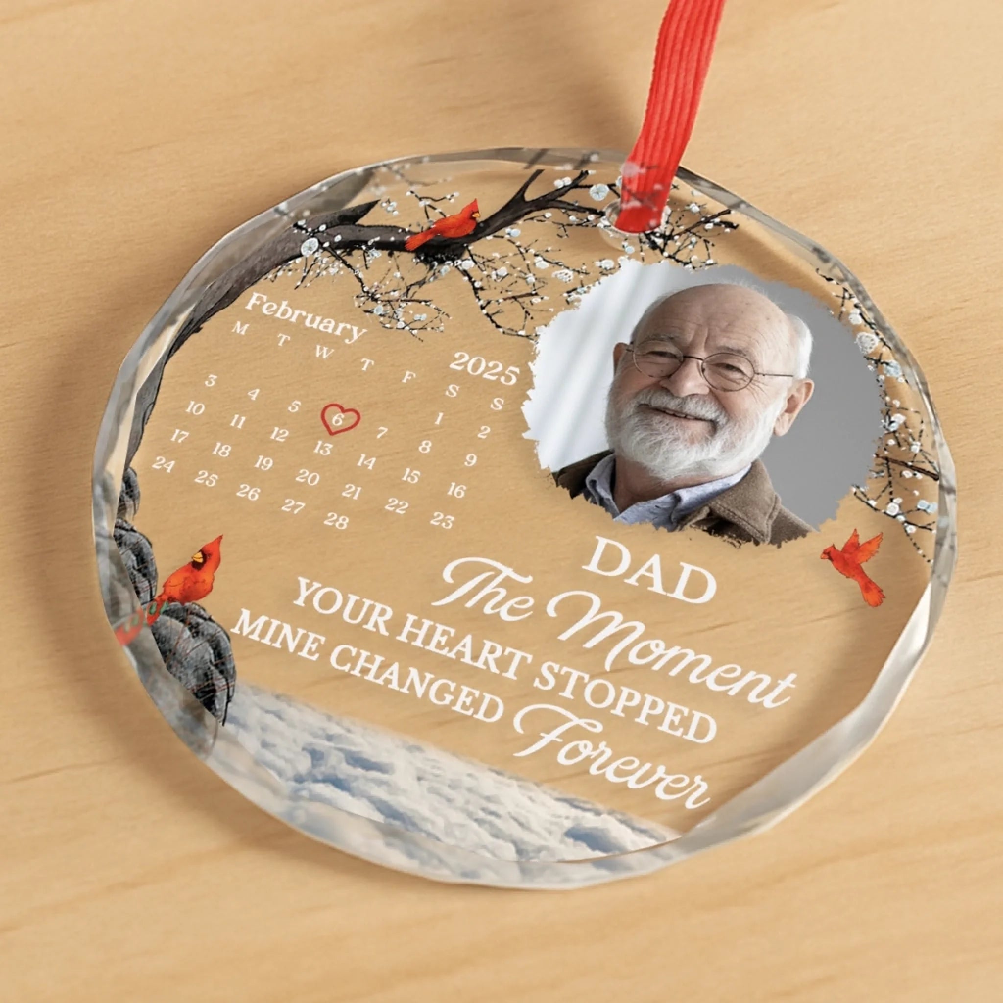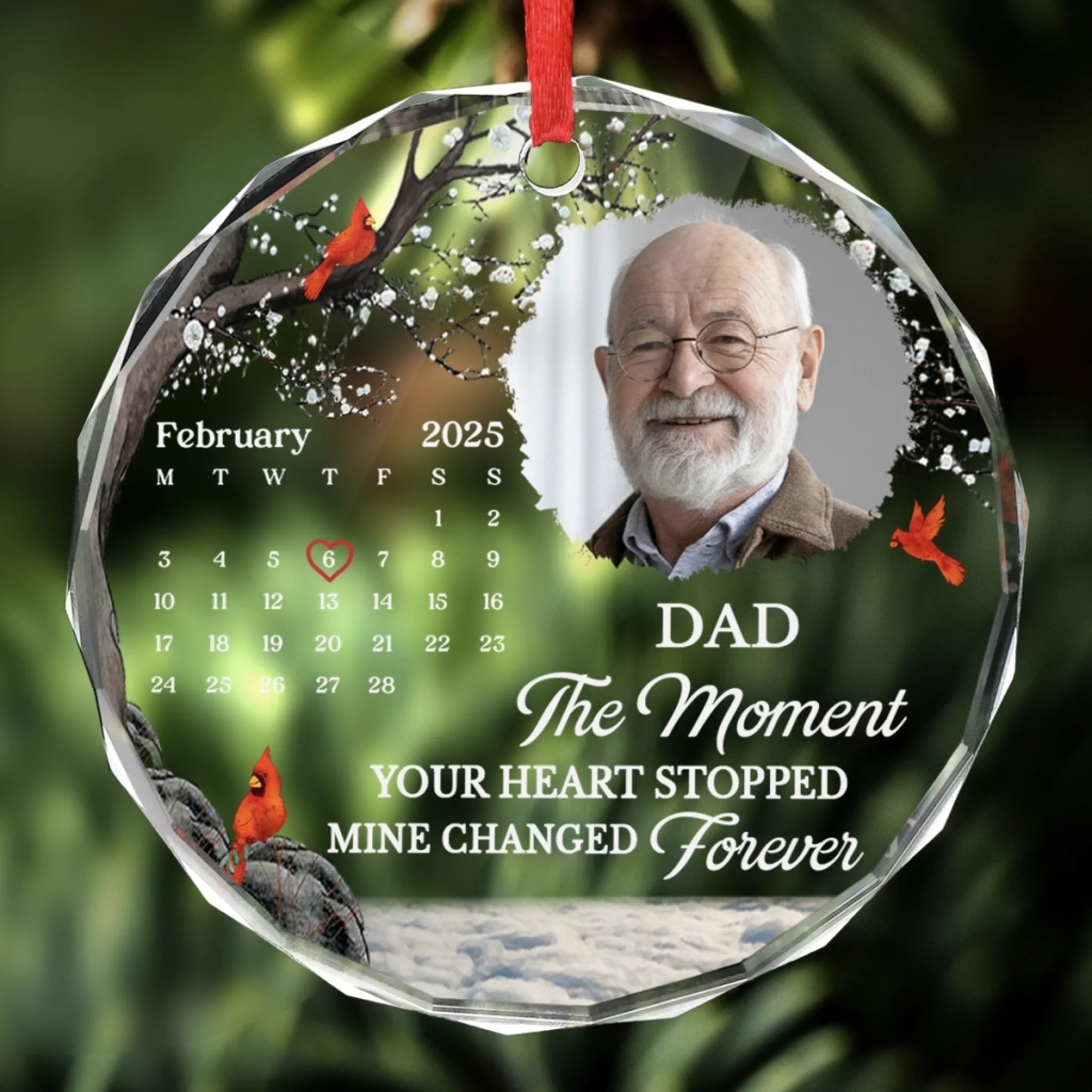 Custom Photo Cardinal Circle Glass Ornament - Personalized Christmas Memorial Sympathy Gifts For Loss Of Mom, Dad - Always In Our Hearts And Memories