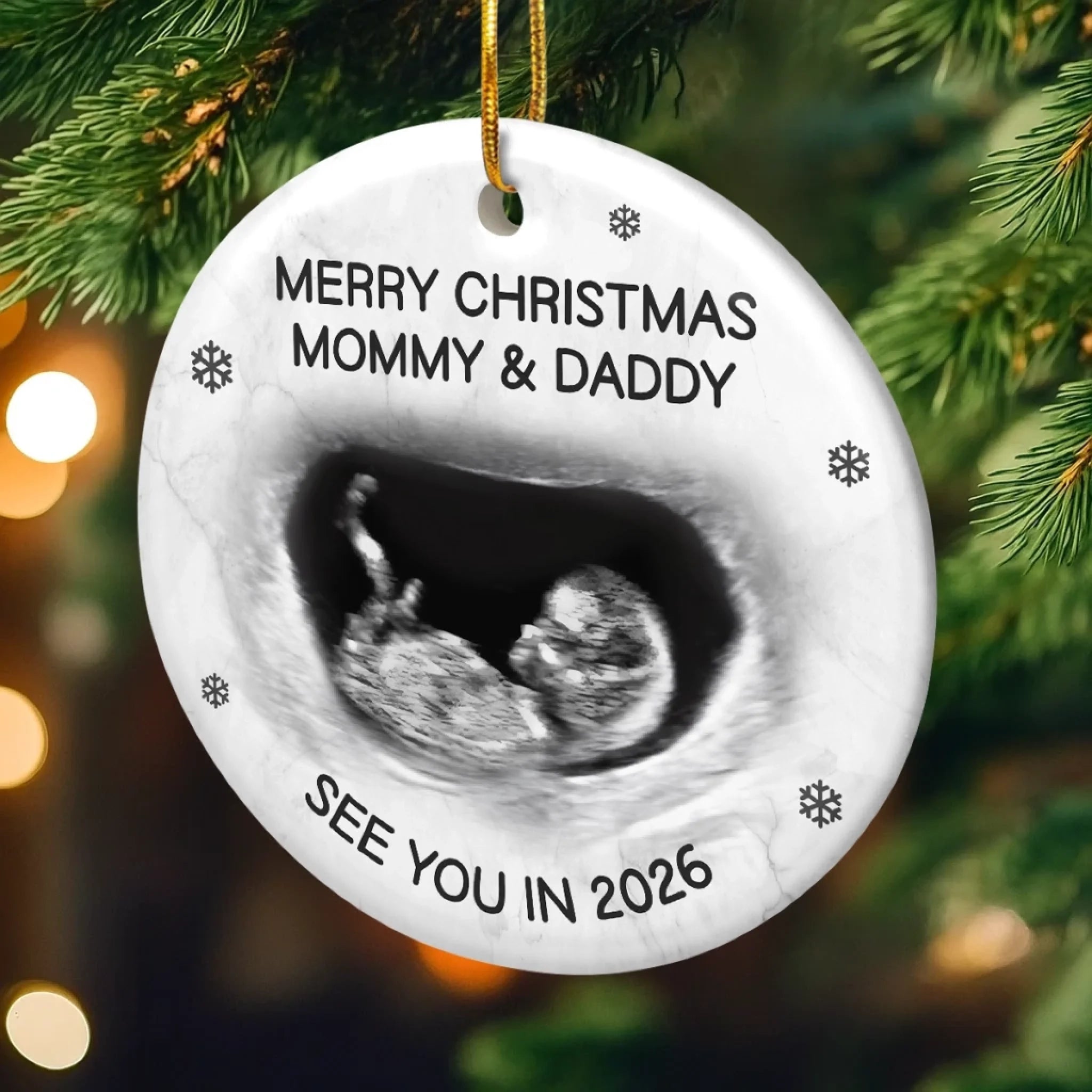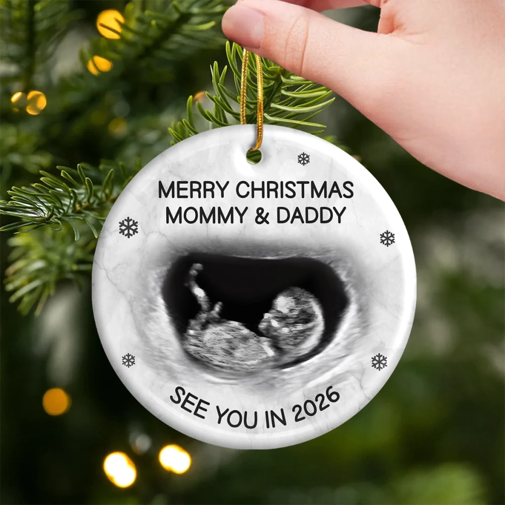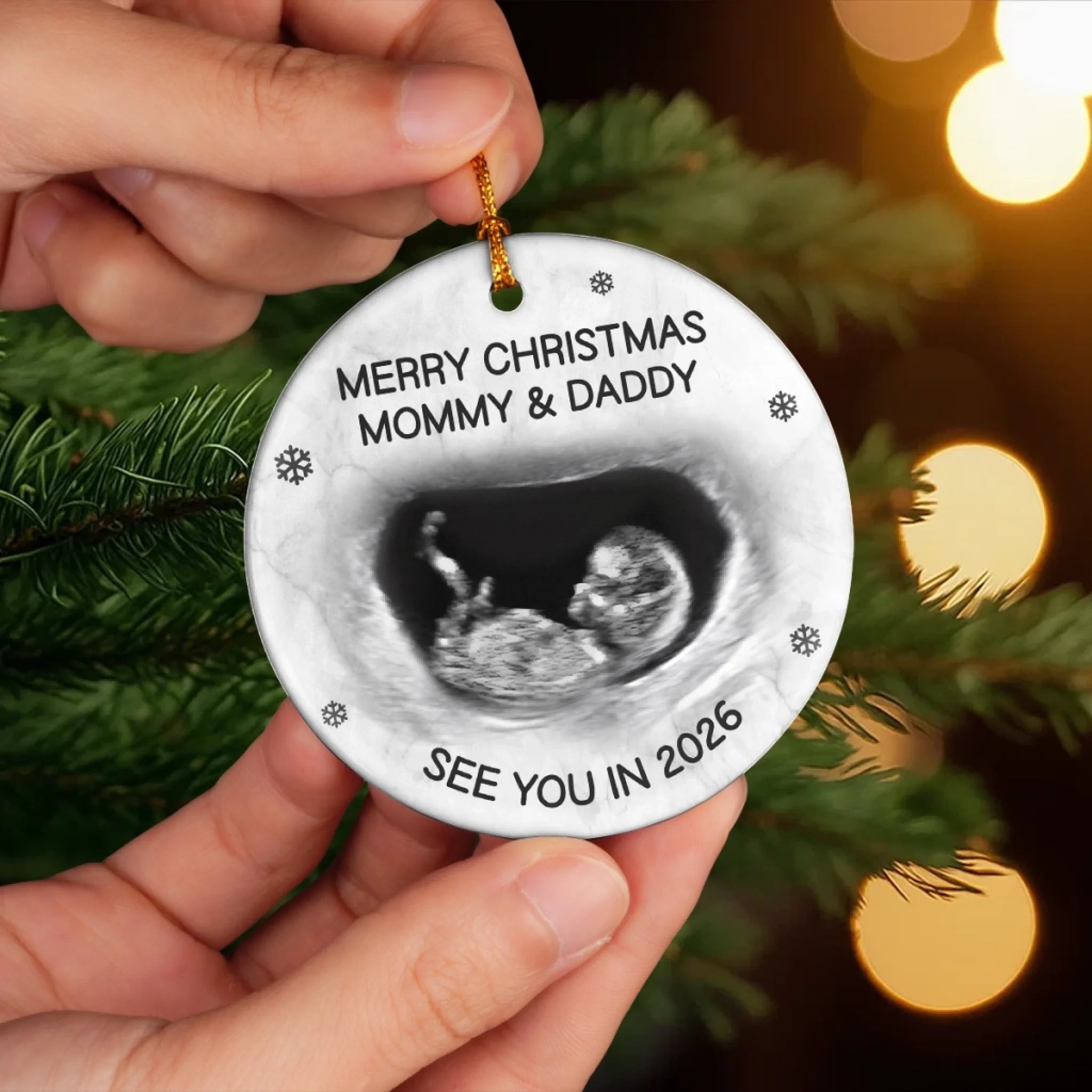 Custom Photo Ceramic Ornament - Personalized Christmas Baby Shower, Gender Reveal Gifts For New Moms, New Dads, New Parents - A Little Elf Arriving Soon