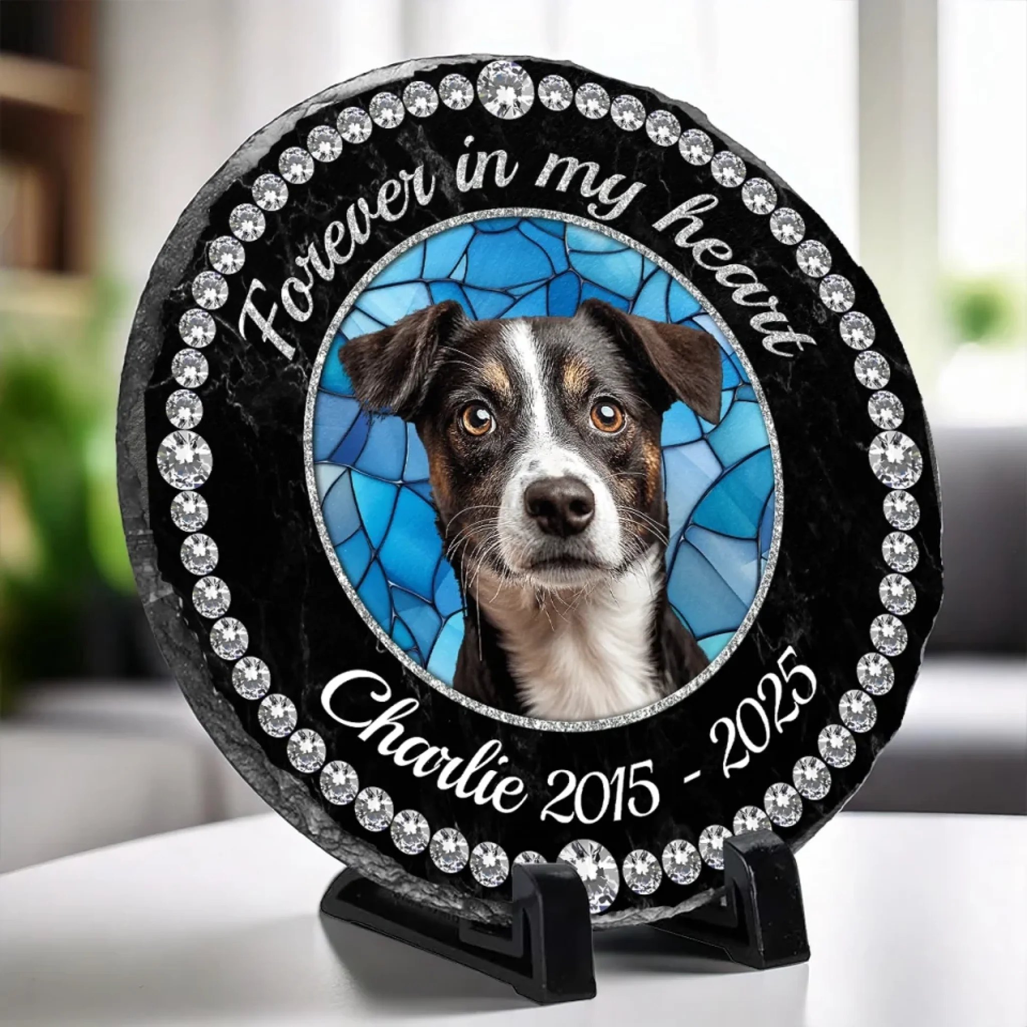 Custom Photo Cherished Forever, Loved Always - Memorial Personalized Custom Round Shaped Stone With Stand - Sympathy Gift For Pet Owners, Pet Lovers
