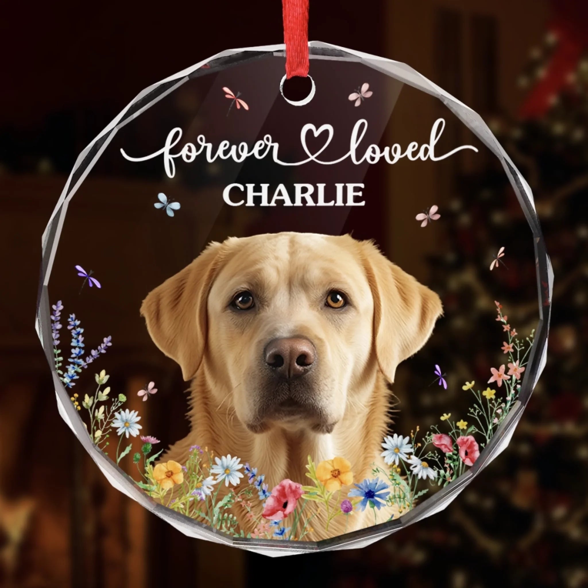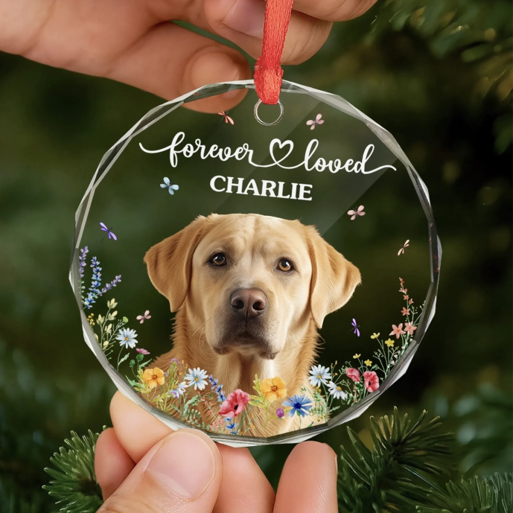 Custom Photo Circle Glass Ornament - Personalized Pet Christmas Memorial Sympathy Gifts For Dogs, Cats - Love That Never Fades