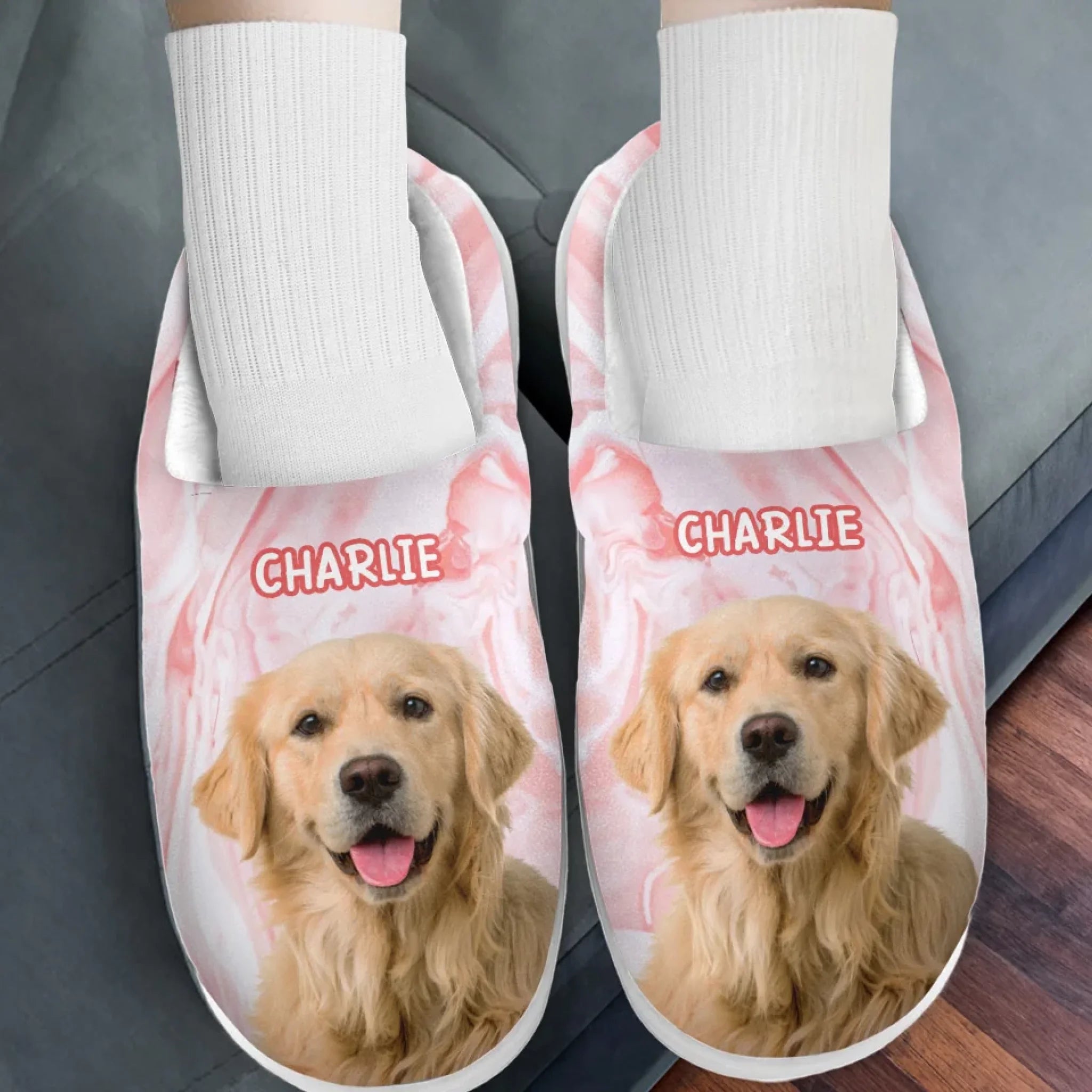 Custom Photo Cozy Feet, Happy Heart - Dog & Cat Personalized Custom Fluffy Slippers - Mother's Day, Gift For Pet Owners, Pet Lovers