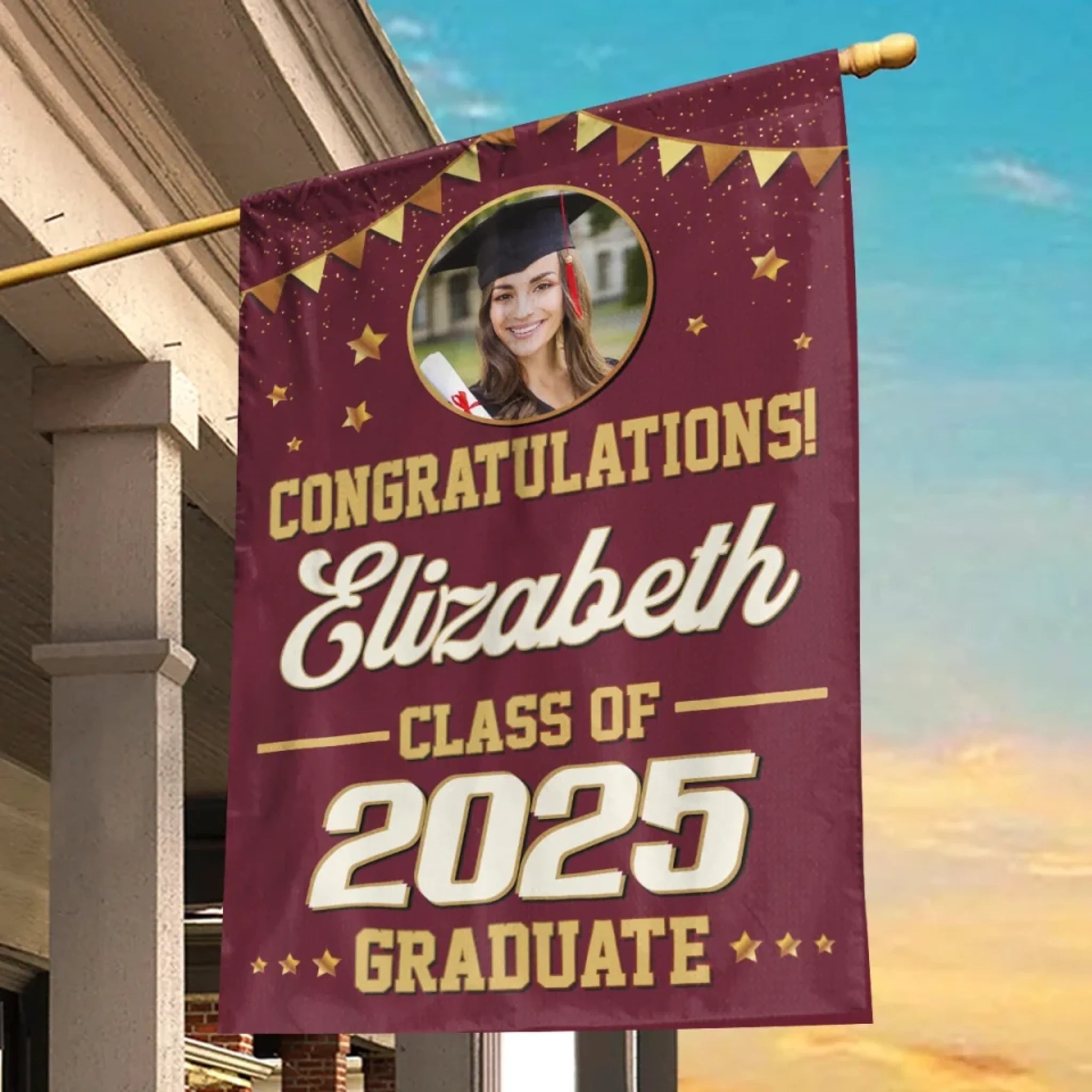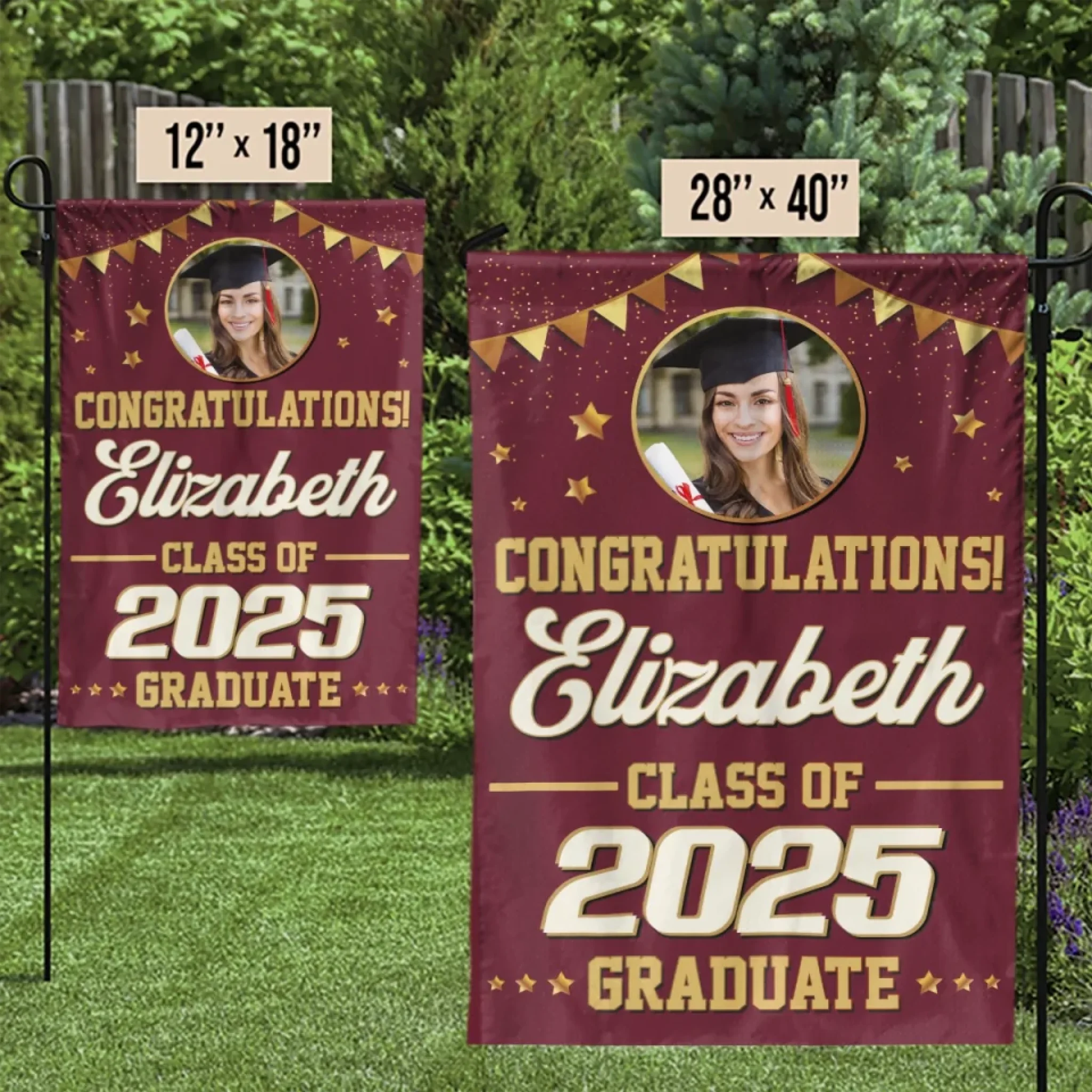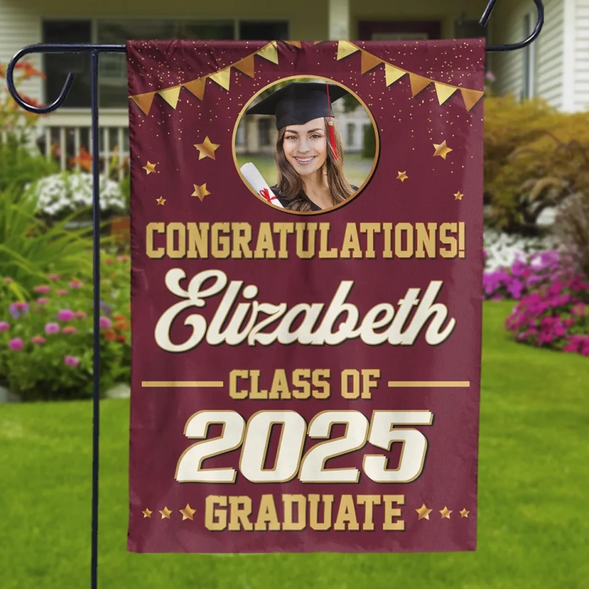 This lovely customized flag will look great in your garden, greeting guests at your front door or welcoming family and friends in your backyard. They're not only ideal for everyday use but also make great presents for holidays and special occasions!