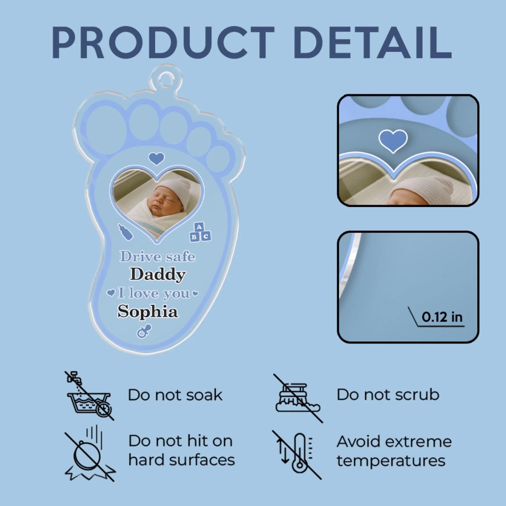 Custom Photo Drive Safe For Your Baby - Family Personalized Custom Car Ornament - Acrylic Custom Shaped - Father's Day, Gift For Dad