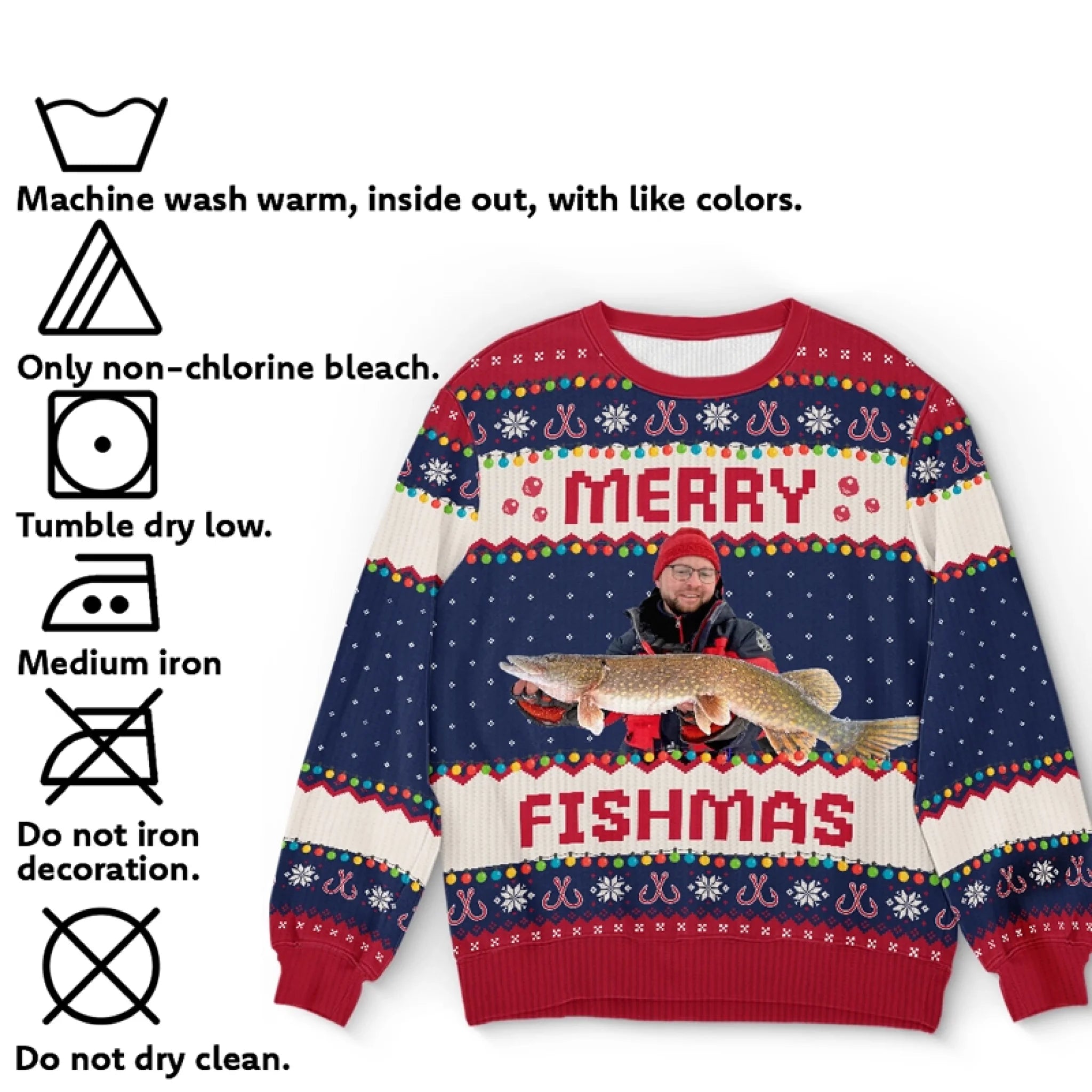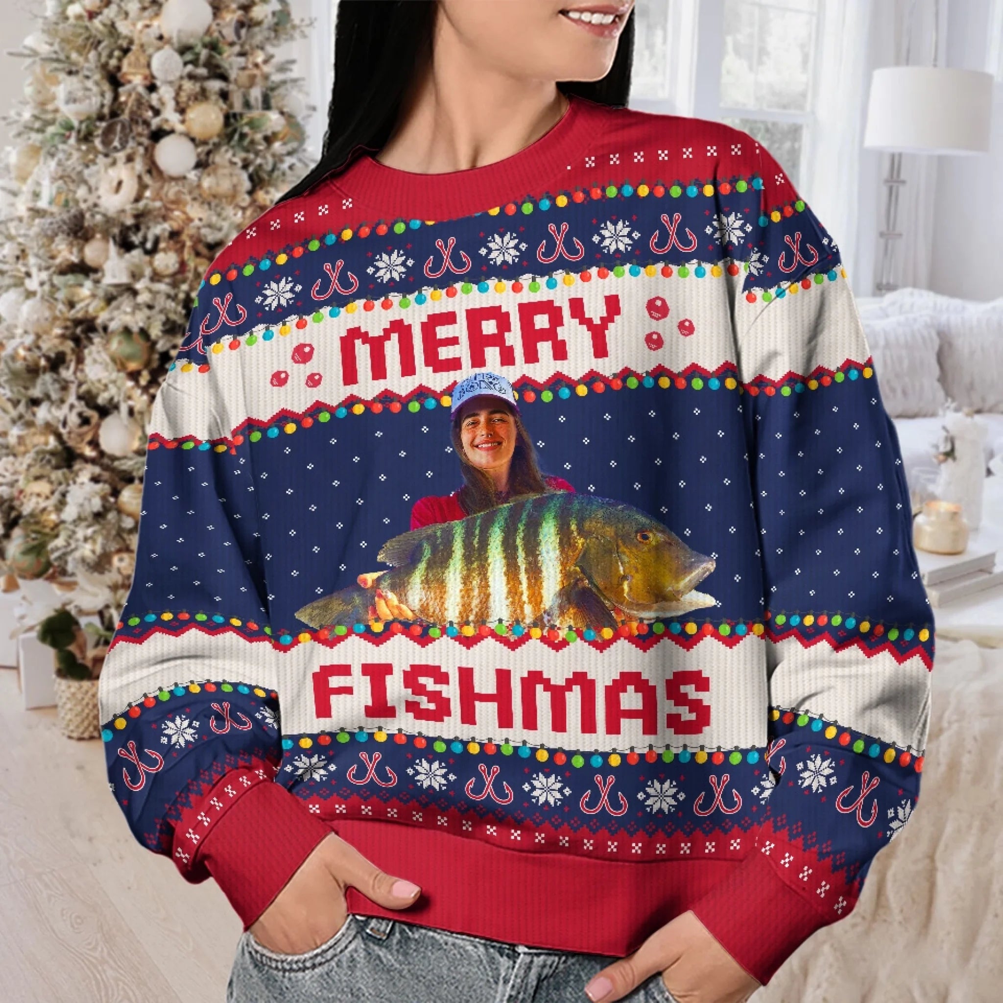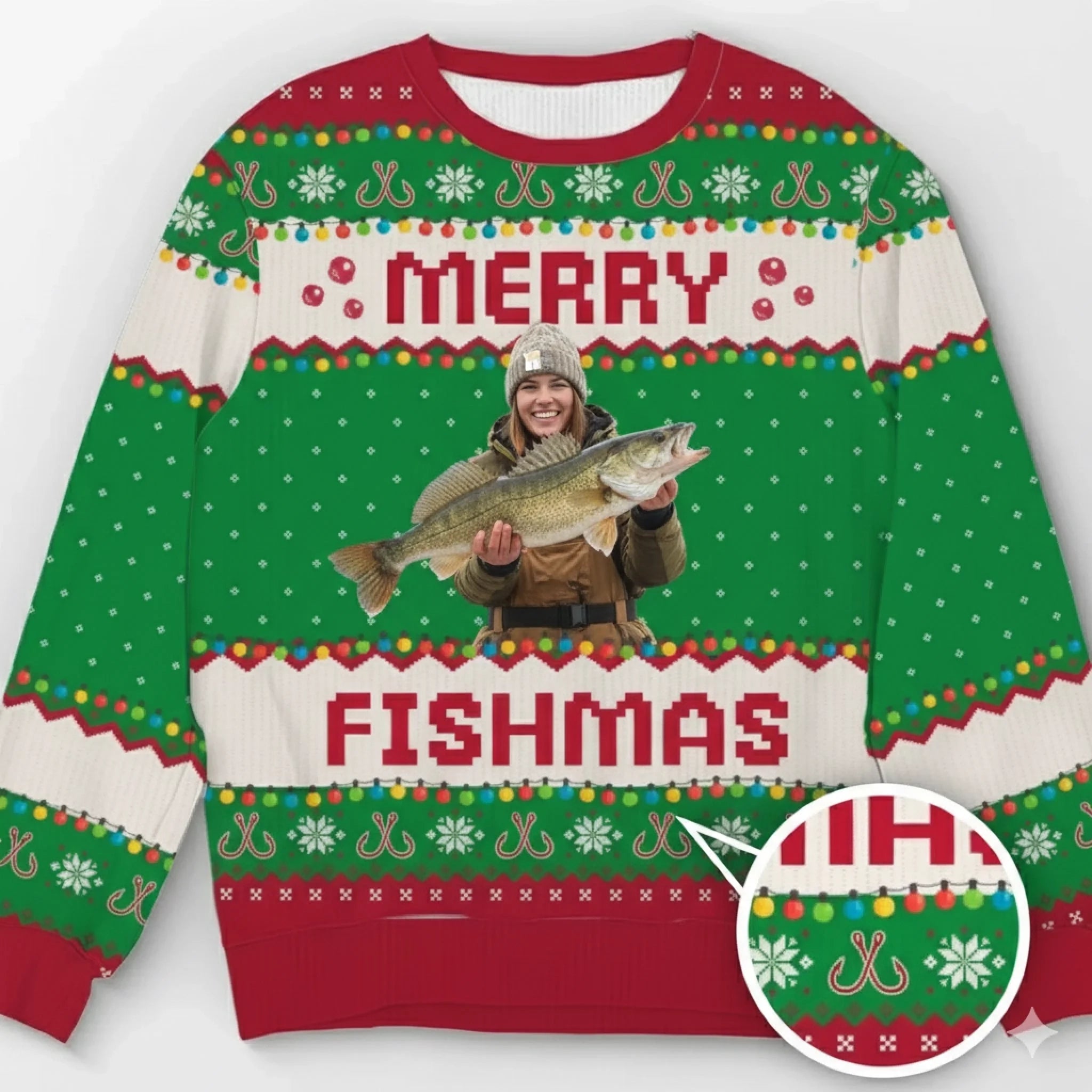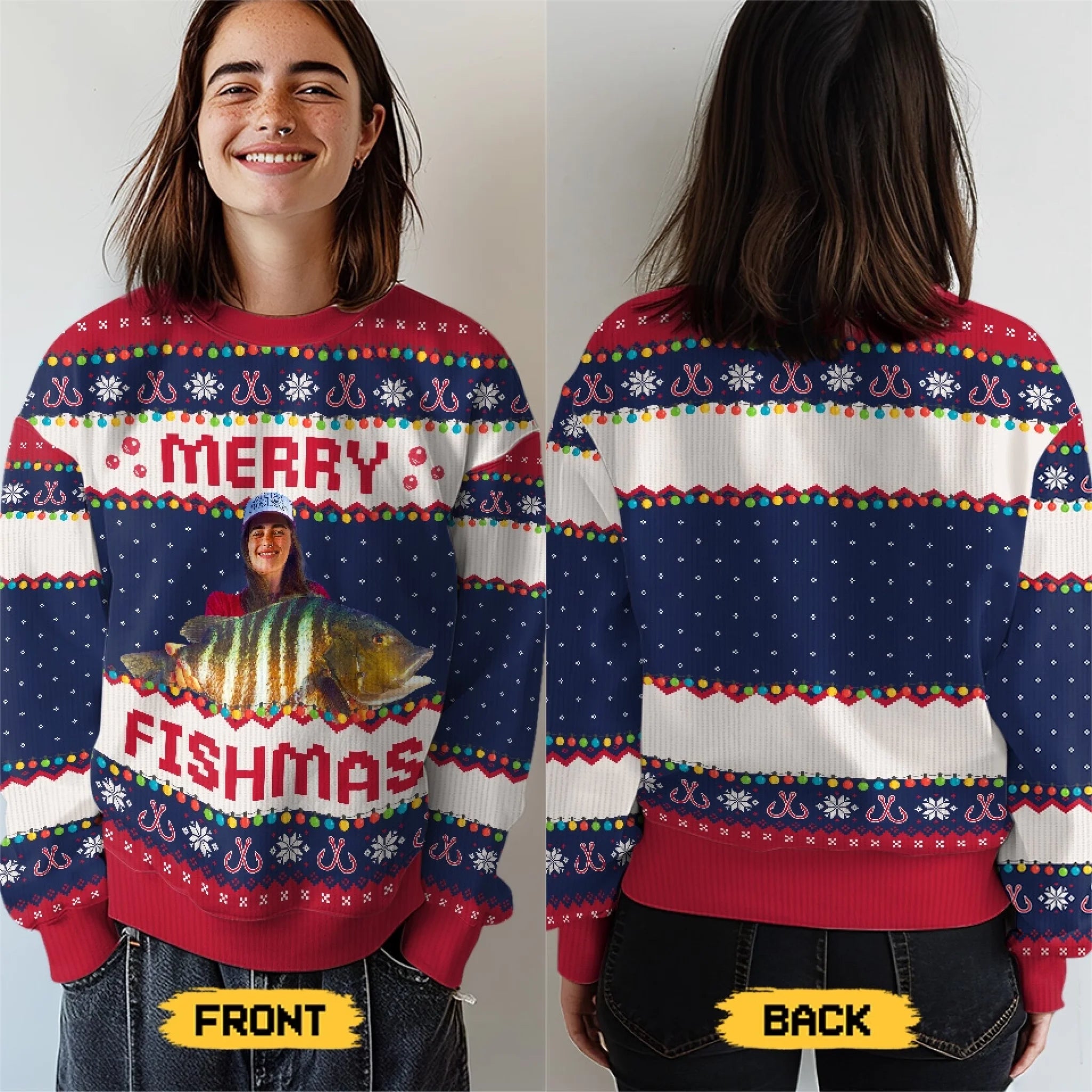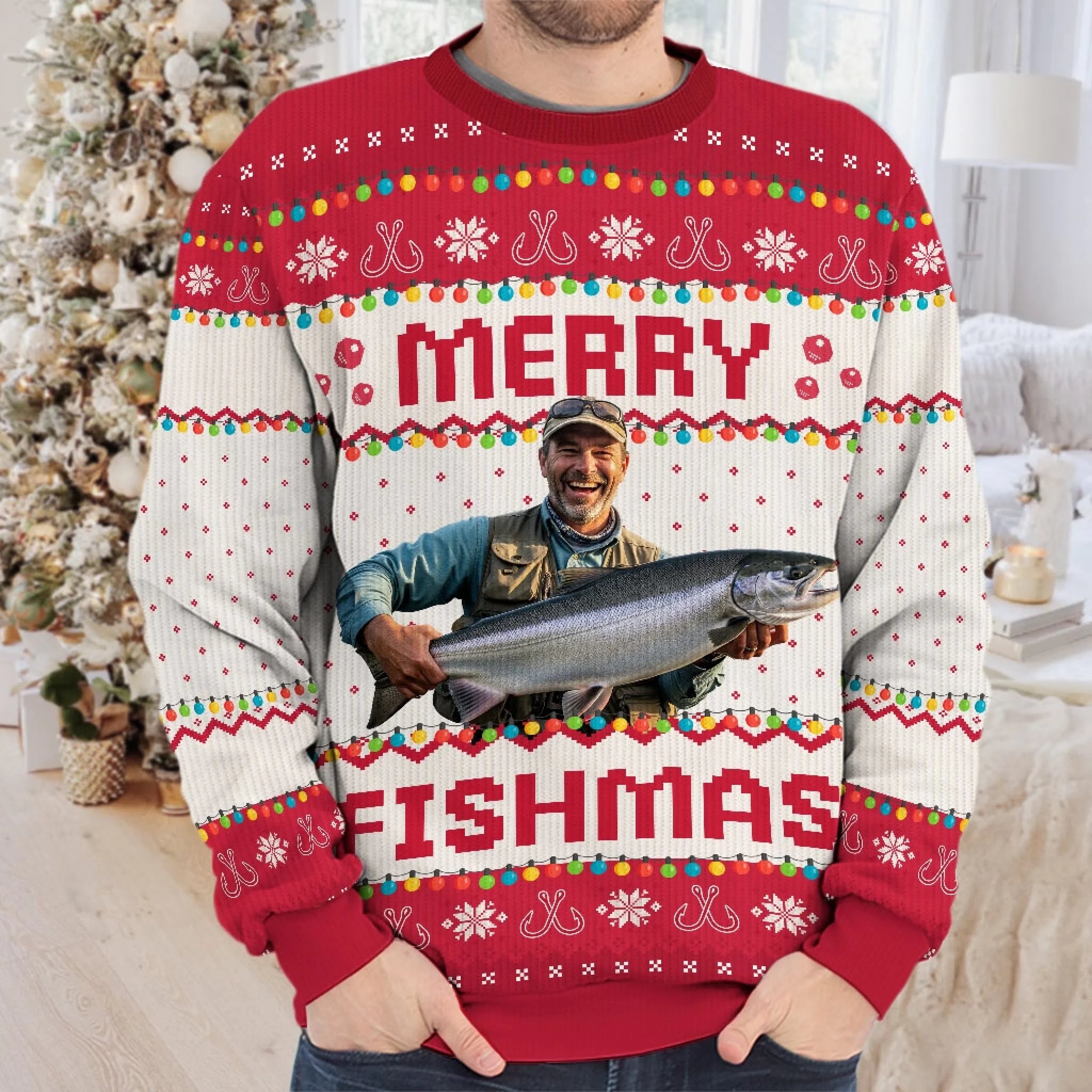 Custom Photo Unisex Ugly Sweatshirt - Personalized Christmas Birthday Gifts For Fisherman