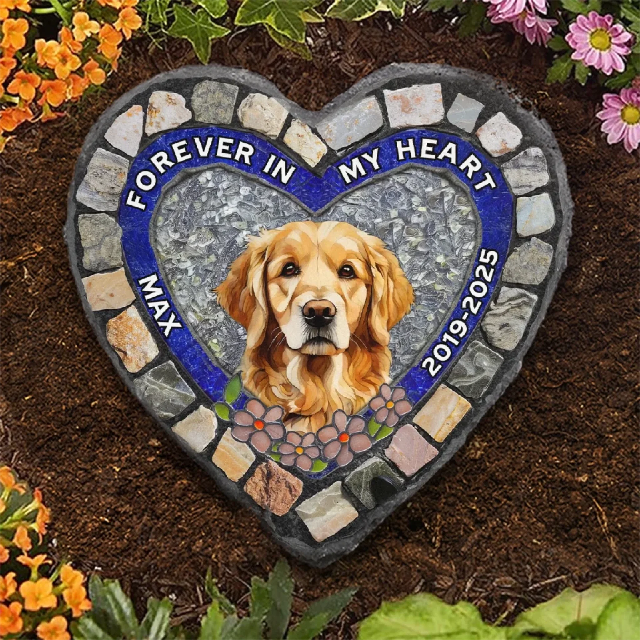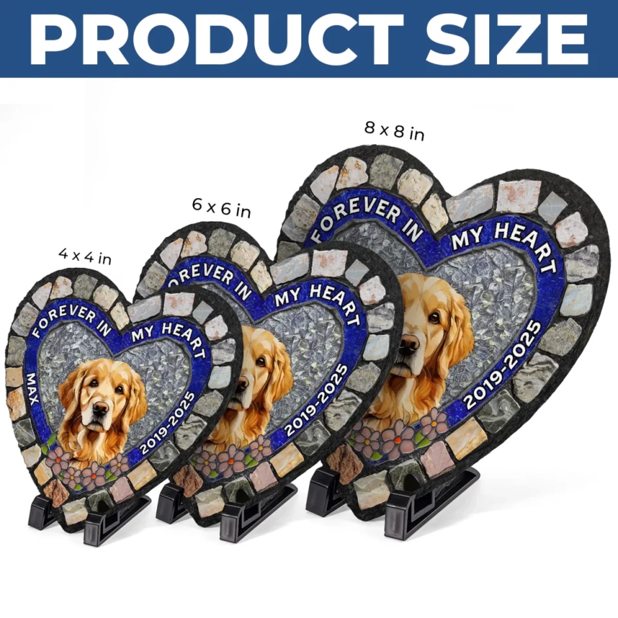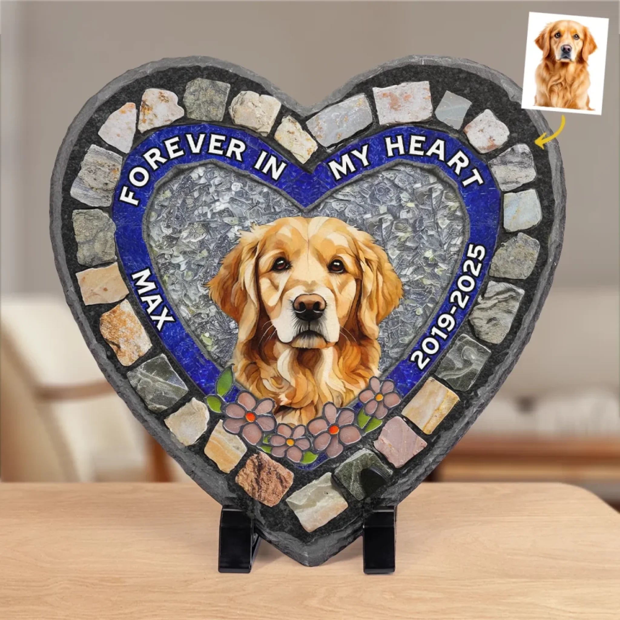 Custom Photo Forever My Furry Angel - Memorial Personalized Custom 3D Mosaic Faux Stained Glass Print Heart Shaped Stone With Stand - Sympathy Gift For Pet Owners, Pet Lovers