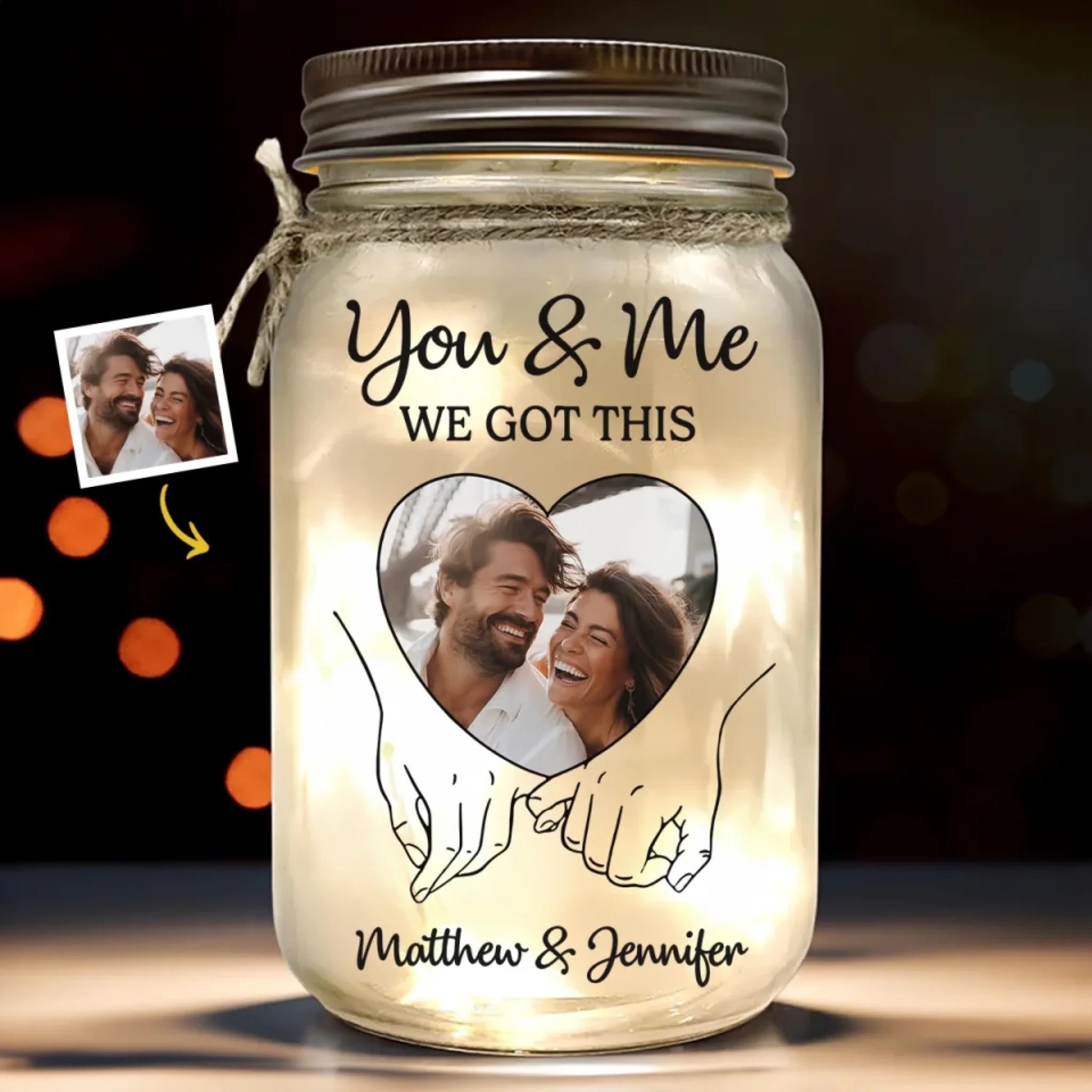 Custom Photo Forever Starts Here - Couple Personalized Custom Mason Jar Light - Gift For Husband Wife, Anniversary