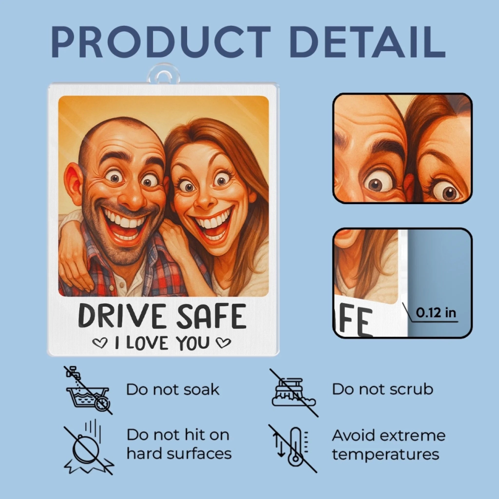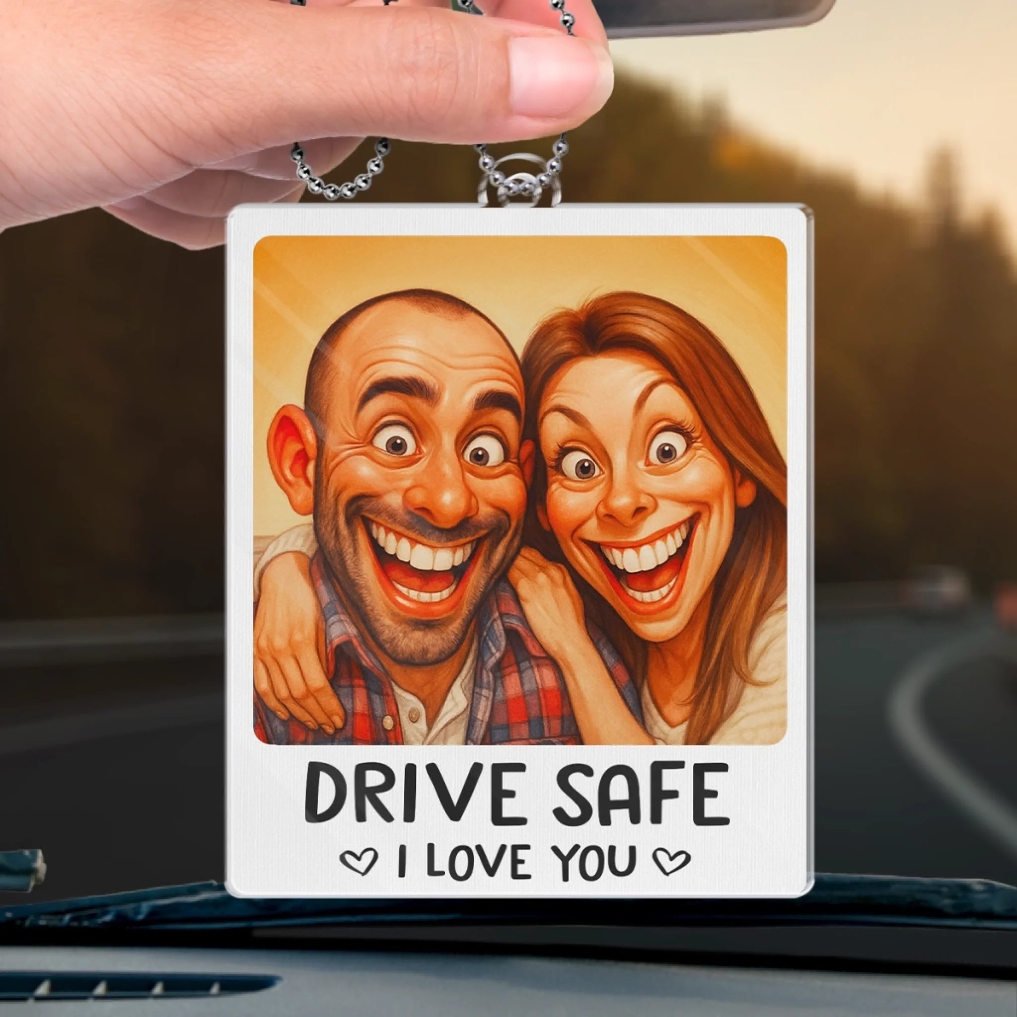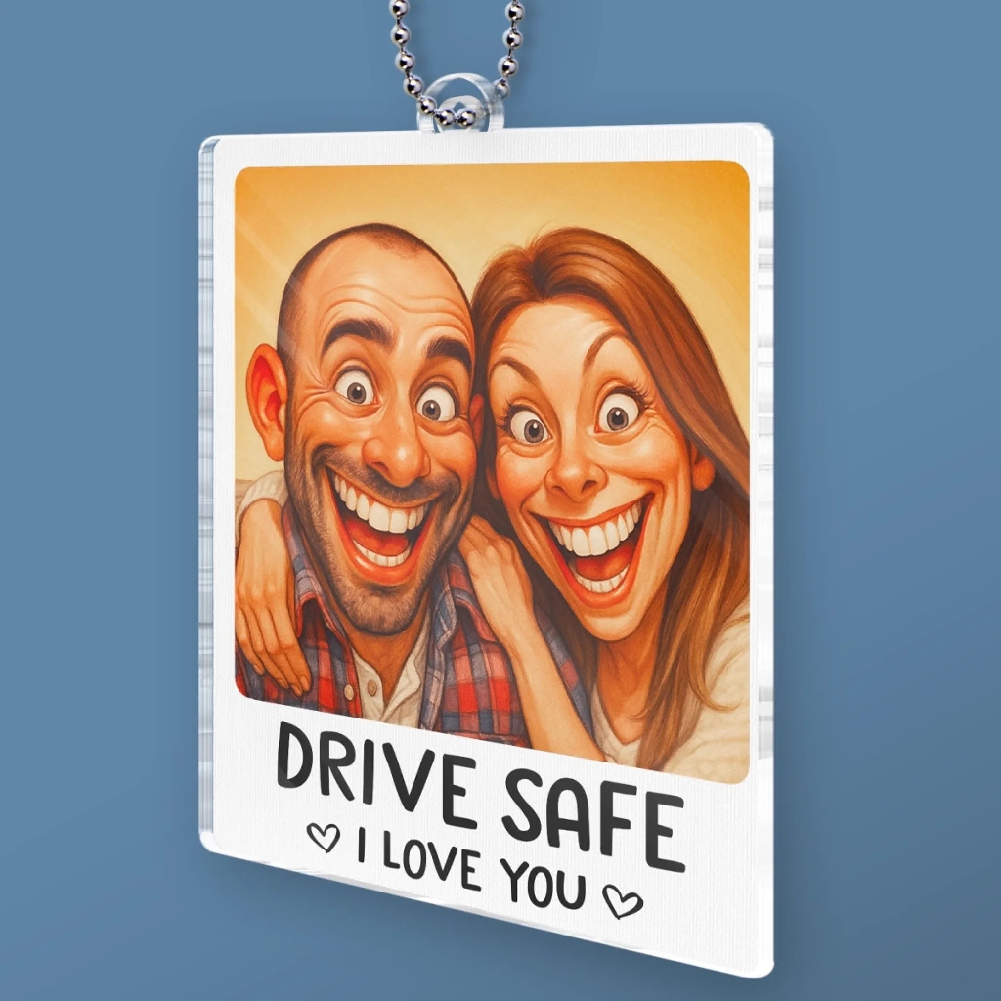 Custom Photo Funny Caricature Acrylic Car Ornament - Personalized Anniversary Wedding Gifts For Husband And Wife, Him And Her - Safe Driver, Happy Lover