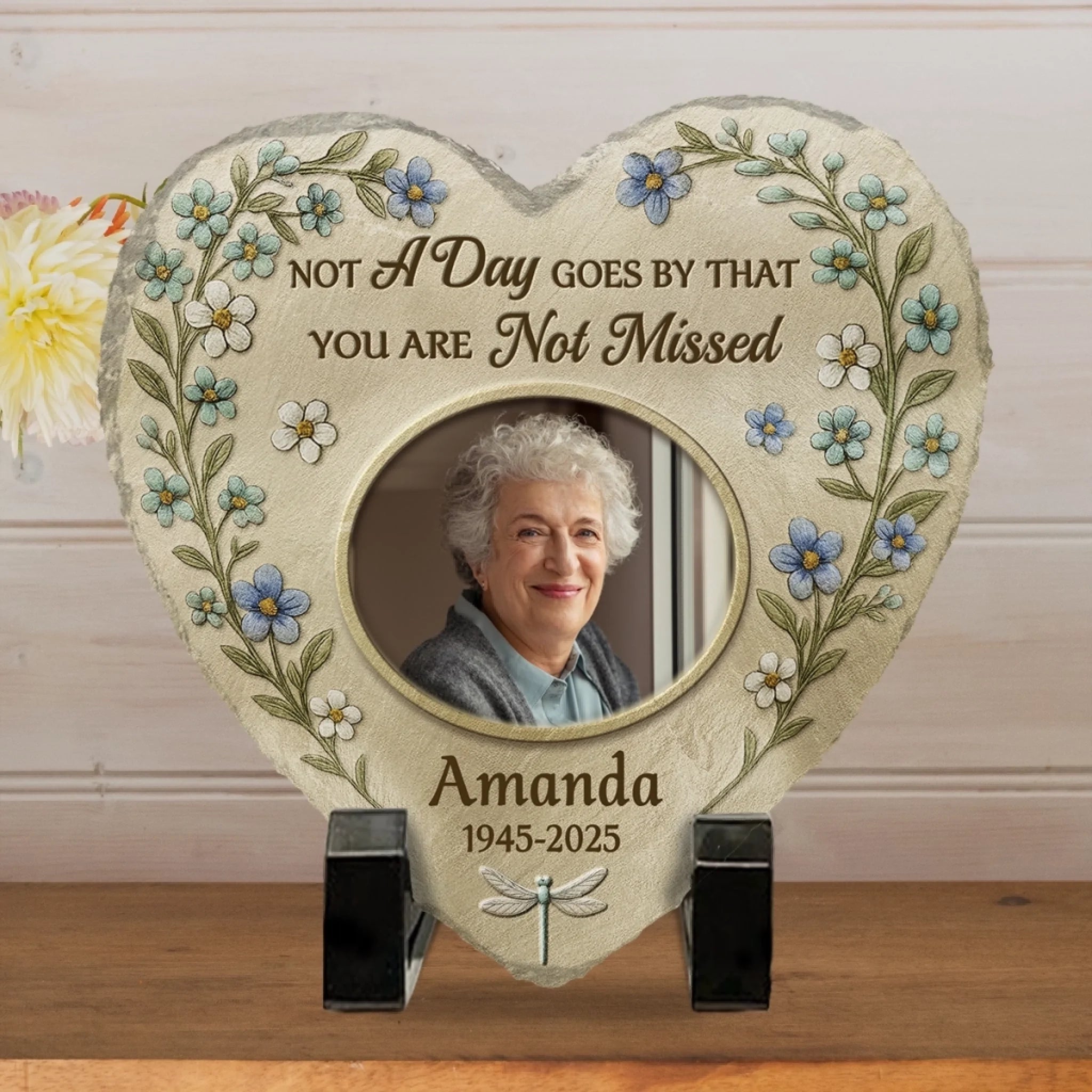 Custom Photo Heart Shaped Memorial Stone - Personalized Memorial Sympathy Gifts For Loss Of Mom, Dad - Memories Last Forever