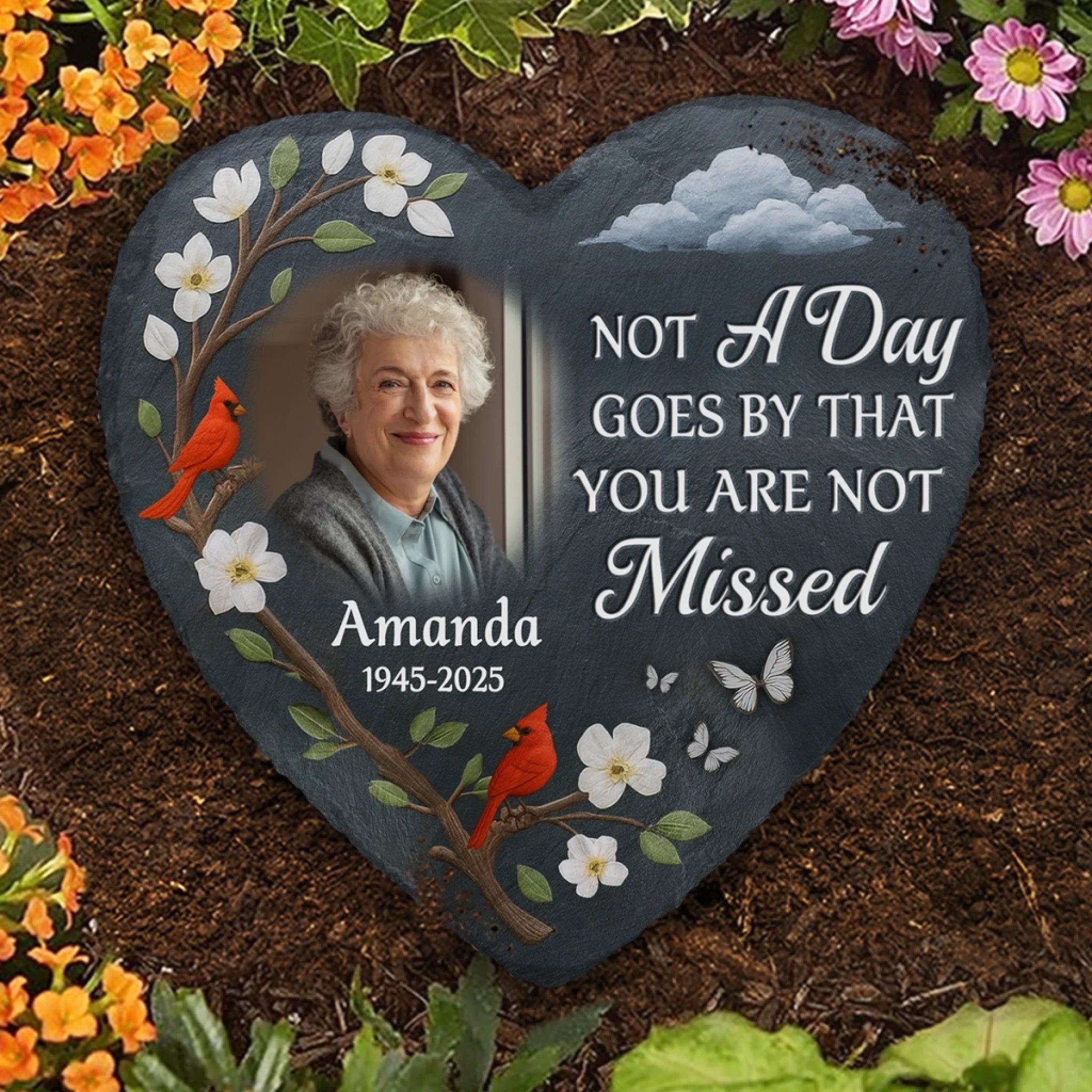 Custom Photo Heart Shaped Memorial Stone - Personalized Memorial Sympathy Gifts For Loss Of Mom, Dad - Still Loving, Still Missing