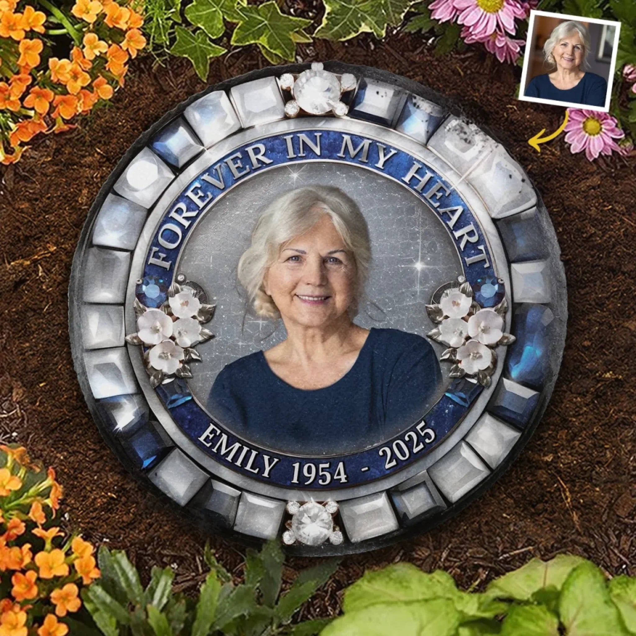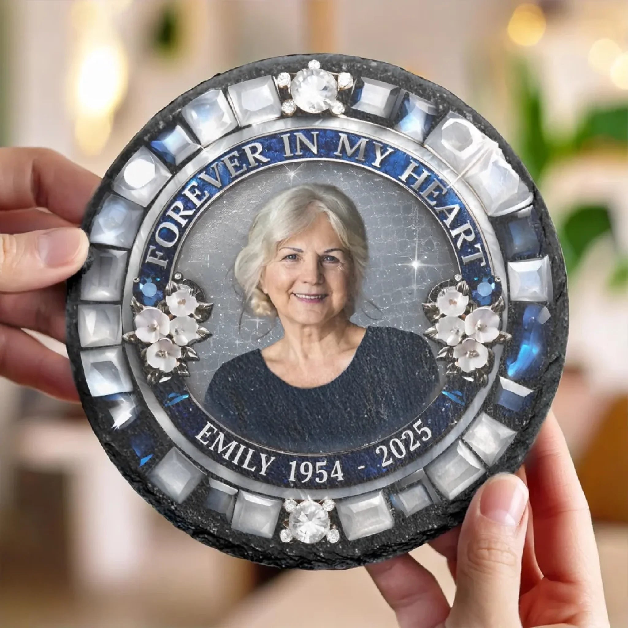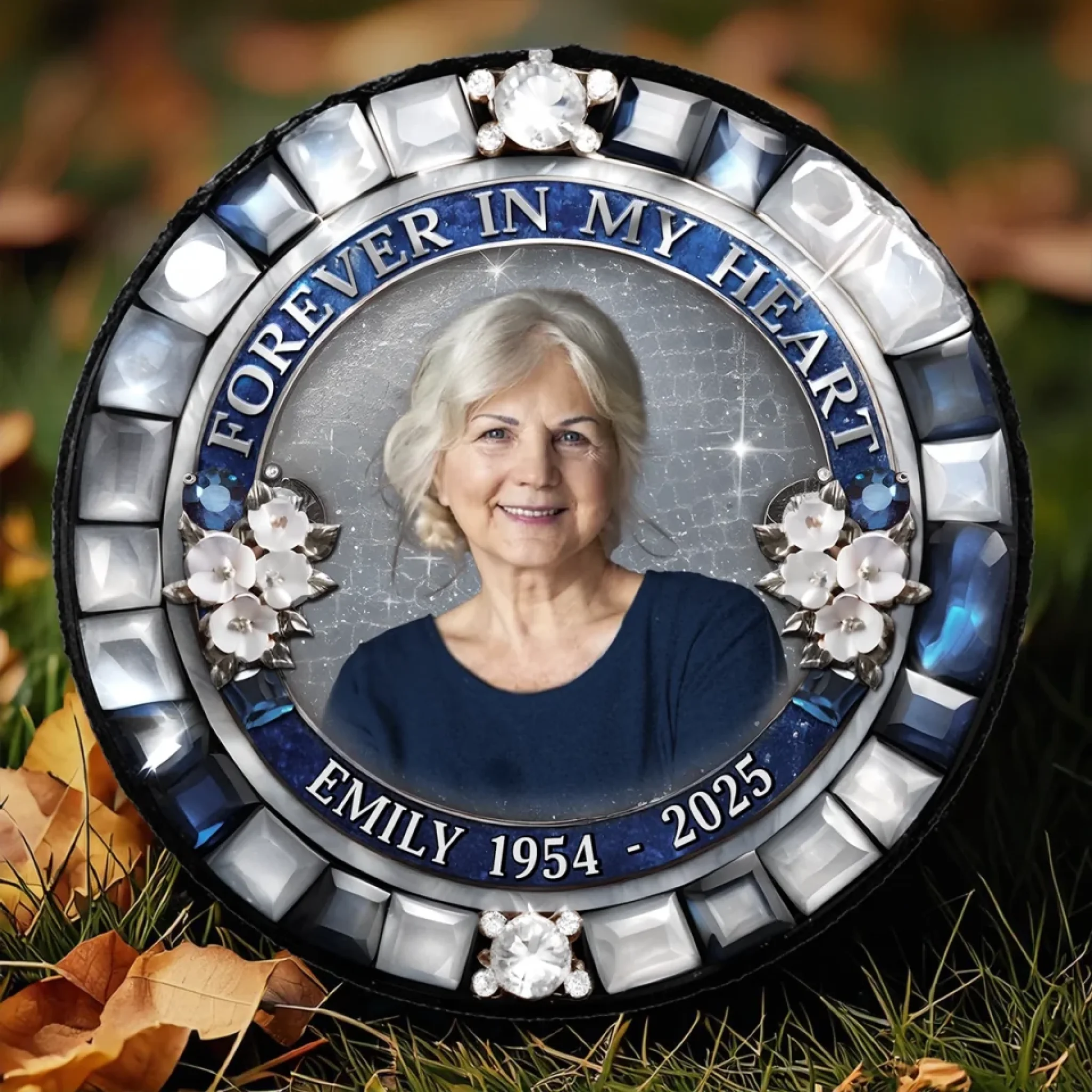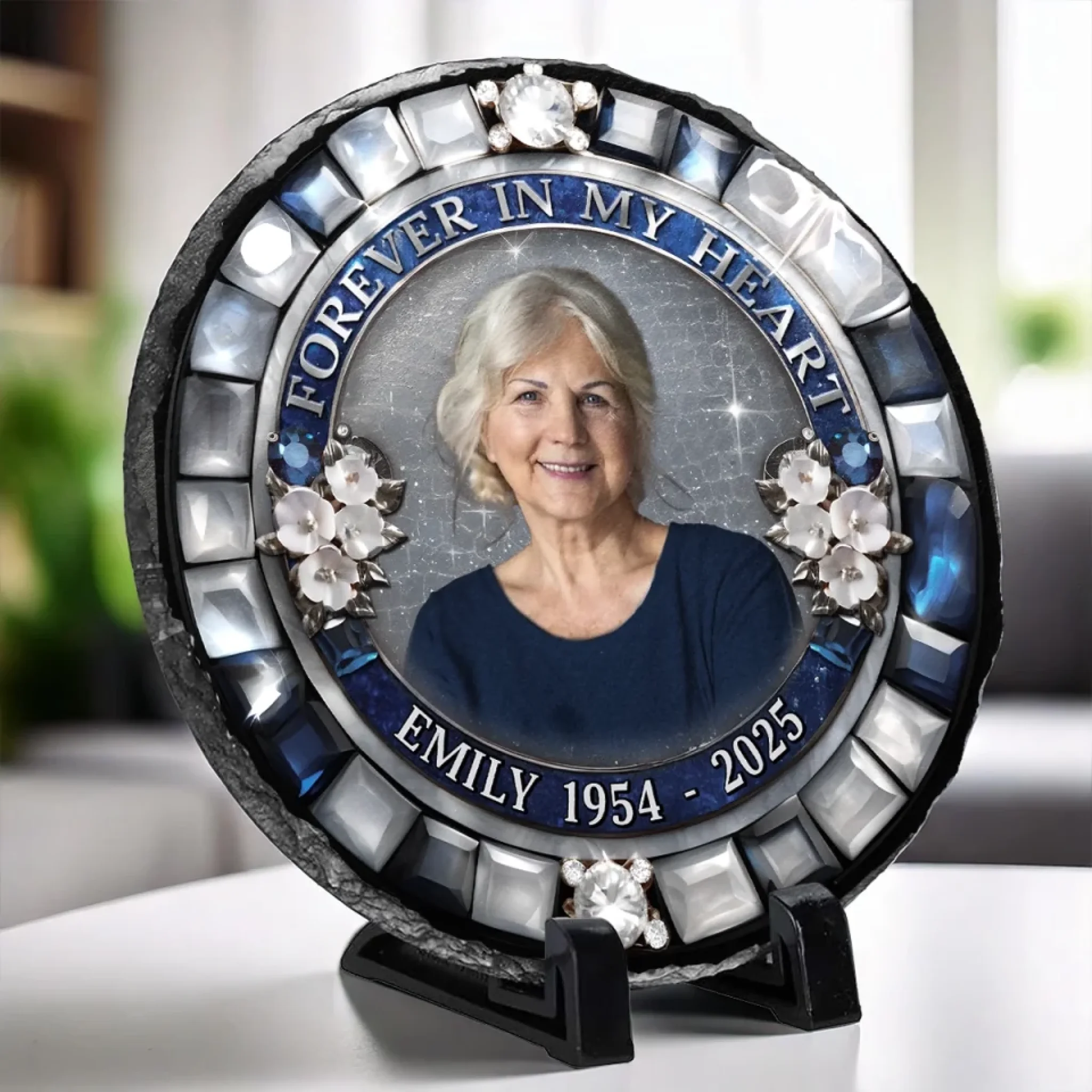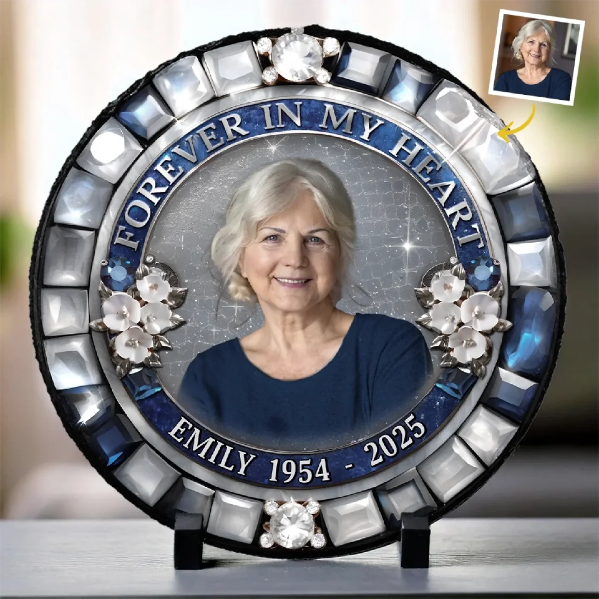 Custom Photo Heaven Gained What We Lost - Memorial Personalized Custom Round Shaped Stone With Stand - Sympathy Gift For Family Members