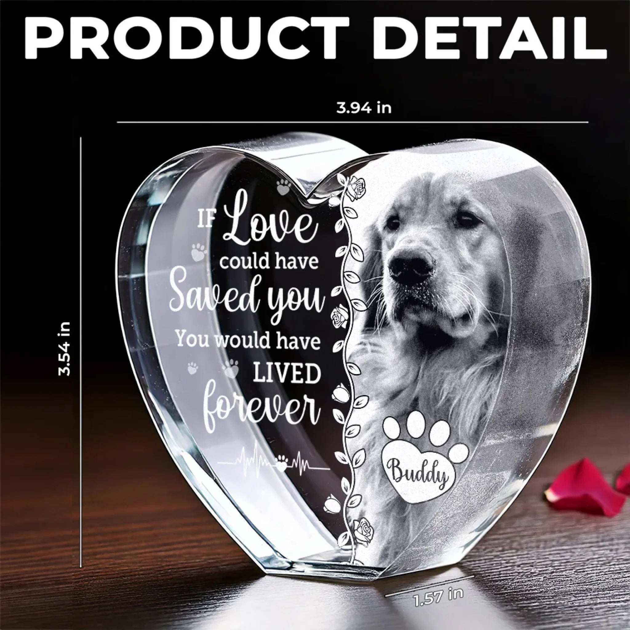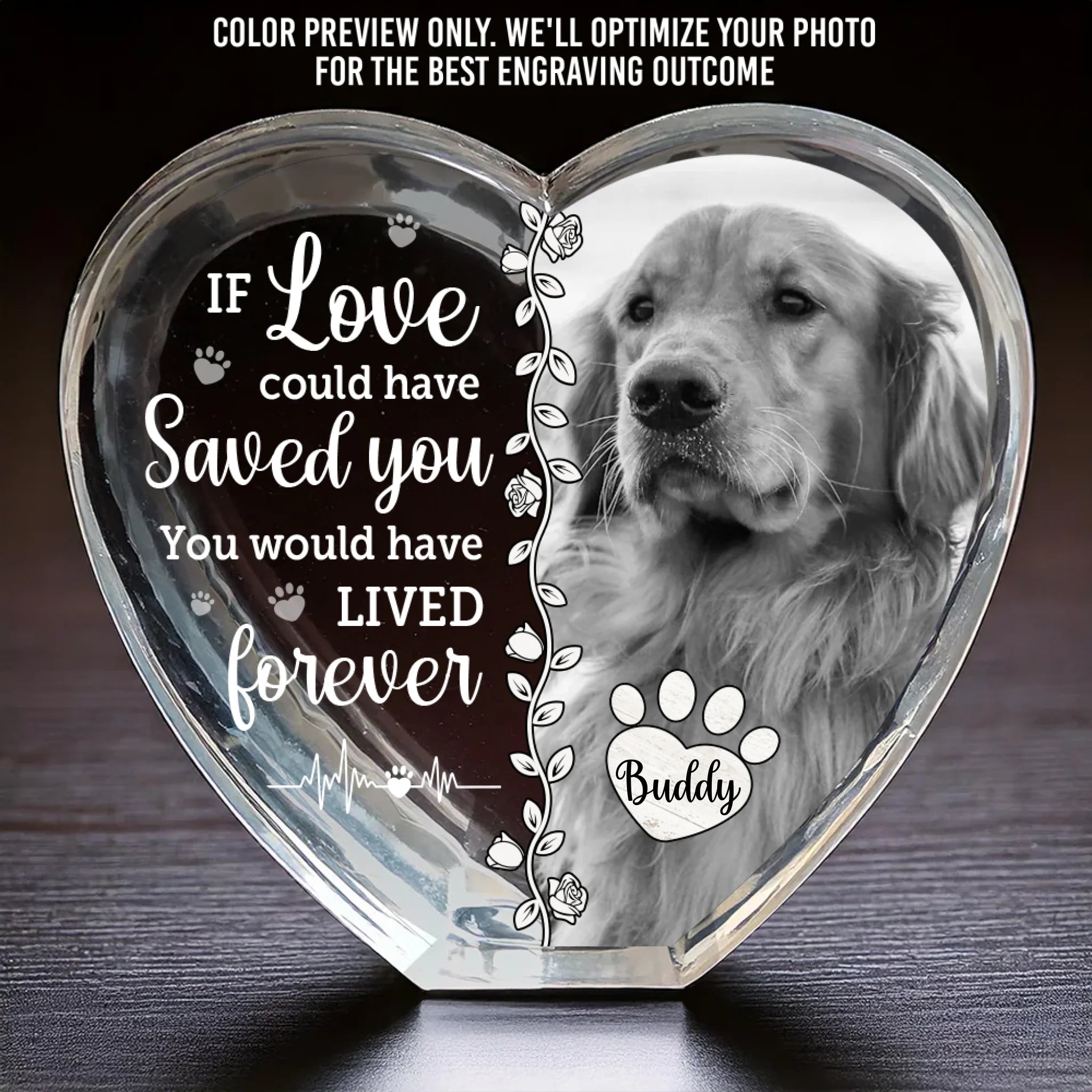 Custom Photo If Love Could Have Saved You, You Would Have Lived Forever - Memorial Personalized Custom Engraved 3D Crystal Heart Shaped - Sympathy Gift For Pet Owners, Pet Lovers