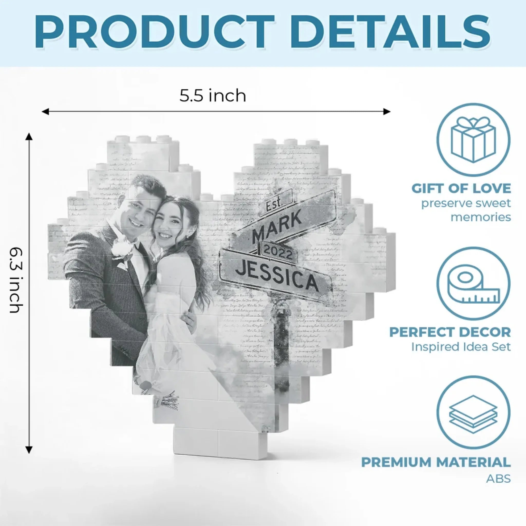 Custom Photo Loved You Then, Love You Still - Couple Personalized Custom Heart Shaped Building Brick Blocks - Gift For Husband Wife, Anniversary