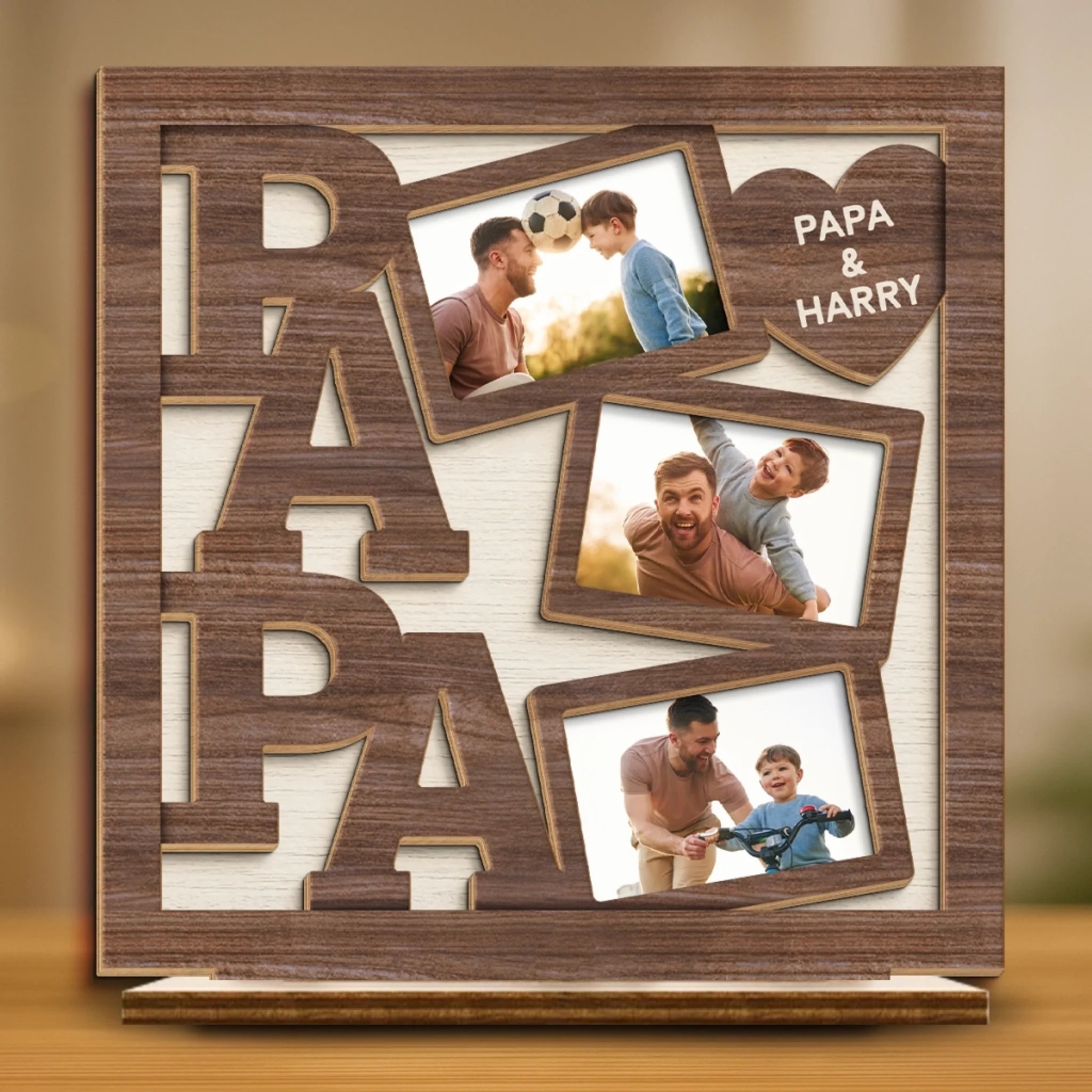 Custom Photo My Favorite Moments Are With Papa - Family Personalized Custom Shaped 2-Layered Wooden Plaque With Flat Stand - Father's Day, Gift For Dad