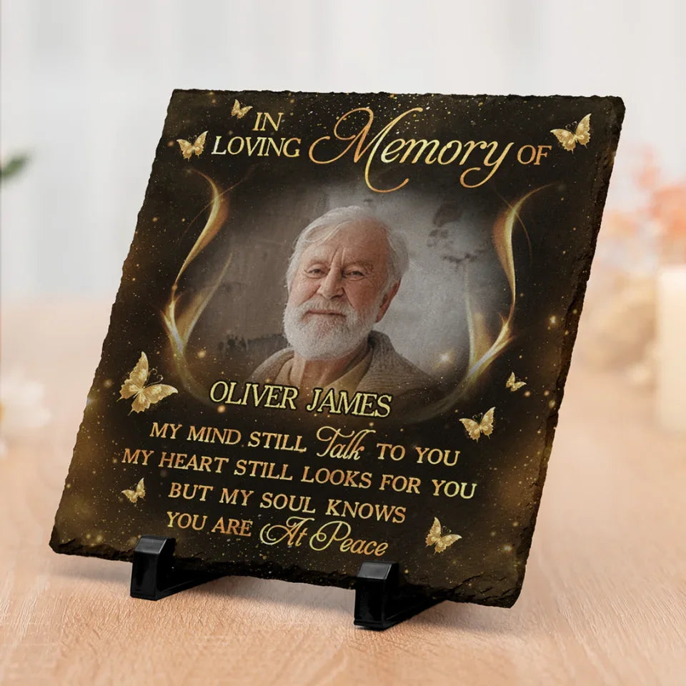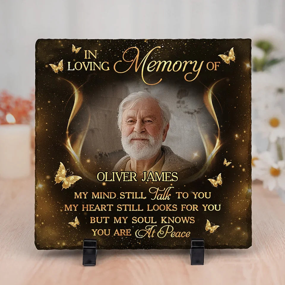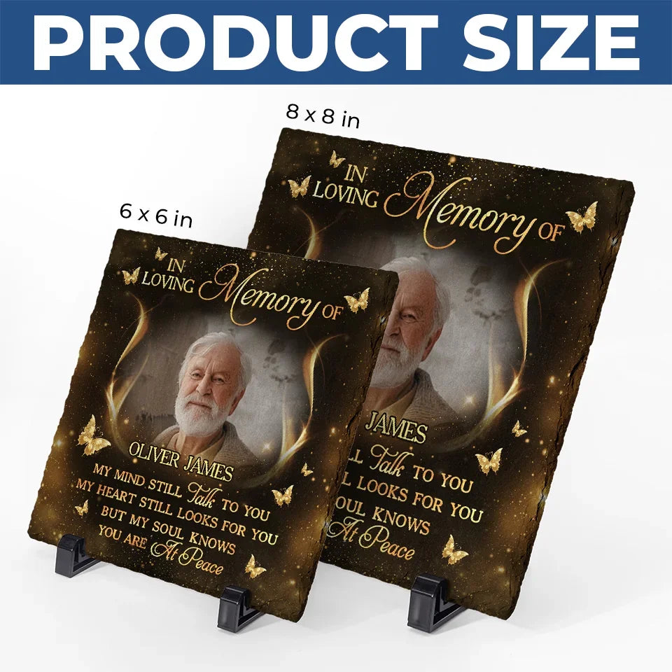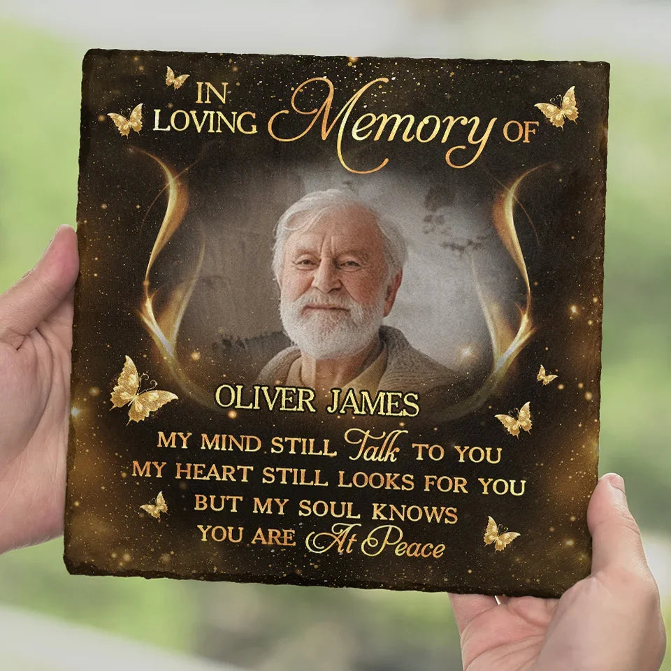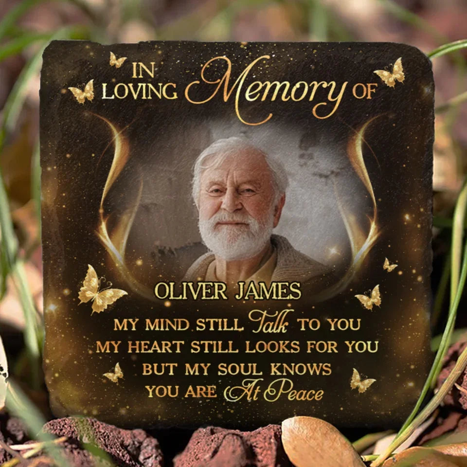 Custom Photo My Mind Talks To You, My Heart Looks For You - Memorial Personalized Custom Square Shaped Memorial Stone - Sympathy Gift For Family Members