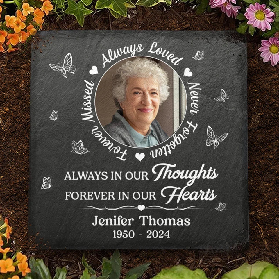Memorial garden stone is the perfect keepsake to honor the memory of your loved one. This stone sits flat in a flower bed, garden or walkway, creating a special memorial.