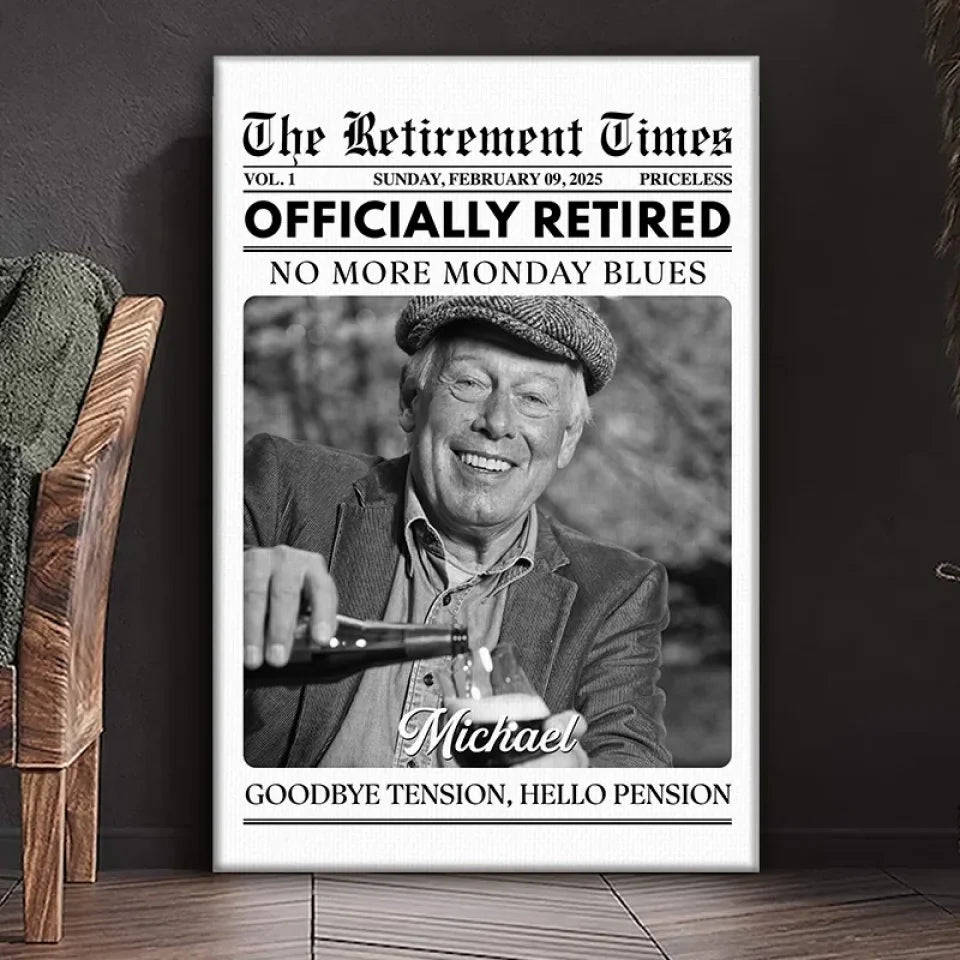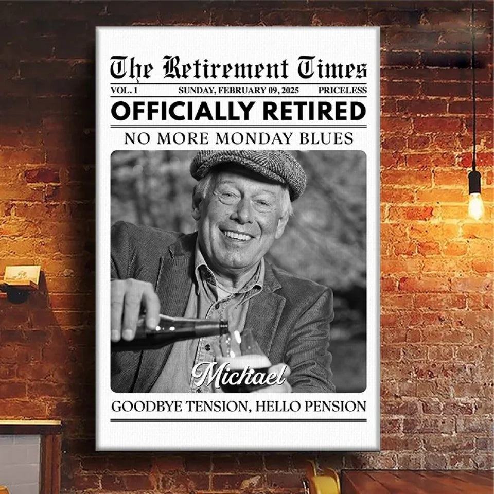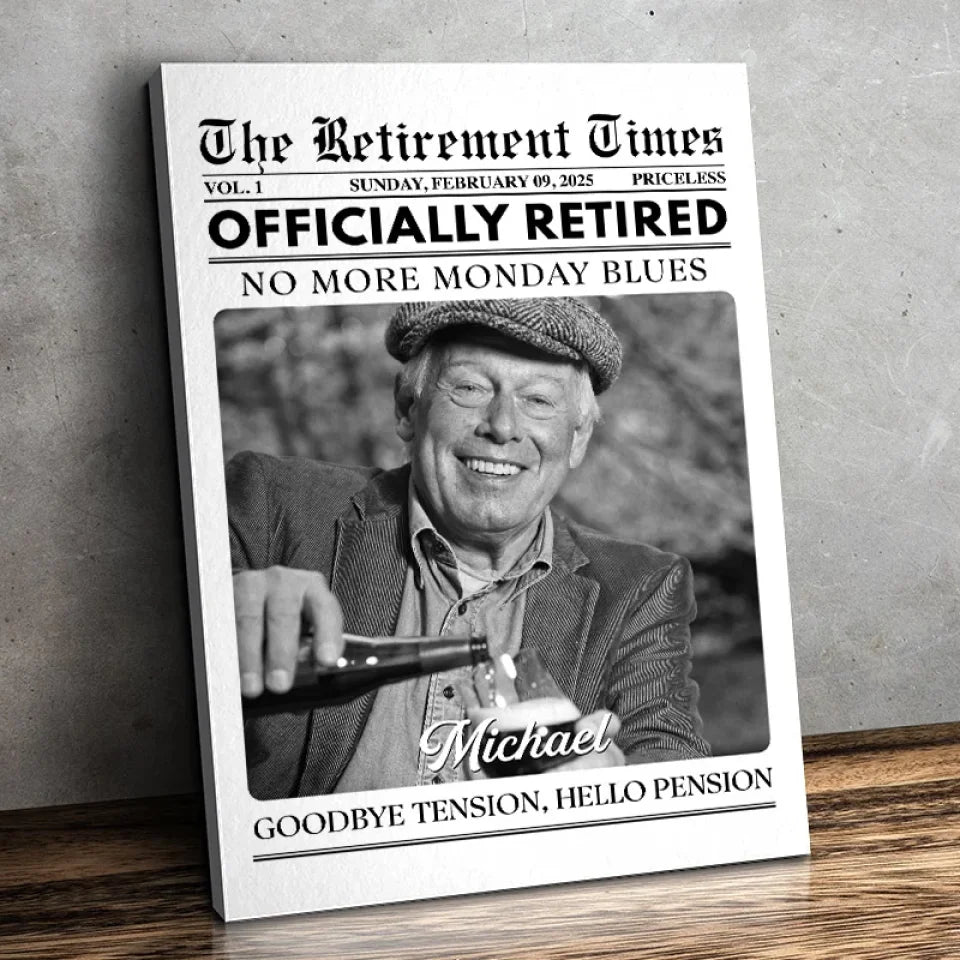 Custom Photo Officially Retired - Personalized Custom Vertical Canvas - Appreciation, Retirement Gift For Coworkers, Work Friends, Colleagues, Family Members
