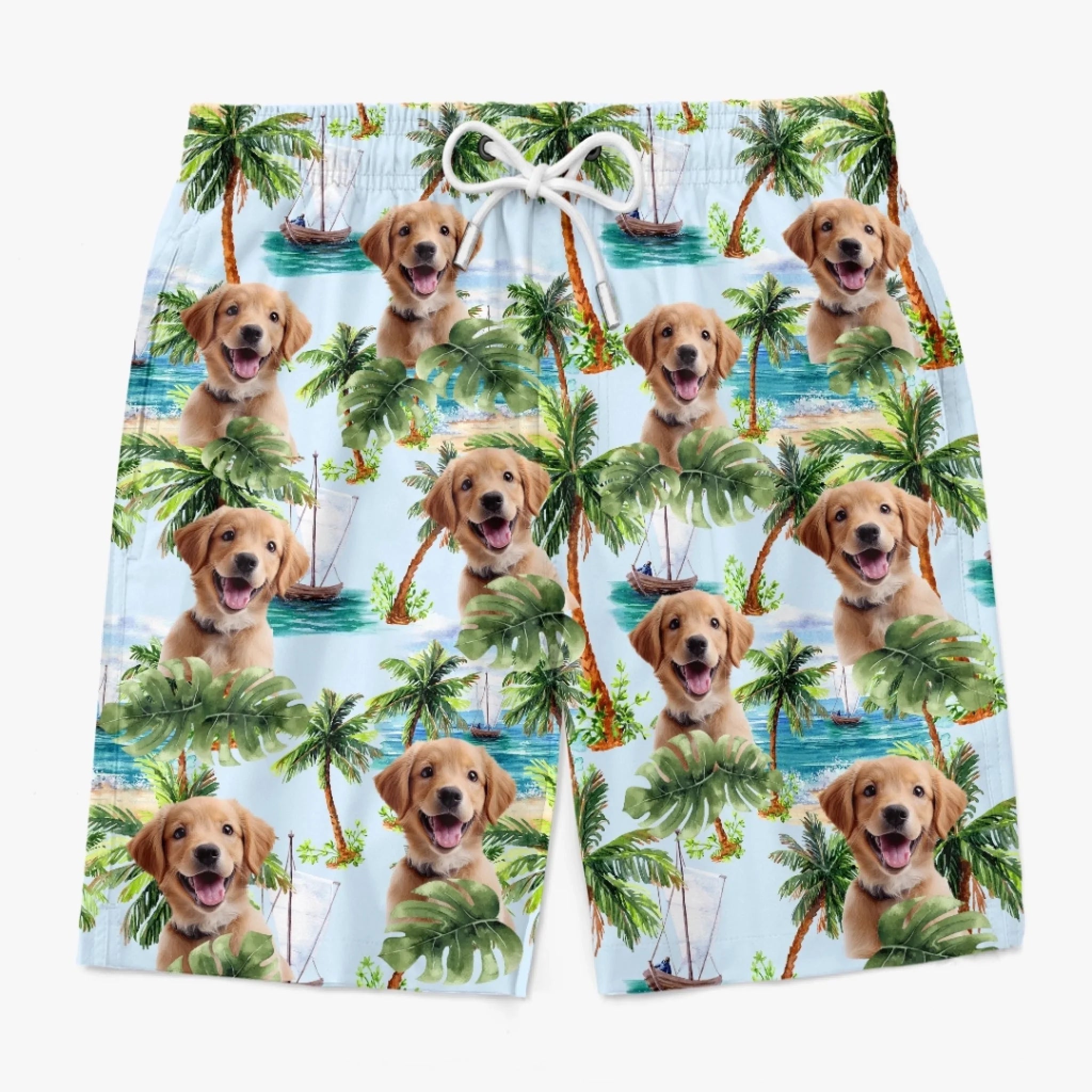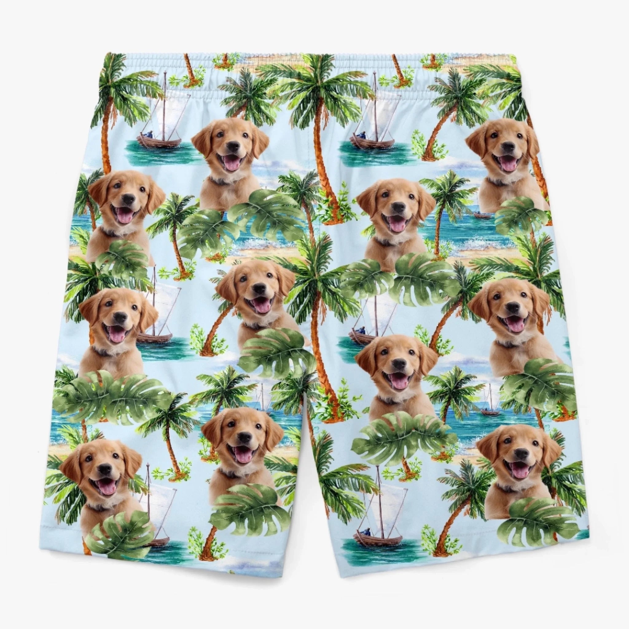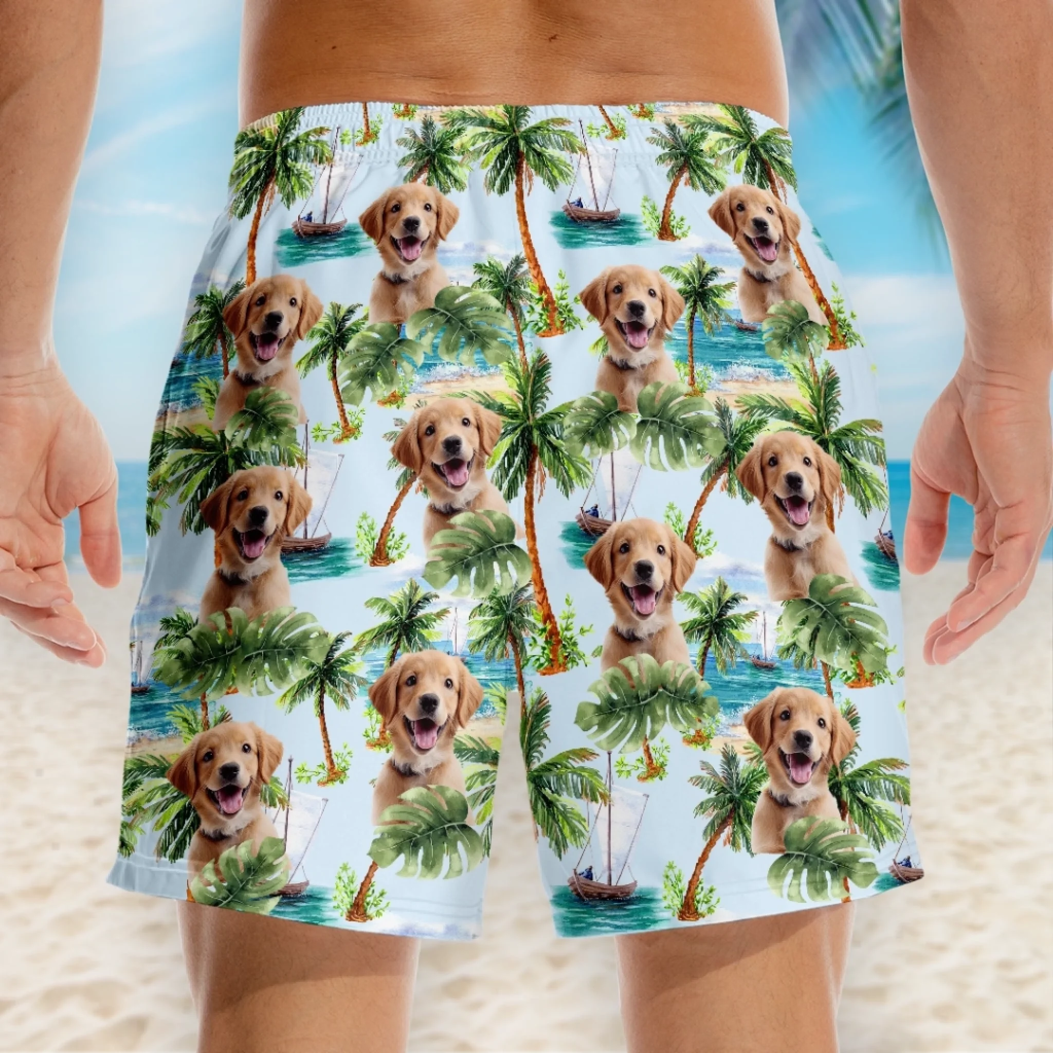 Custom Photo Paws And Paradise - Dog & Cat Personalized Custom Tropical Hawaiian Aloha Men Beach Shorts - Summer Vacation Gift For Pet Owners, Pet Lovers