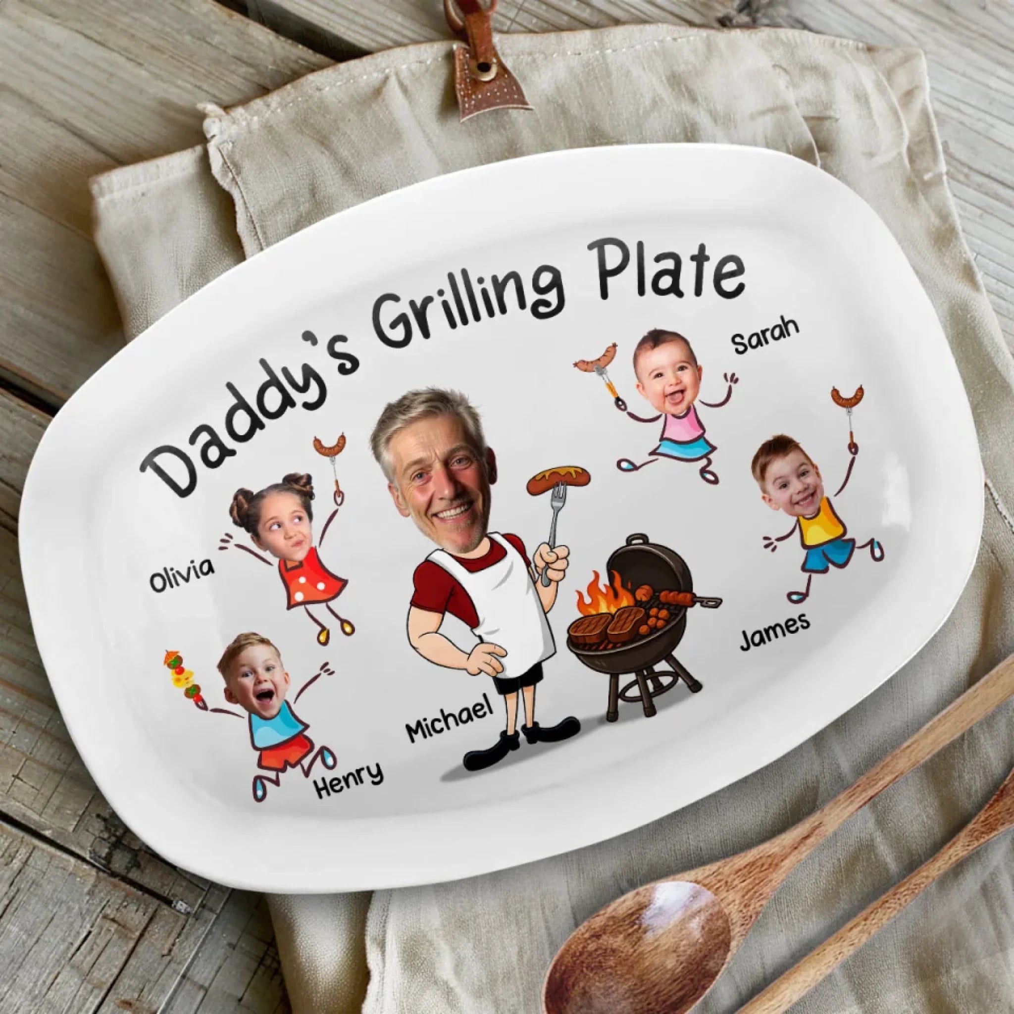 Custom Photo Serving Up Love, One BBQ At A Time - Family Personalized Custom Platter - Father's Day, Gift For Dad, Grandpa