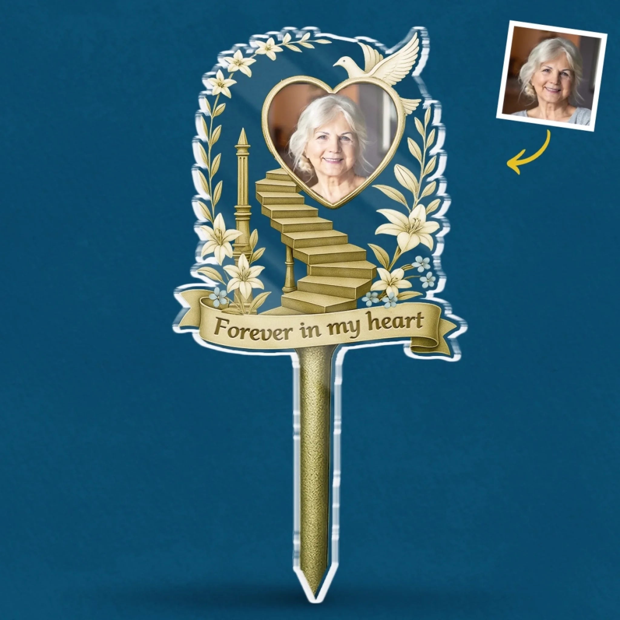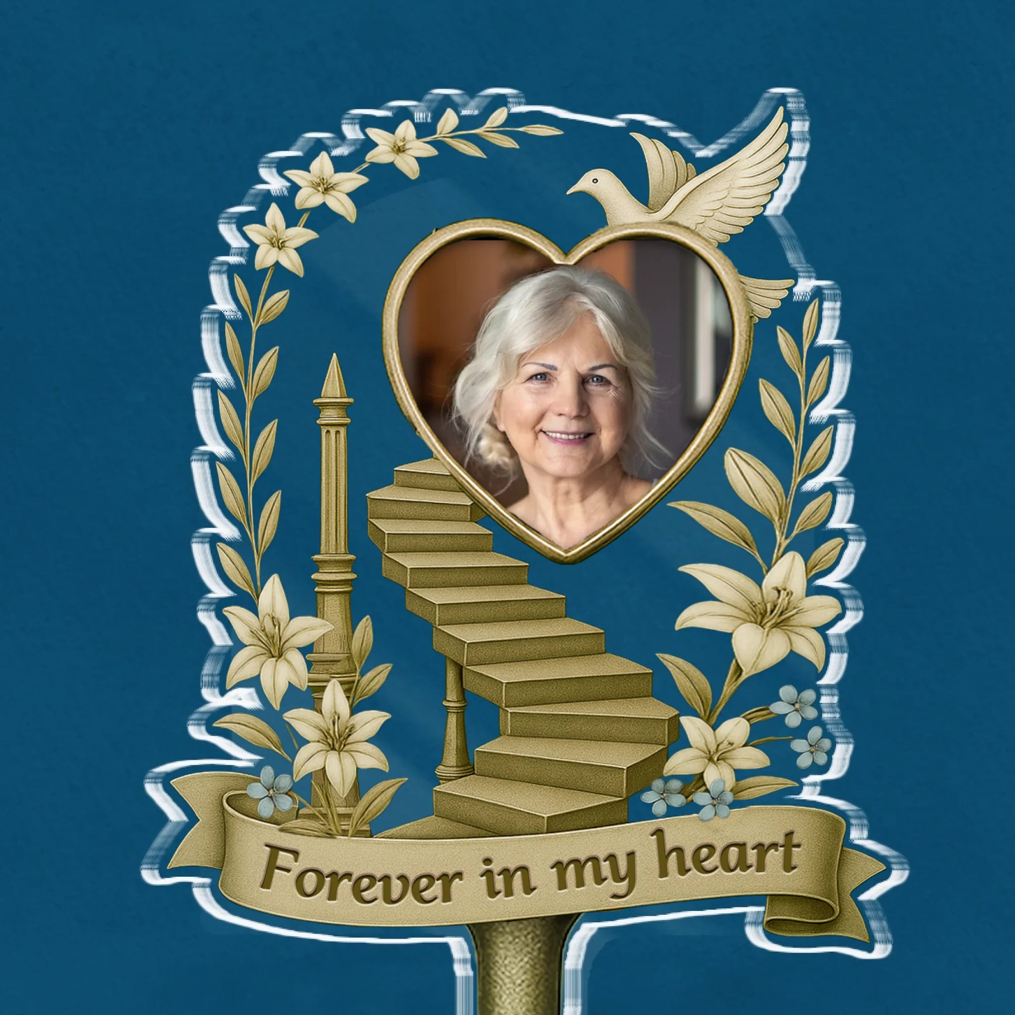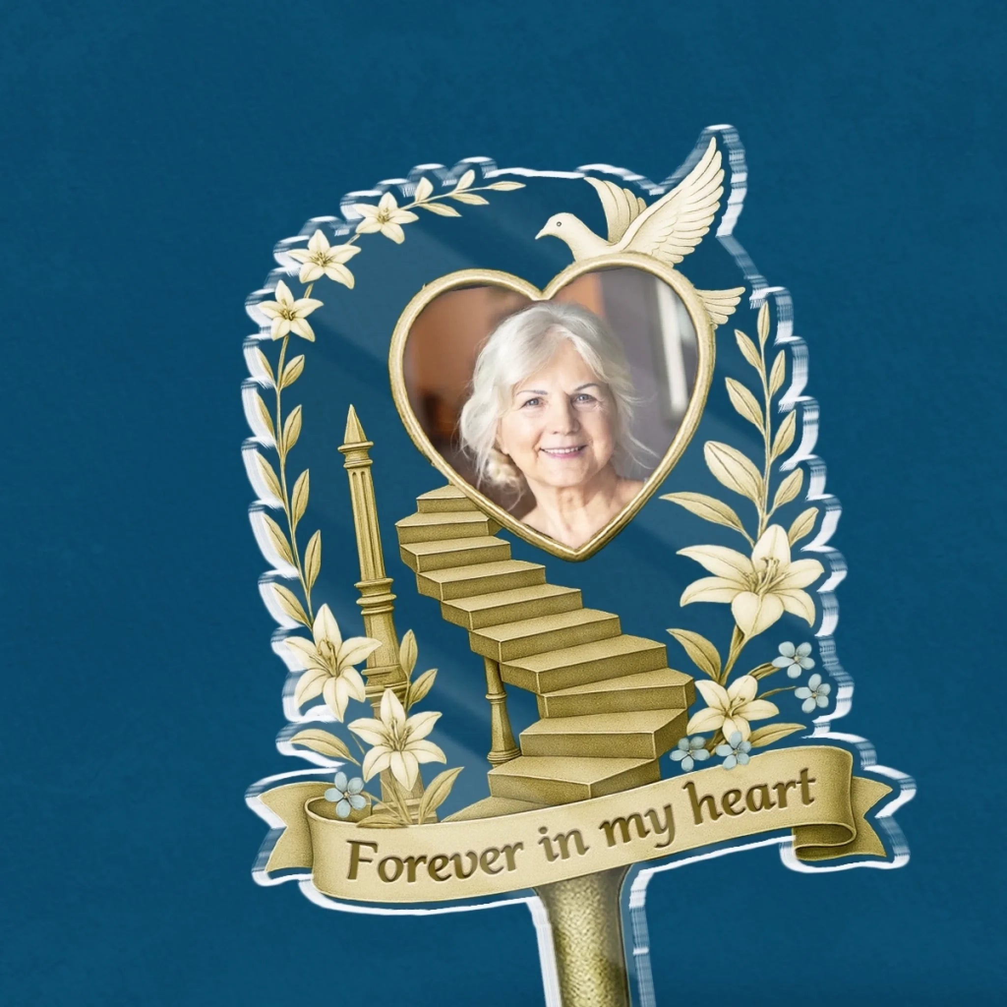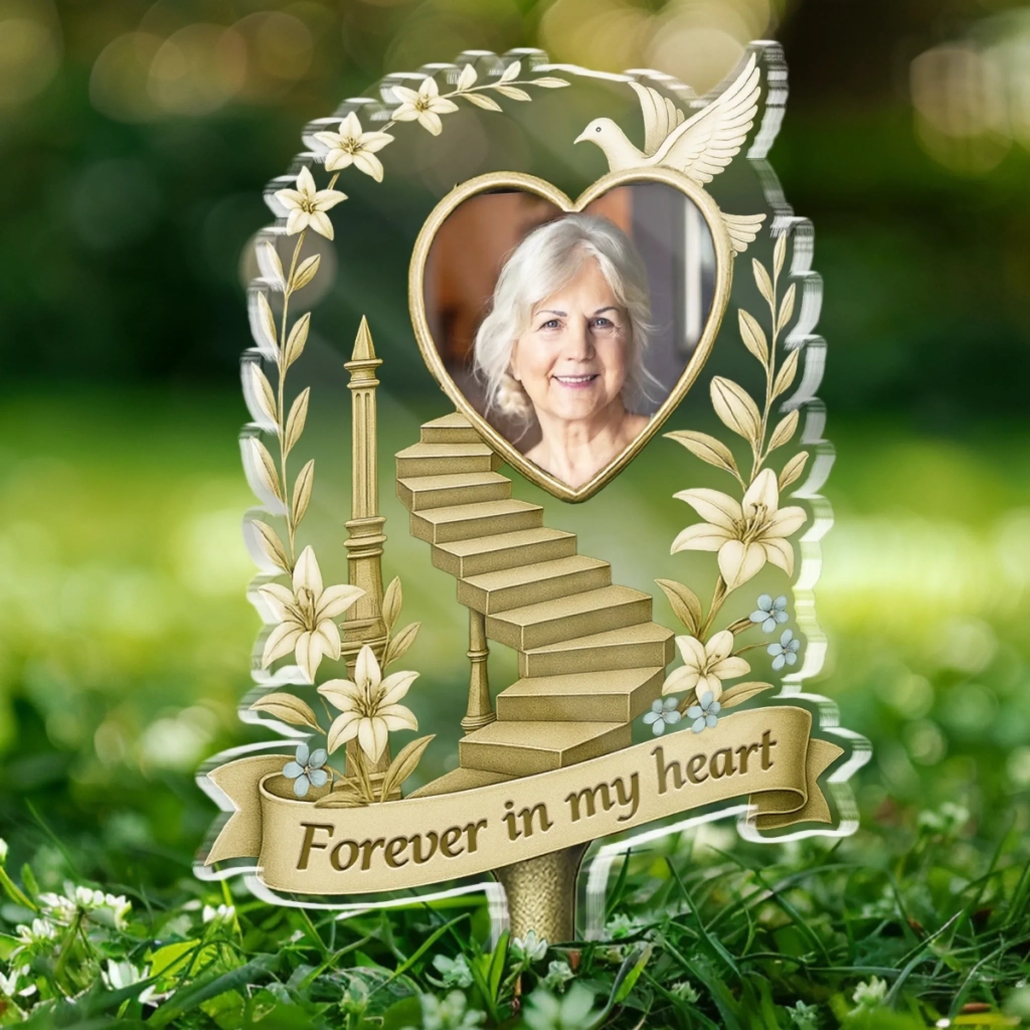 A beautiful memorial acrylic stake for garden decoration, in loving memory of those who are no longer with us. These memorial gifts can be used as a grave marker, memorial plaque or displayed amongst plants.