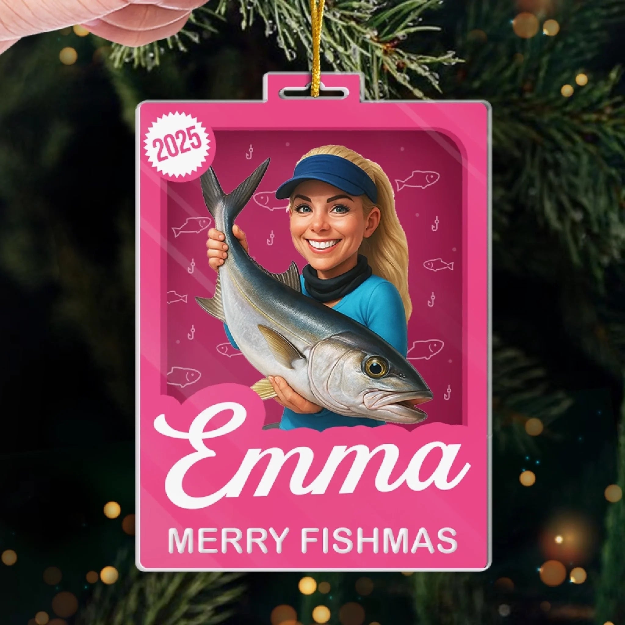 Custom Photo Toy Box Acrylic Ornament - Personalized Christmas Birthday Fishing Gifts For Fisherman - Merry Fishmas, Ya Filthy Angler