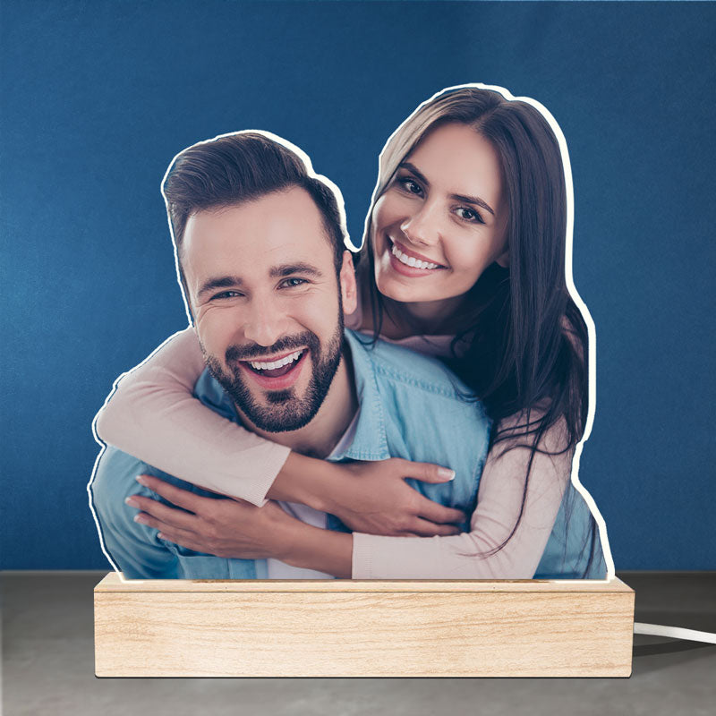 Custom Photo Two Hearts, One Love Story - Couple Personalized Custom Shaped 3D LED Light - Upload Photo Gift For Husband Wife, Anniversary
