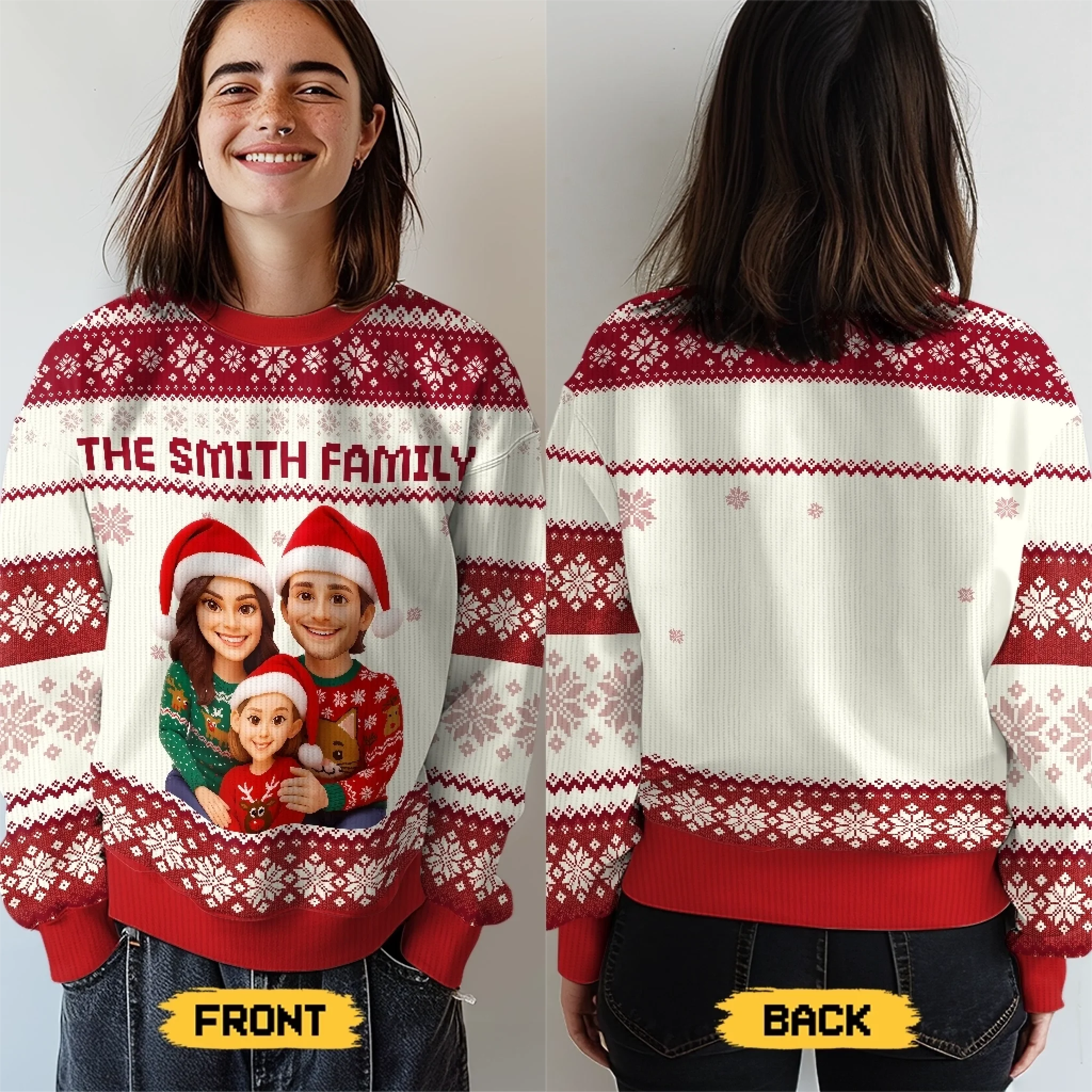 Custom Photo Unisex Ugly Sweatshirt - Personalized Christmas Birthday Gifts For Mom, Dad, Brother, Sister, Kids - All Wrapped Up In Love