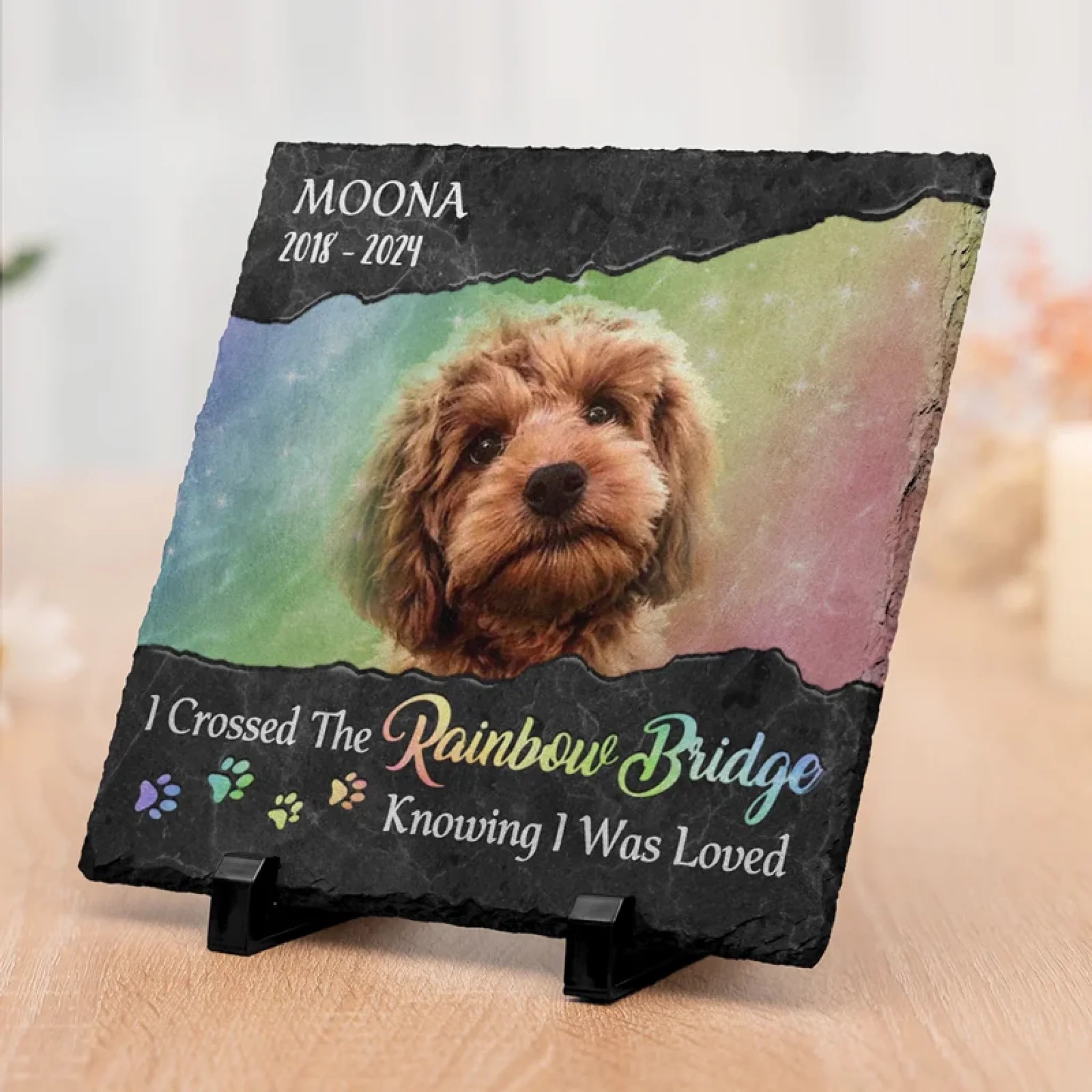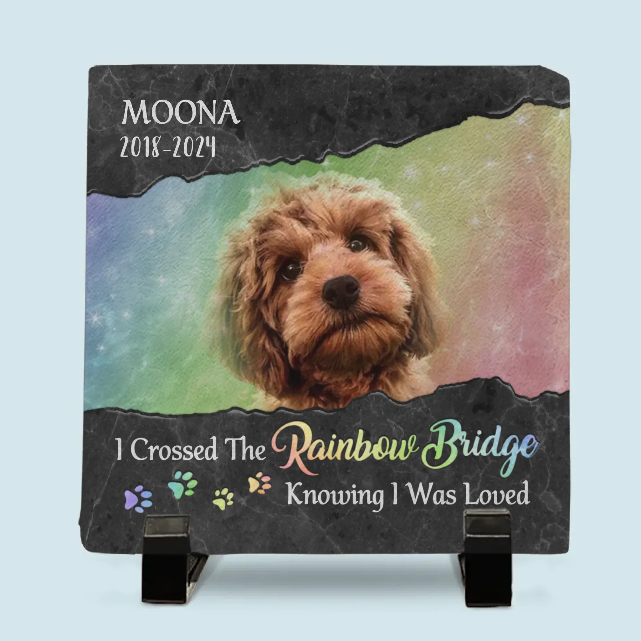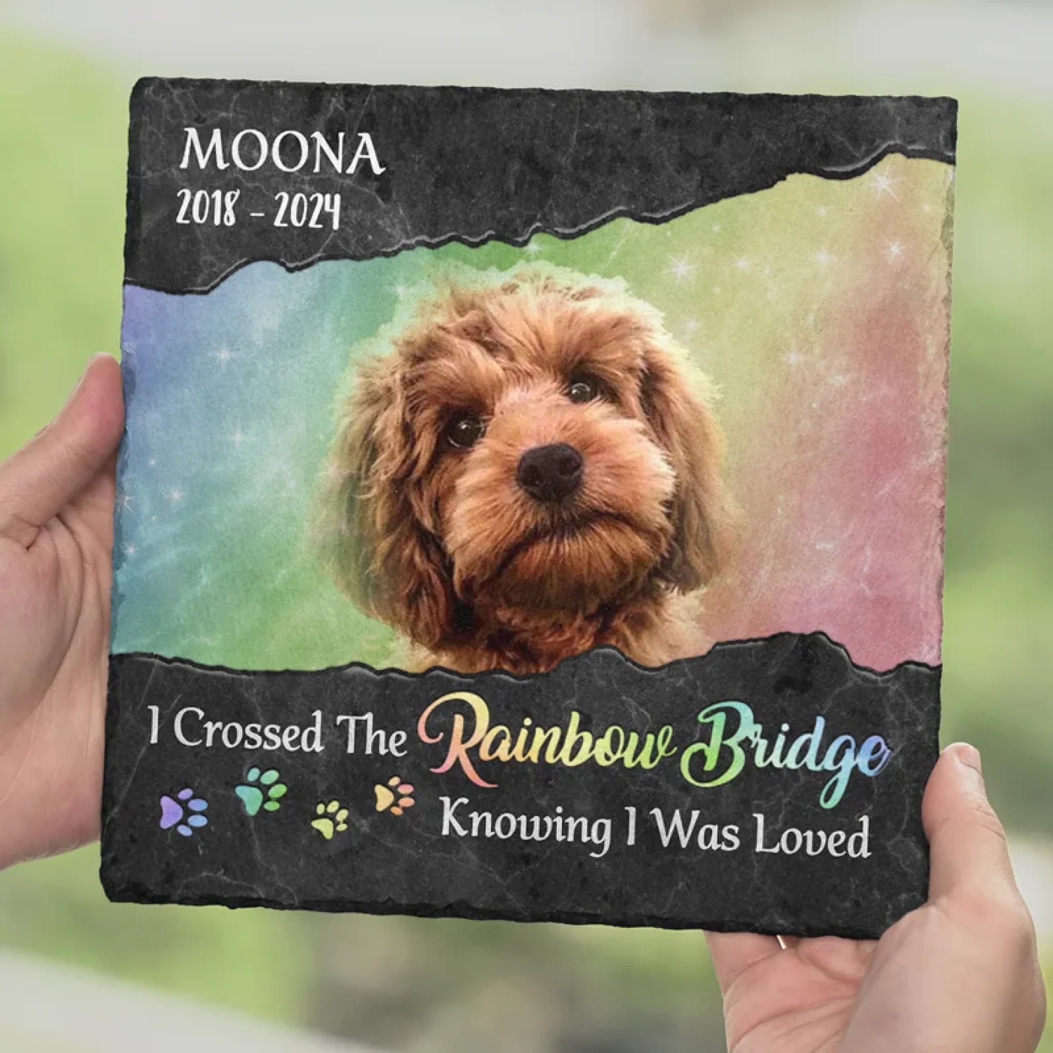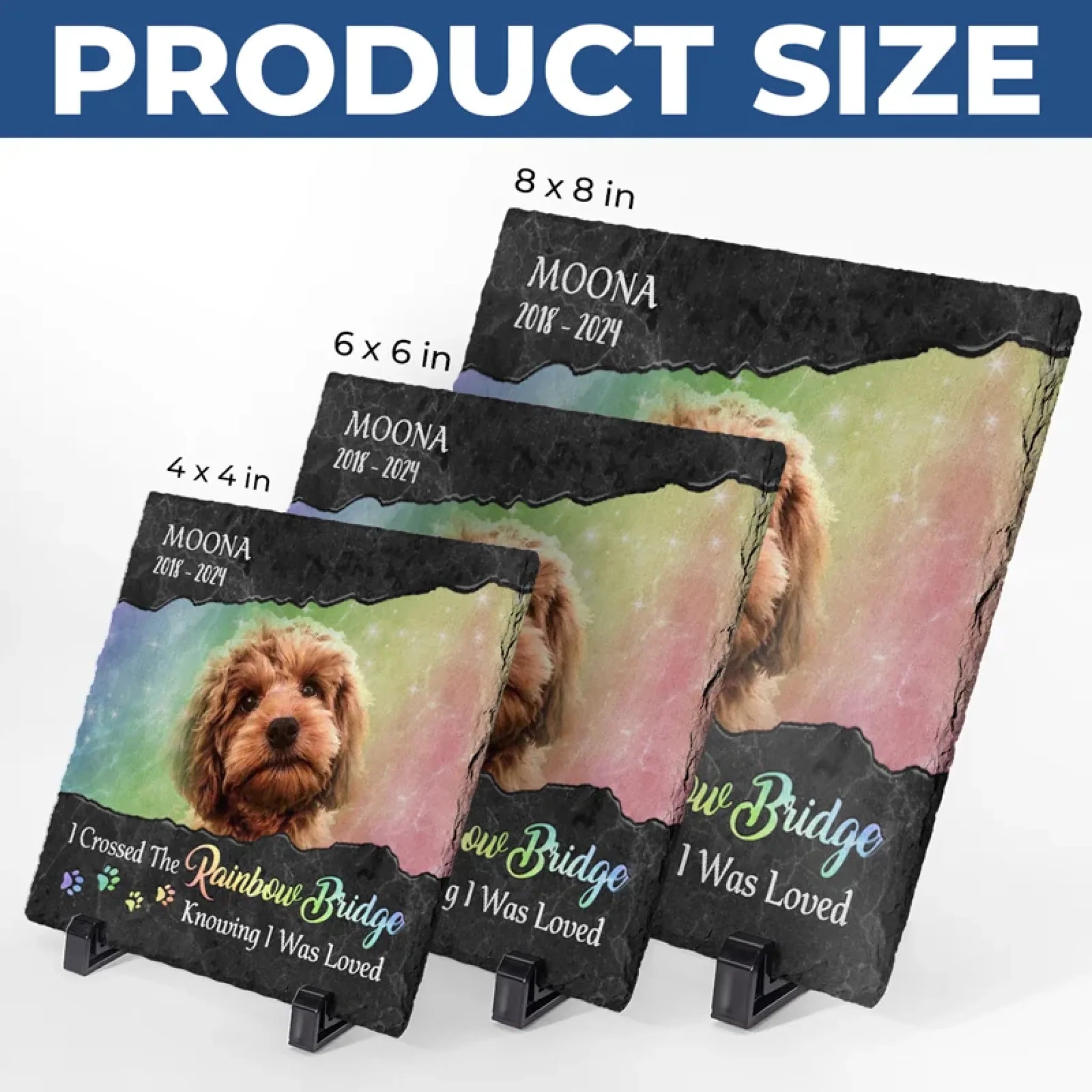 Custom Photo Waiting At The Rainbow Bridge - Memorial Personalized Custom Square Shaped Stone With Stand - Sympathy Gift For Pet Owners, Pet Lovers