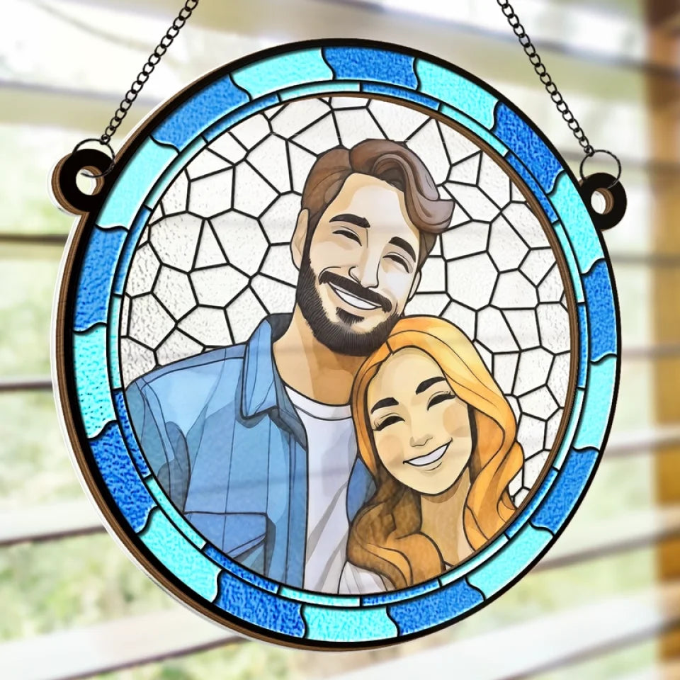 Custom Photo Where There Is Love There Is Life - Couple Personalized Window Hanging Suncatcher Ornament - Gift For Husband Wife, Anniversary
