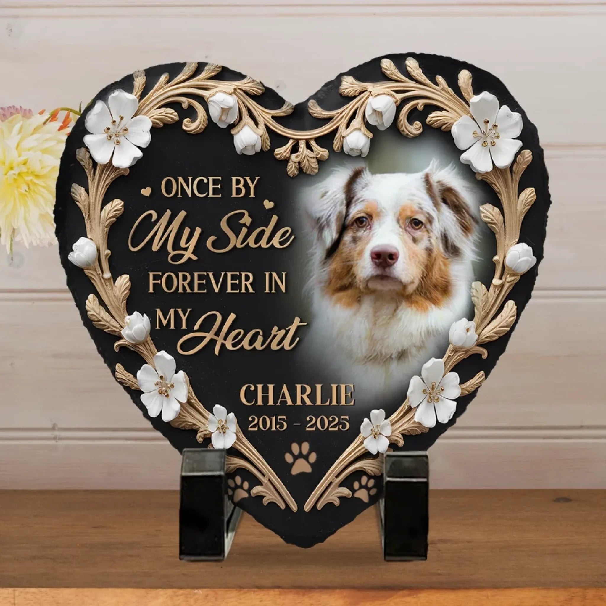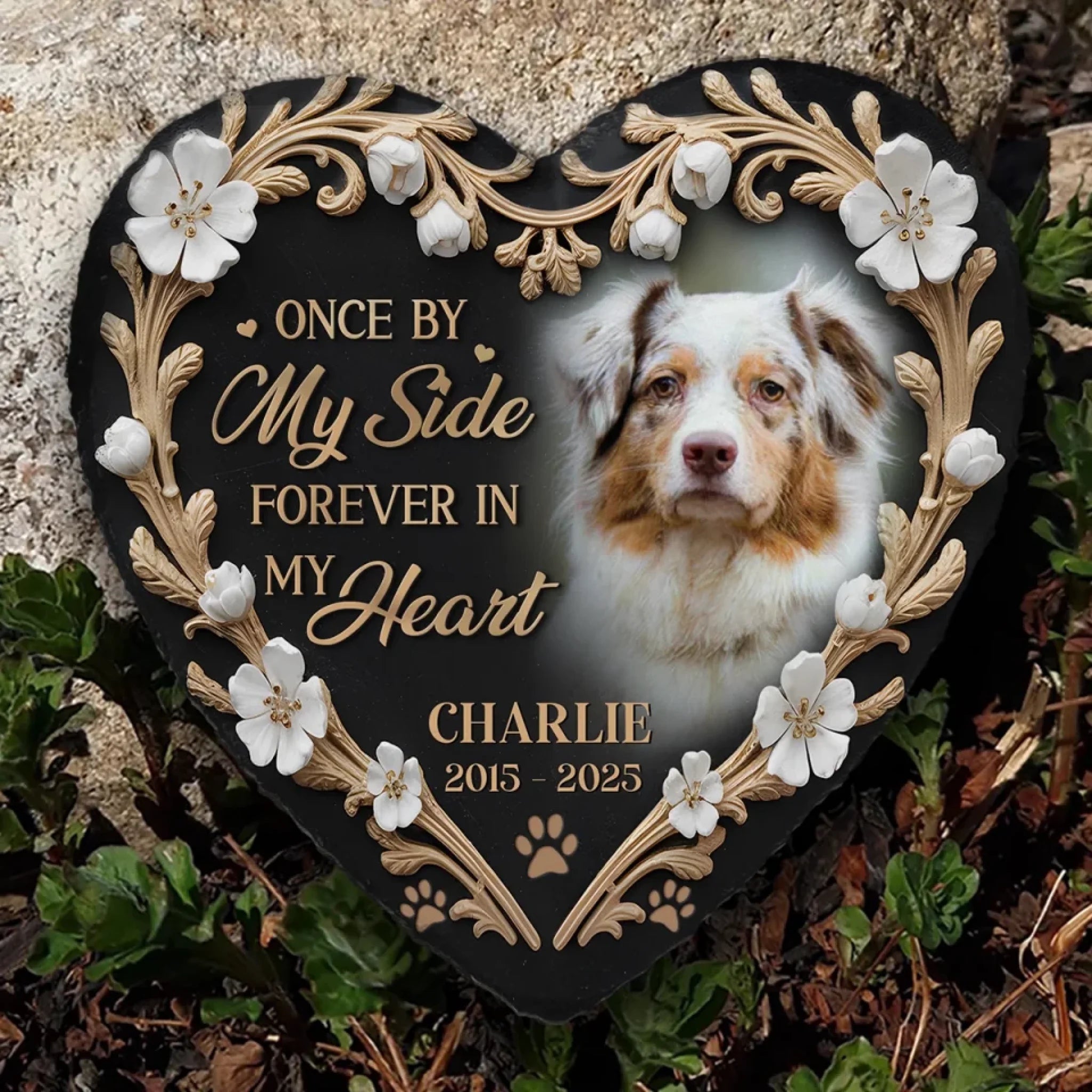 Custom Photo You Left Paw Prints On My Heart - Memorial Personalized Custom Heart Shaped Memorial Stone - Sympathy Gift For Pet Owners, Pet Lovers