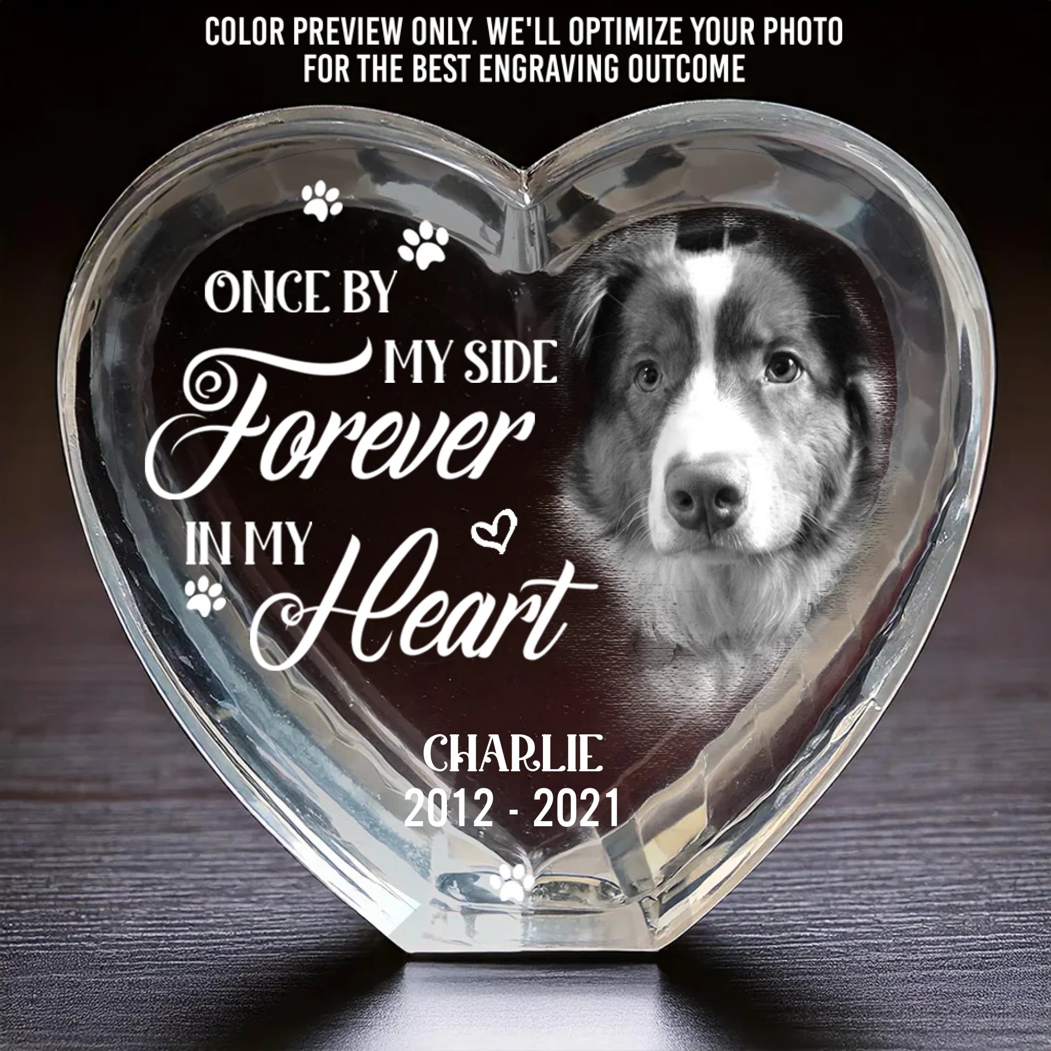 Honor the memory of a beloved pet with our Custom Photo Engraved 3D Crystal Heart – Your Love Lives On In My Heart – a heartfelt pet memorial gift for pet lovers, dog moms, dog dads, cat moms, or anyone grieving the loss of a dog or cat. Thoughtfully crafted, this elegant crystal is perfect for bereavement, memorial ceremonies, or as a sympathy gift. It’s also suitable for holidays like Christmas, Valentine’s Day, Mother’s Day, Father’s Day, Thanksgiving, birthdays, or anniversaries when you want to celebrate a love that never fades.