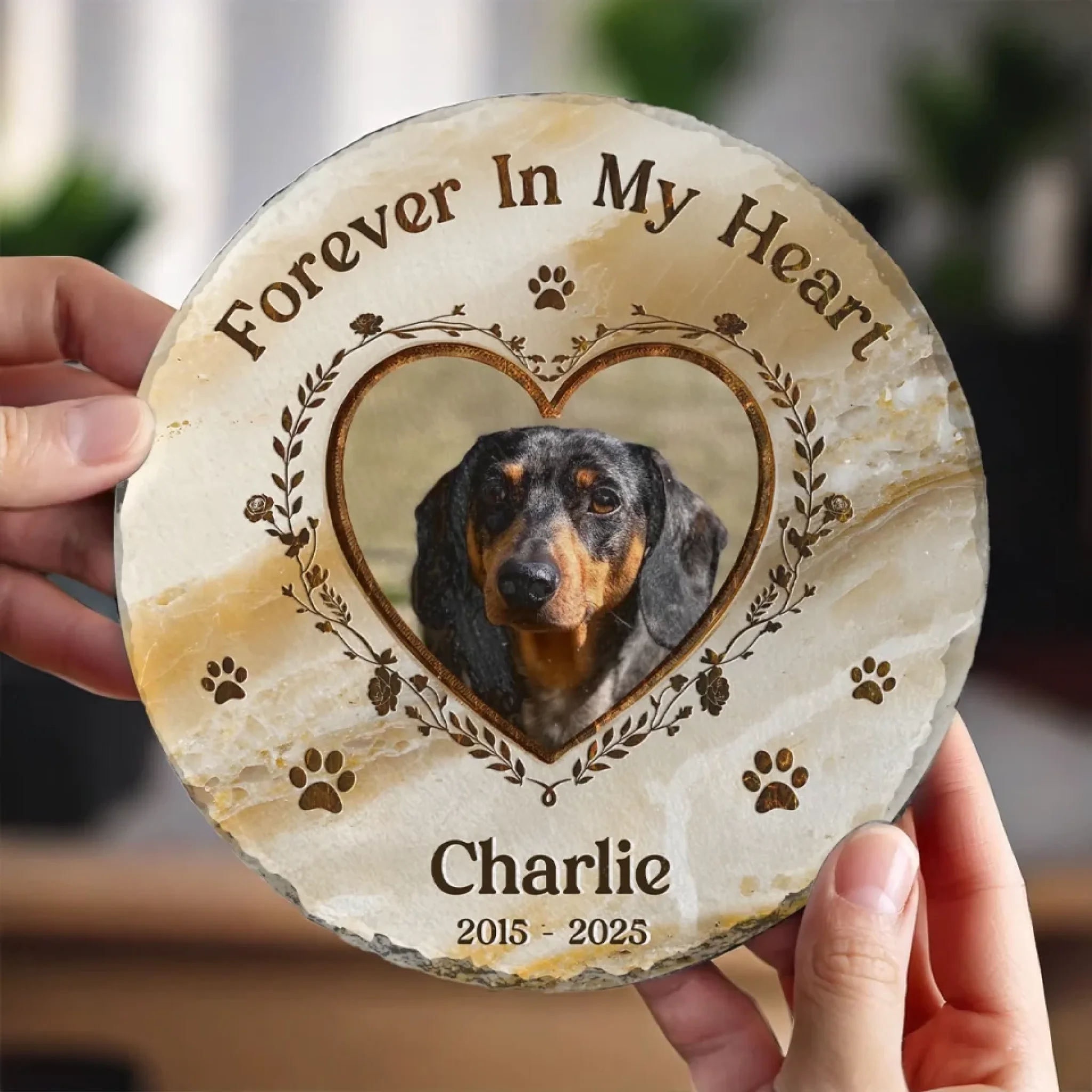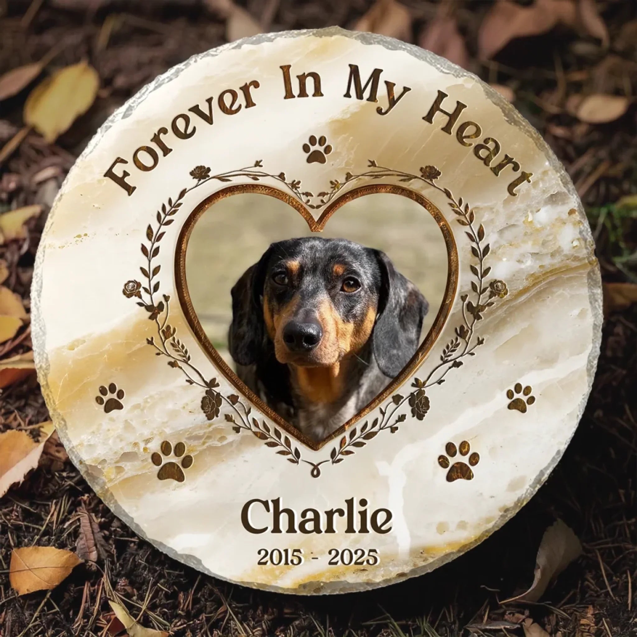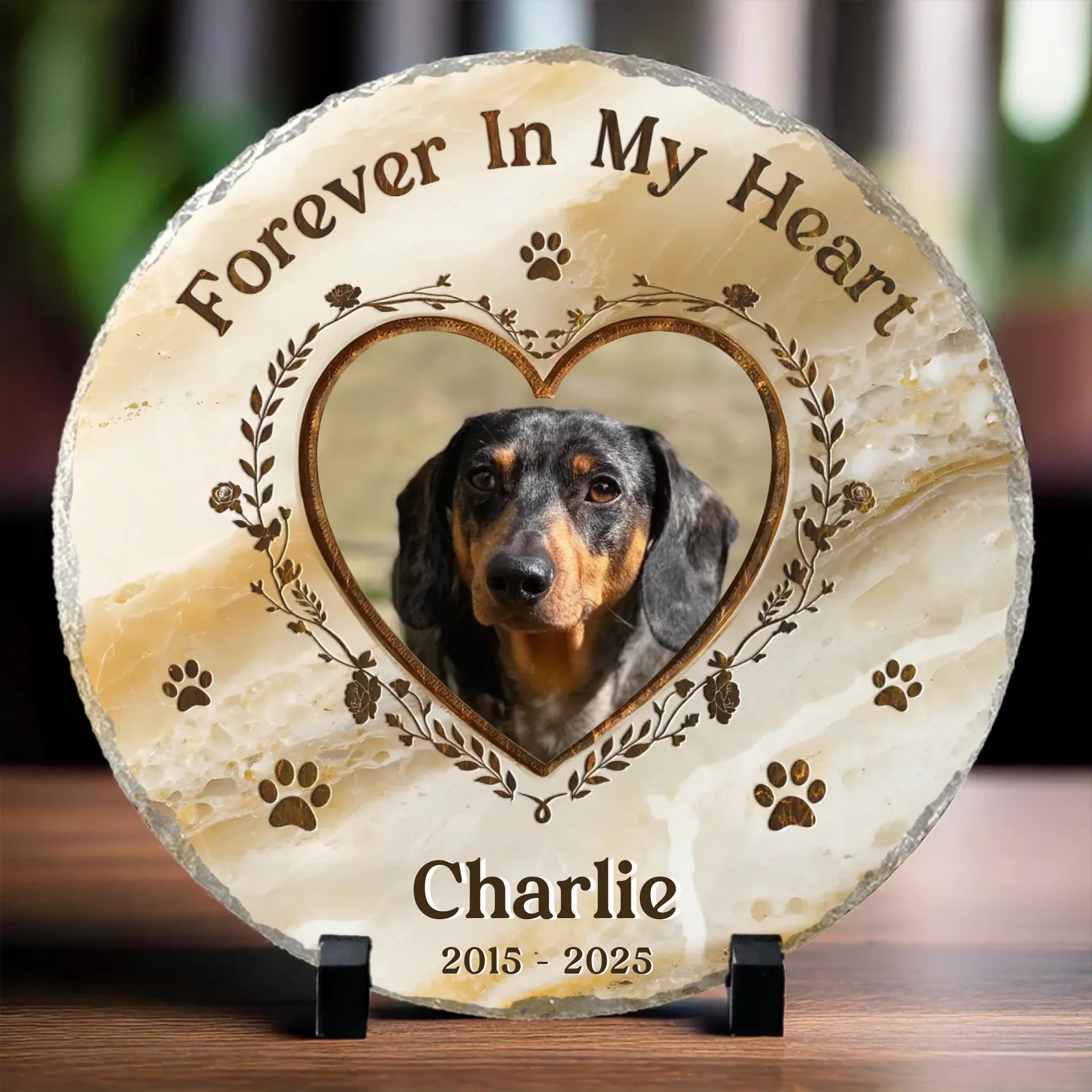 Custom Photo Your Paw Prints Are Forever On My Soul - Memorial Personalized Custom Round Shaped Stone With Stand - Sympathy Gift For Pet Owners, Pet Lovers