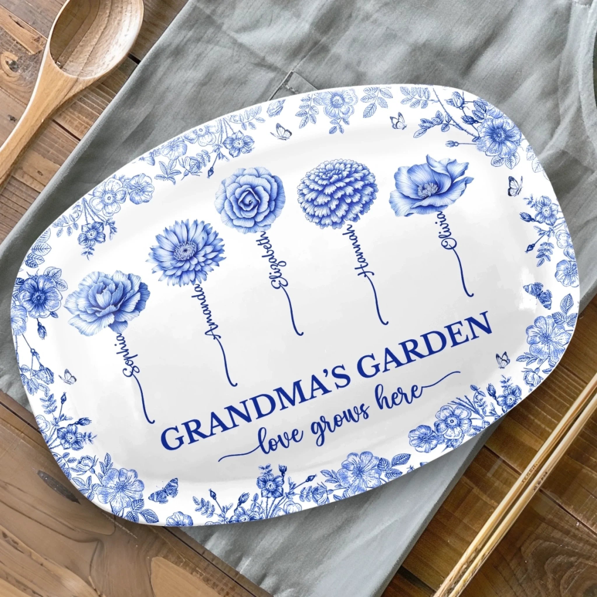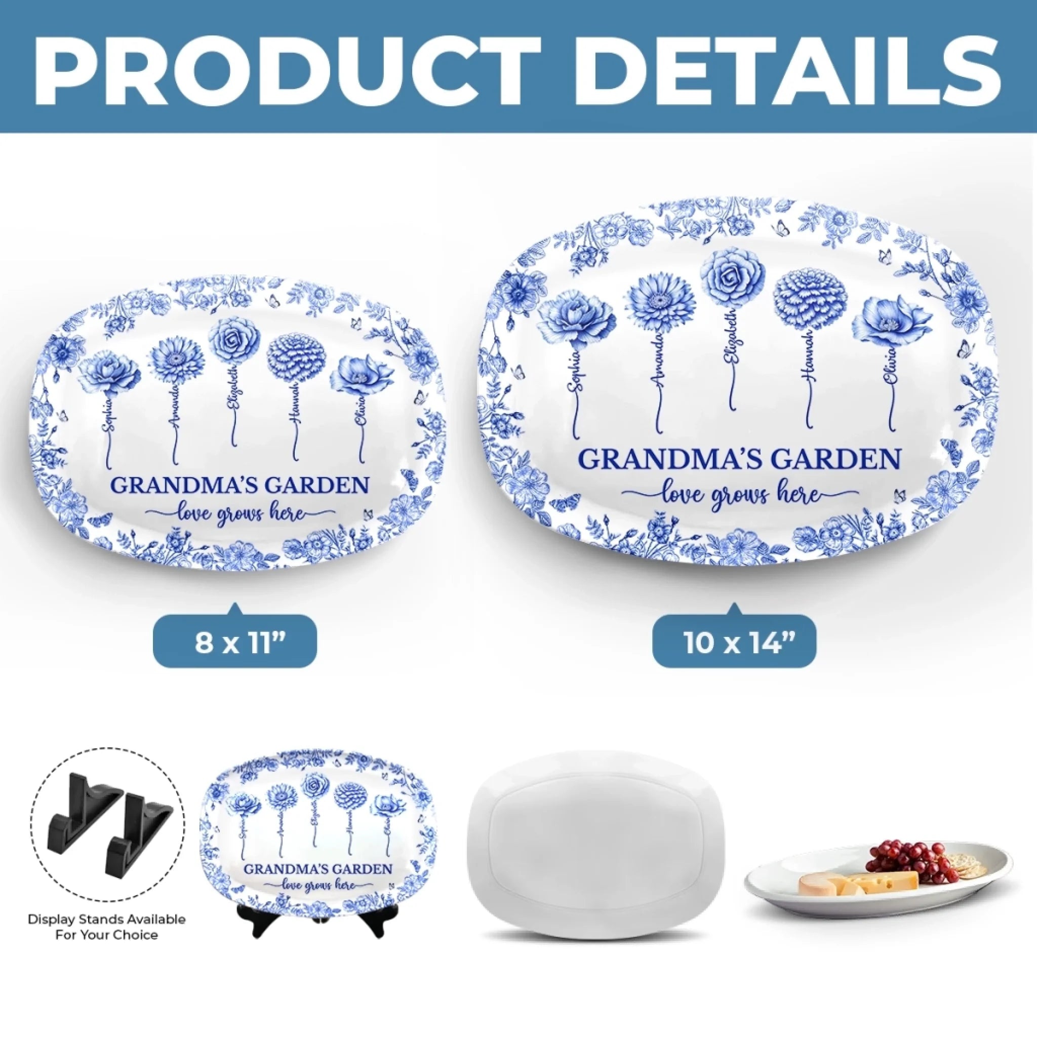 Custom Platter - Personalized Birthday Gifts For Mom, Grandma - Floral Roots Of Everlasting Love