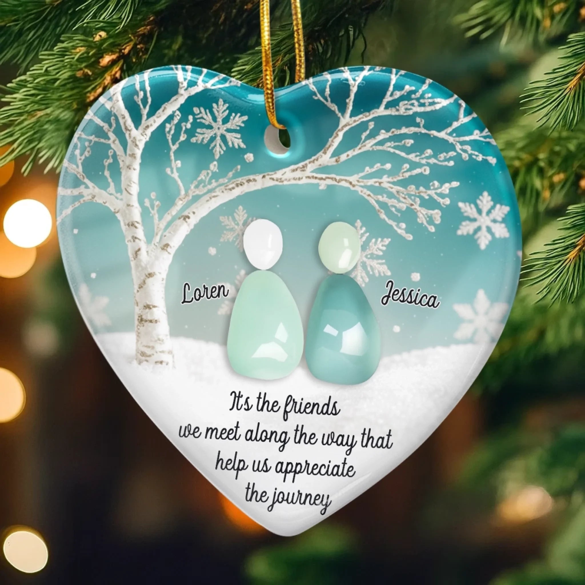 Custom Sea Glass Ceramic Ornament - Personalized Best Friend Christmas Birthday Gifts For Women, Besties, Sisters, BFF, Beach Lovers - Tides Brought Us Together