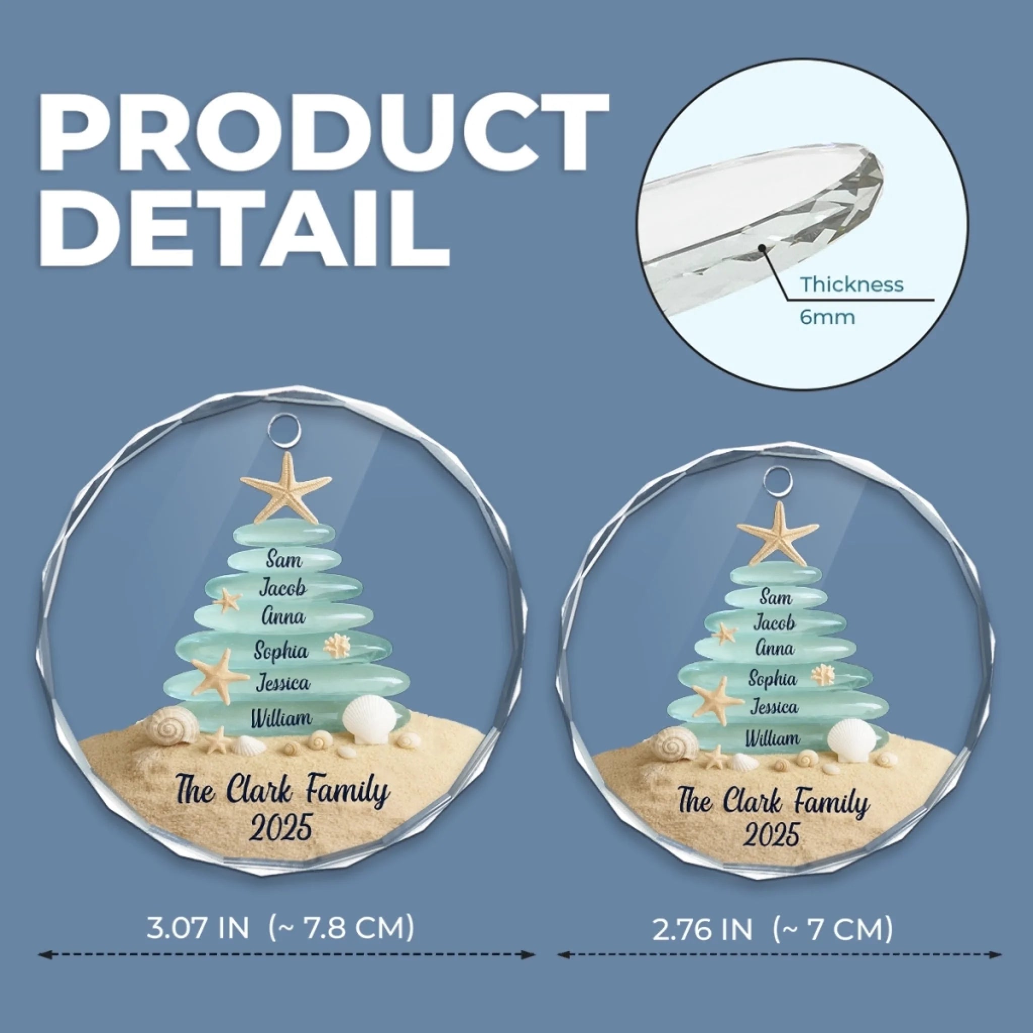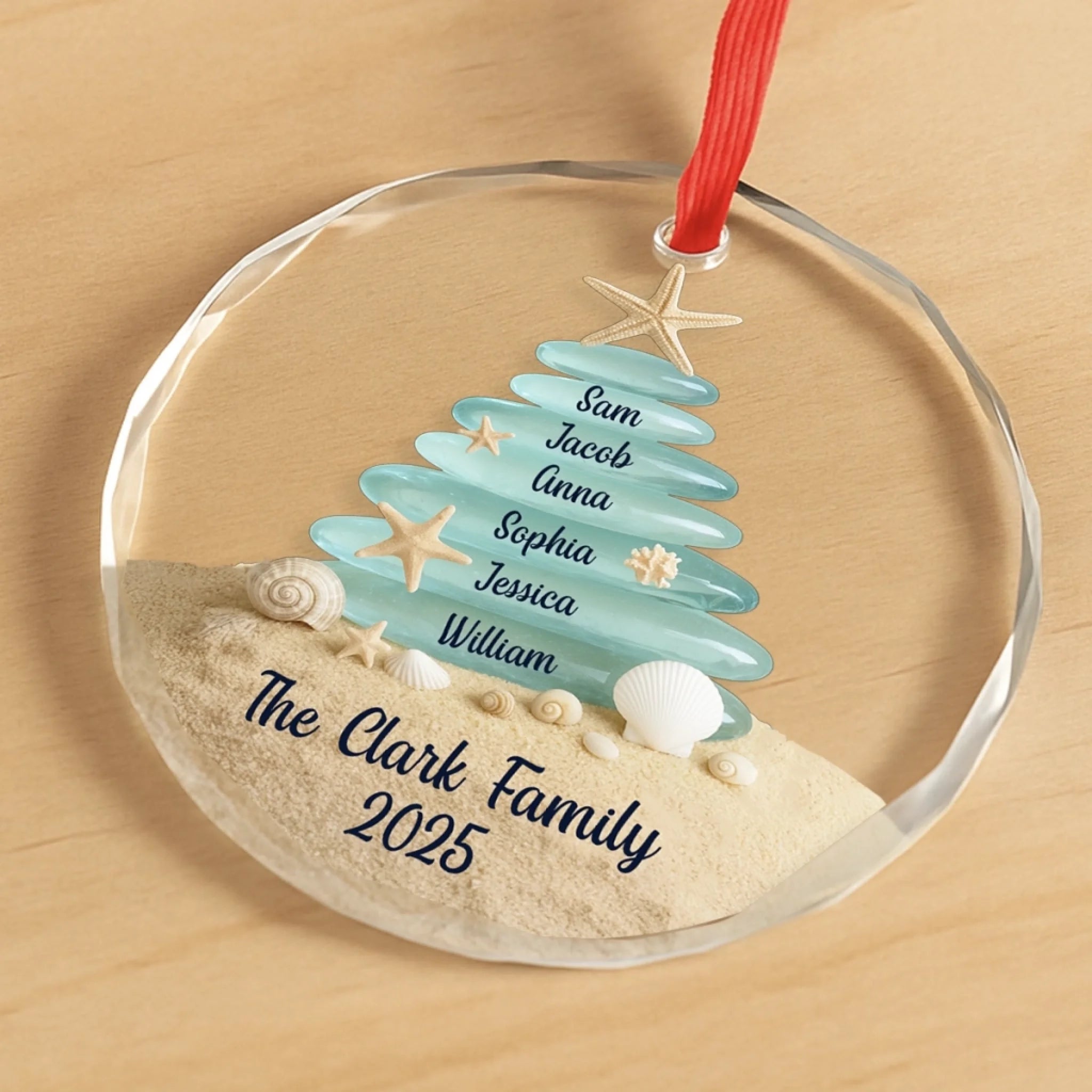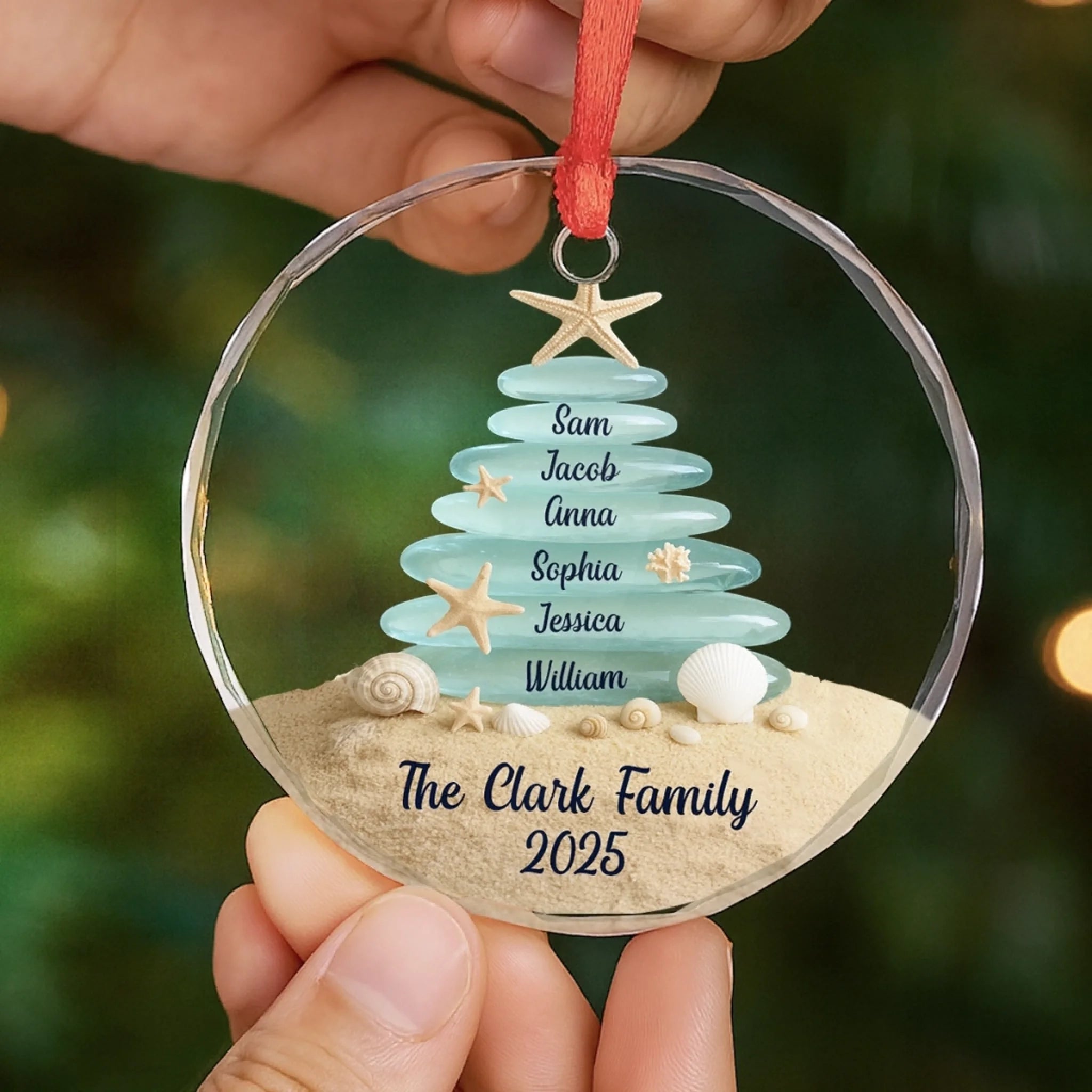 Custom Sea Glass Circle Glass Ornament - Personalized Christmas Birthday Gifts For Mom, Dad, Brother, Sister, Kids, Beach Lovers - Tides Keep Us Close