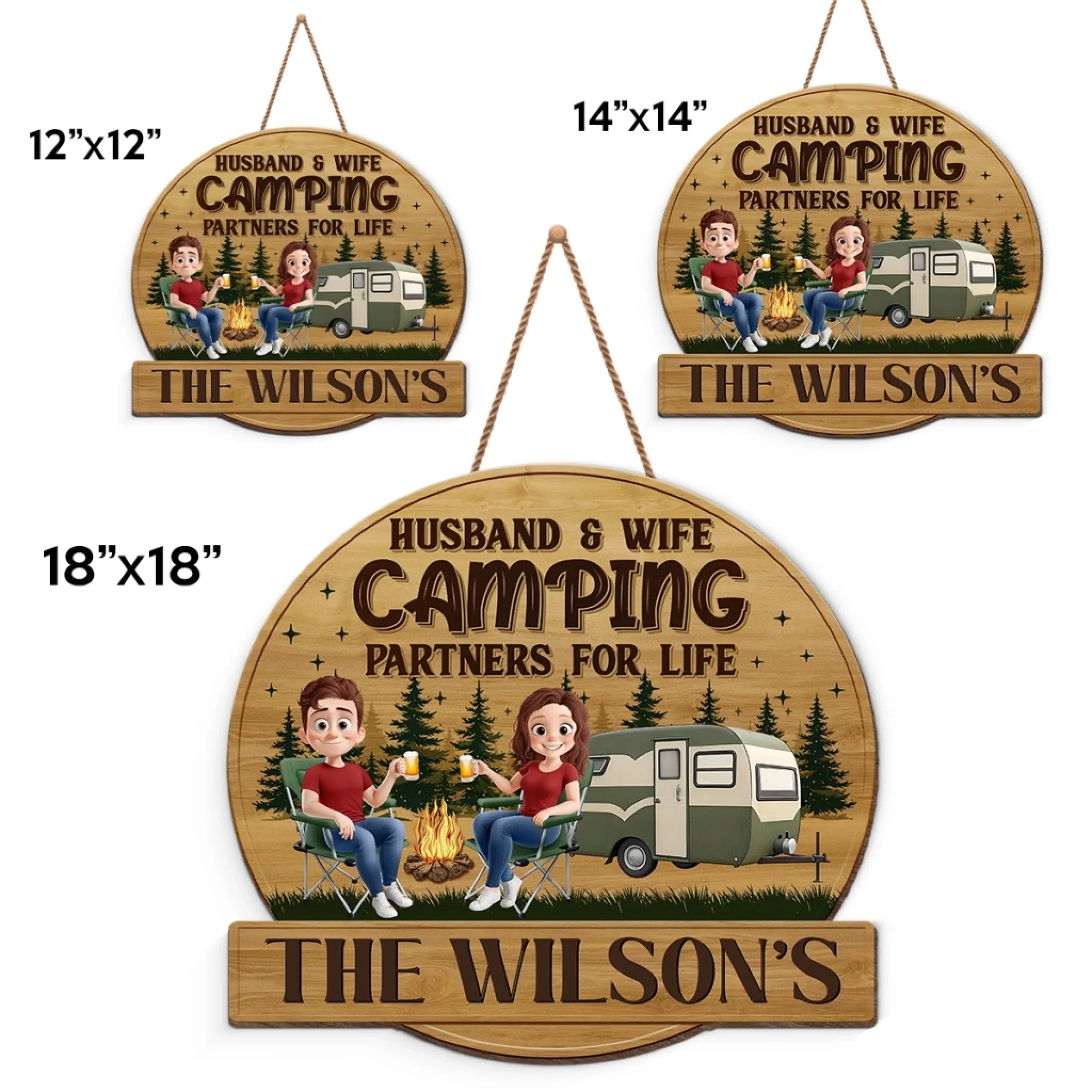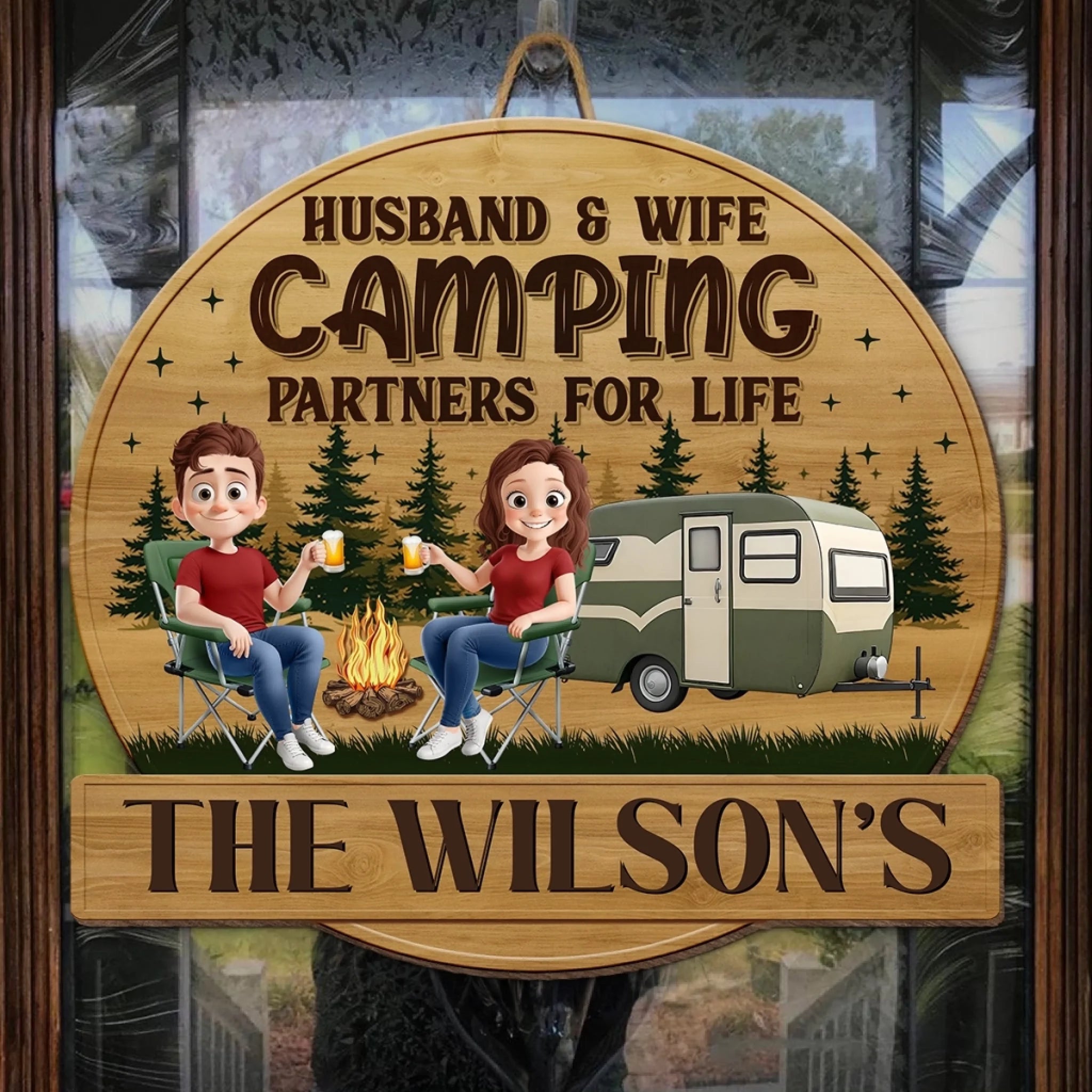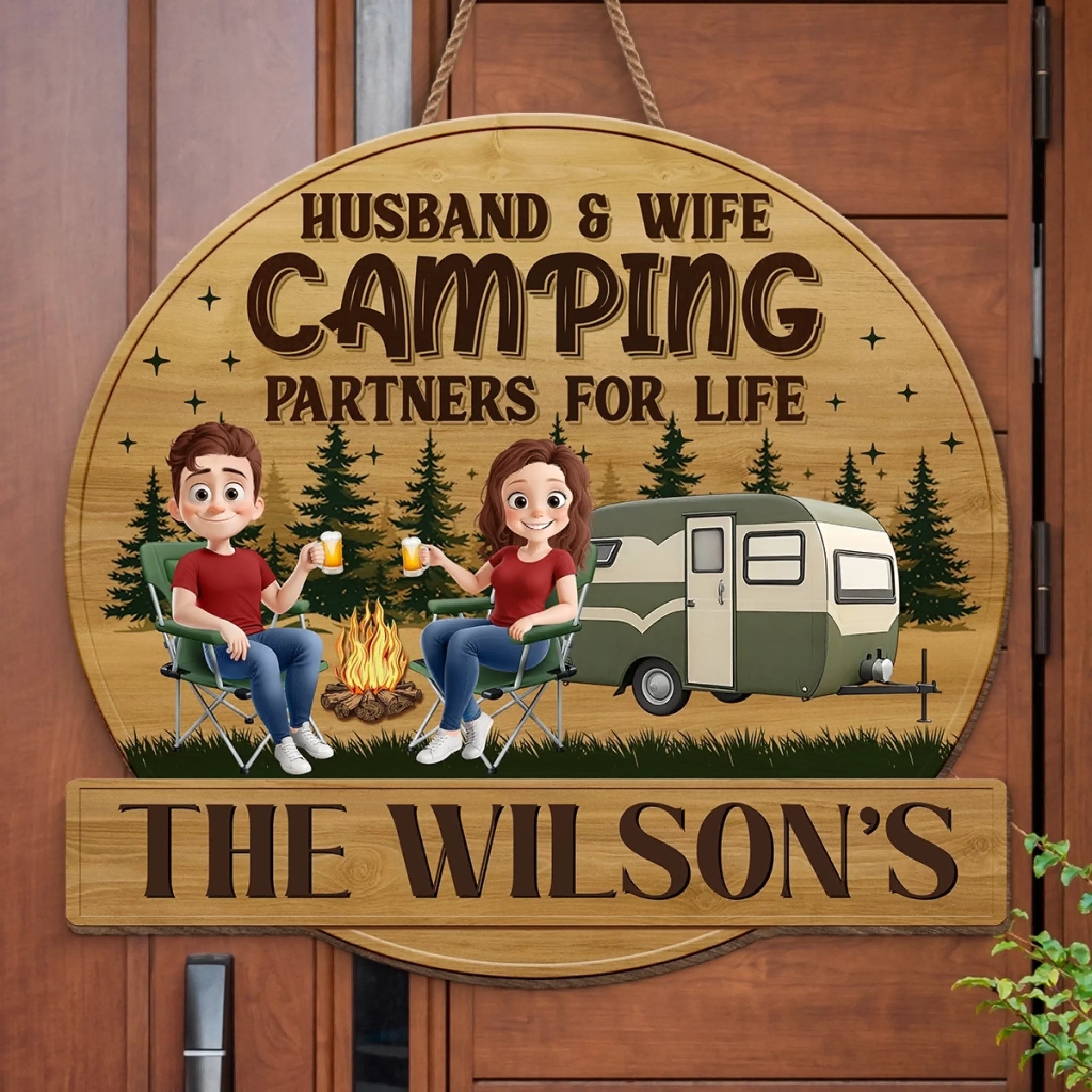 Custom Shaped Home Decor Wood Sign - Personalized Camping Gifts For Husband And Wife, Him And Her - Camping Partners For Life