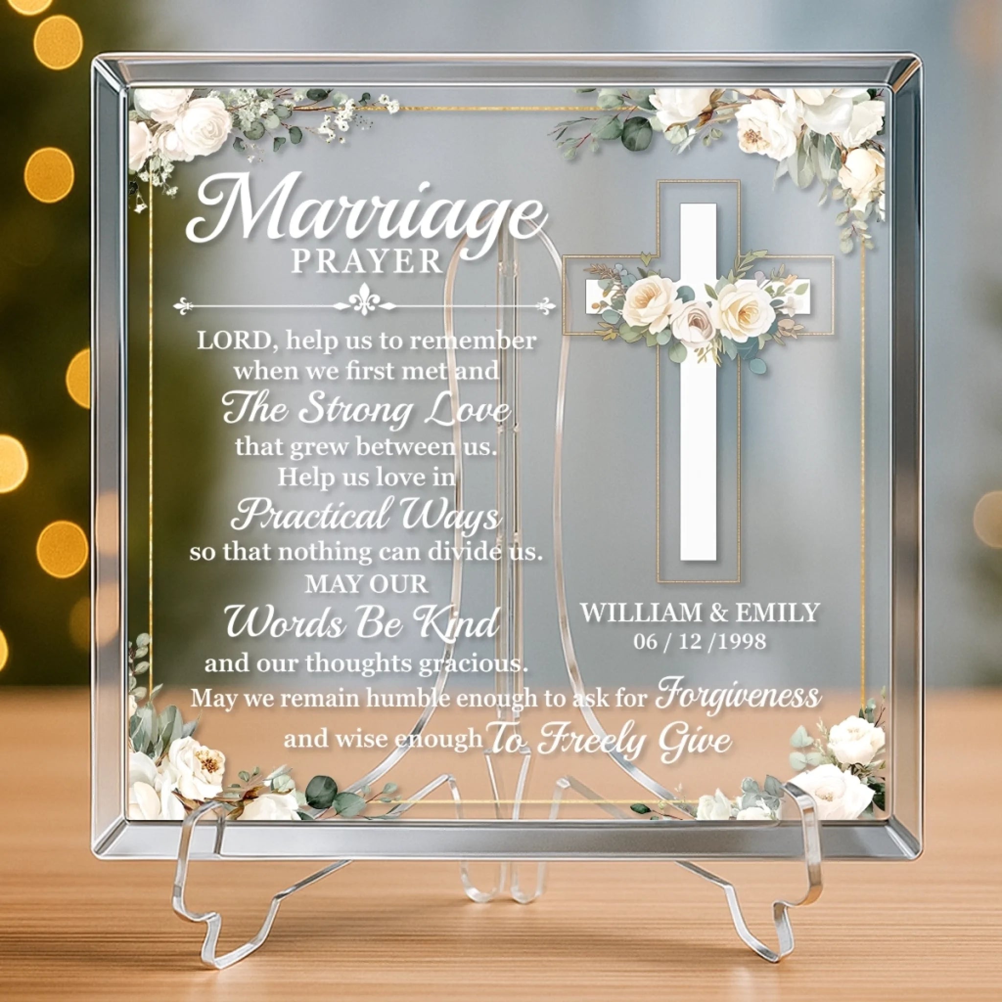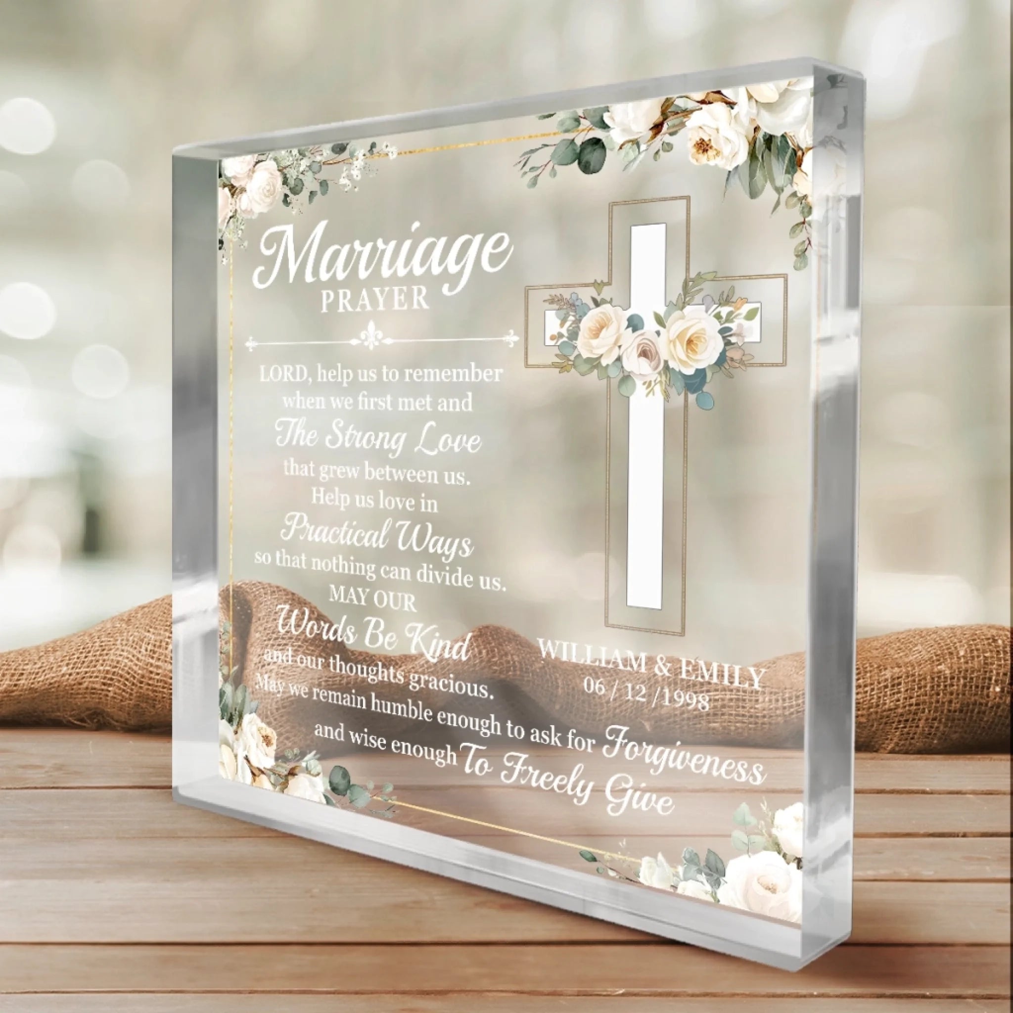 Custom Square Shaped Acrylic Plaque - Personalized Anniversary Wedding Gifts For Husband And Wife, Him And Her, All Believers, Jesus Lovers - Rooted In Love