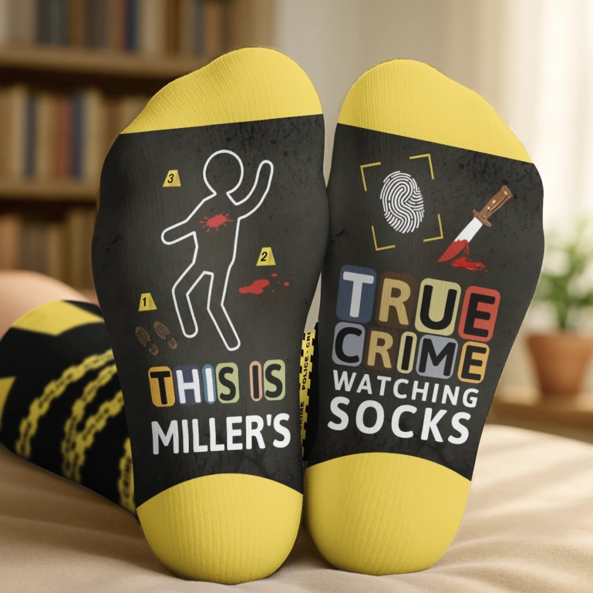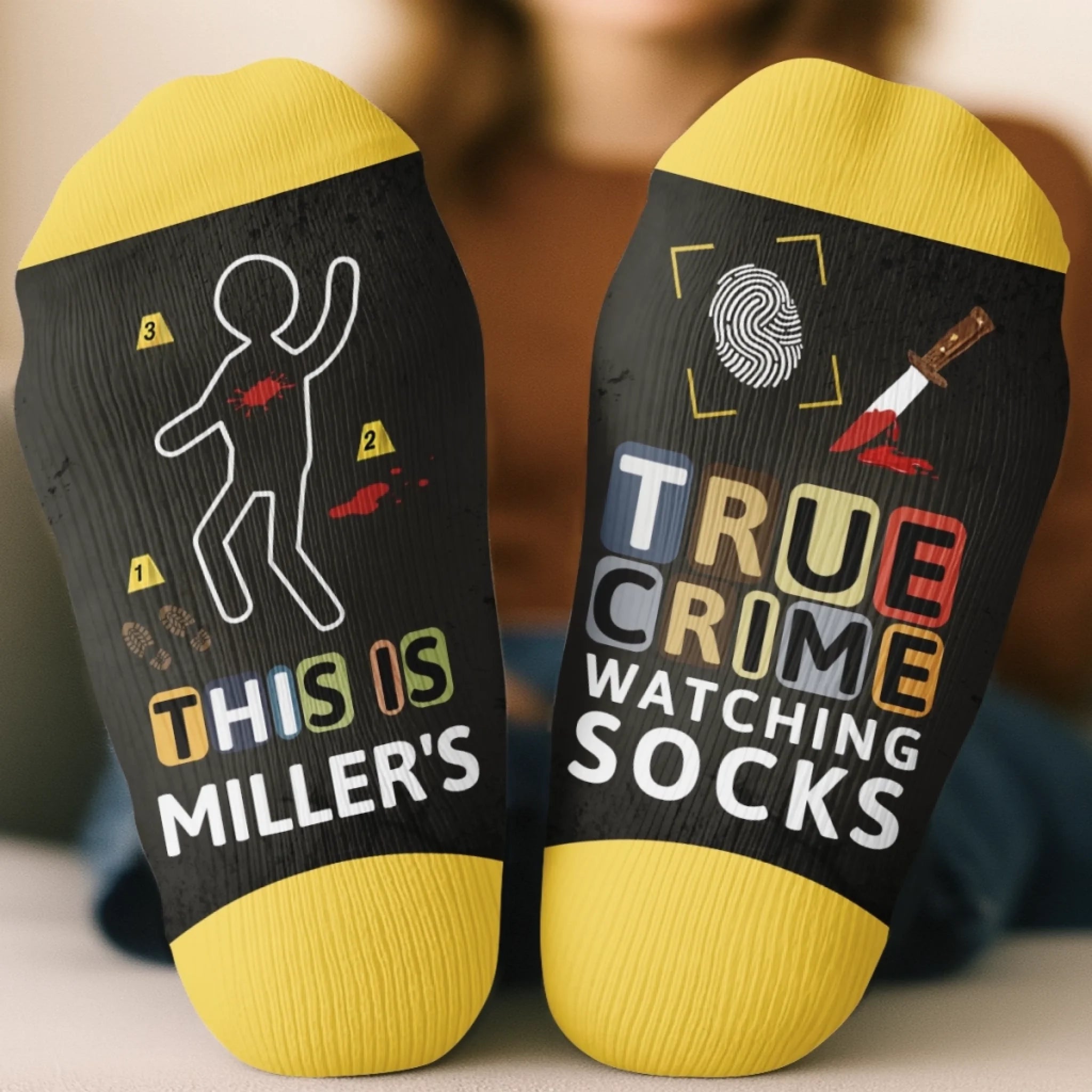 Custom True Crime Crew Socks - Personalized Birthday Gifts For Best Friends, Family, Coworker, Work Bestie - Killer Style Everyday